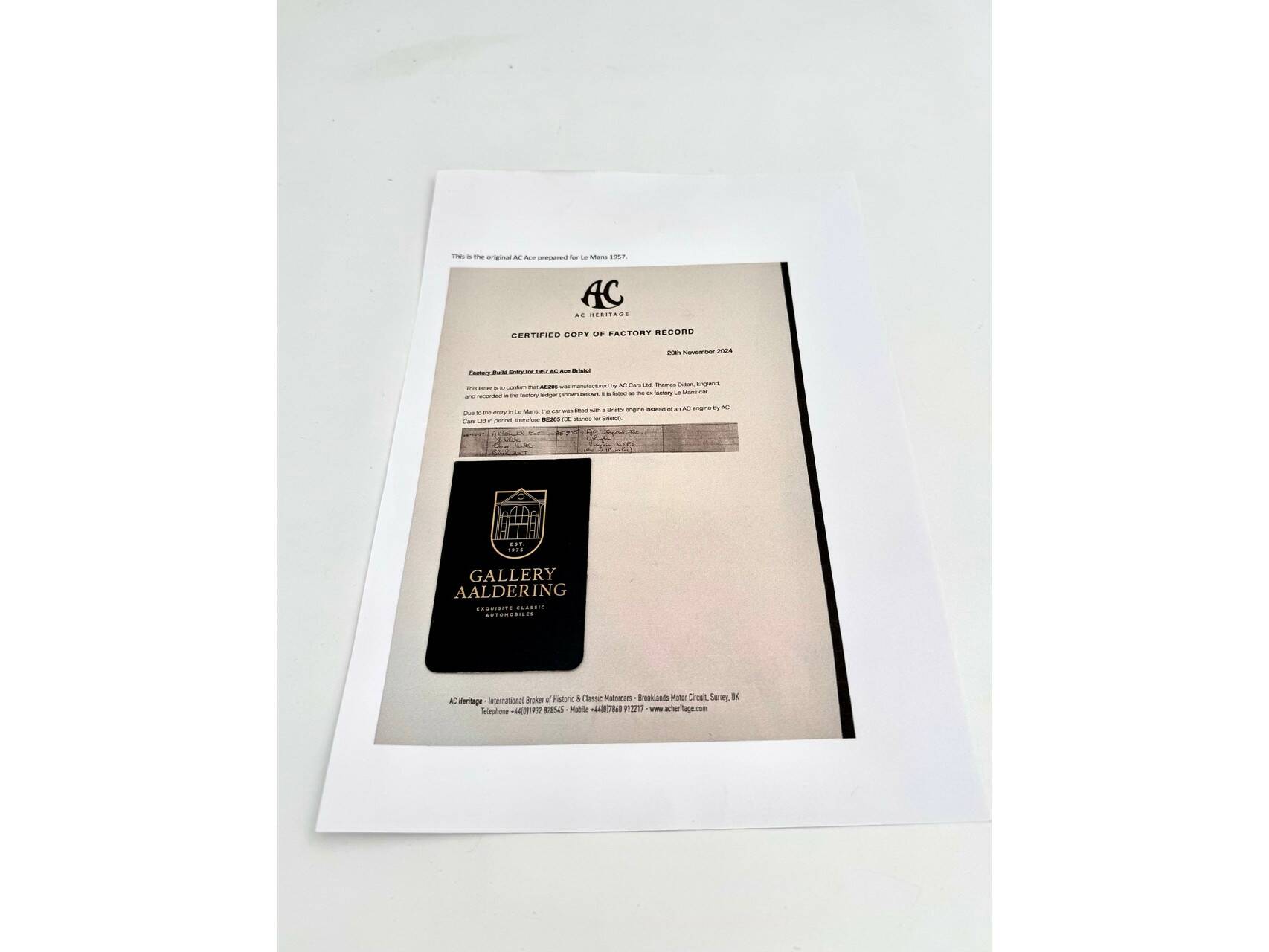 AC ACE Bristol Le Mans Roadster "Le Mans '57-entry" Magnificent '57 Le Mans history - 2nd in class & 10th overall, Certified by AC Heritage as the ex-Le Mans car, Remarkably comprehensive historical file with lots of photos from back then, Extensively restored to original Le Mans specifications of the time, Most significant AC with the boys' dream history, "The ex-Ken Rudd" AC Works racer