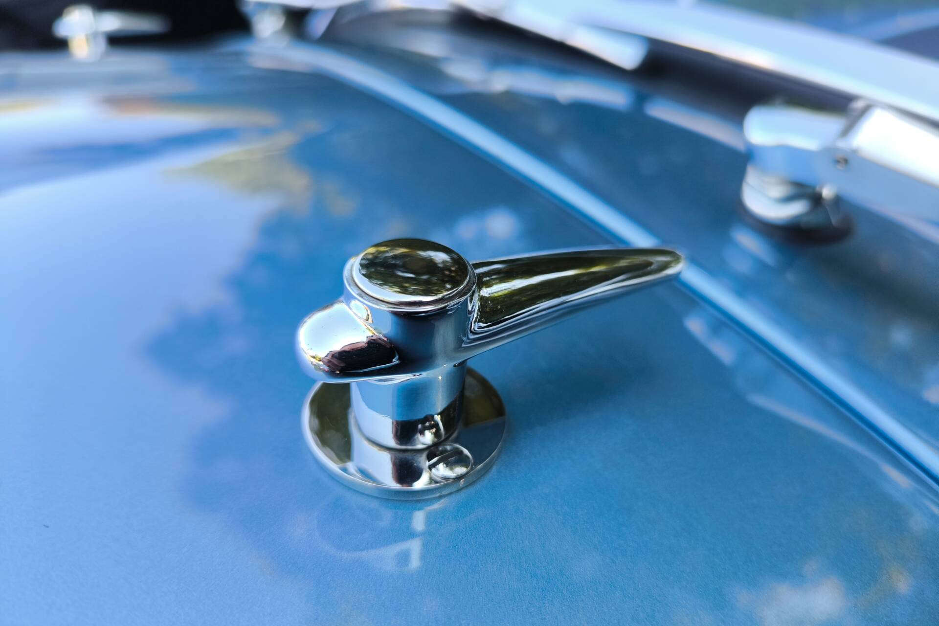 Innenraum: Ledersitze, Türtaschen, Originalgetreue Schalter & Anzeigen (Stewart Warner), Kofferraumteppich und Persenning