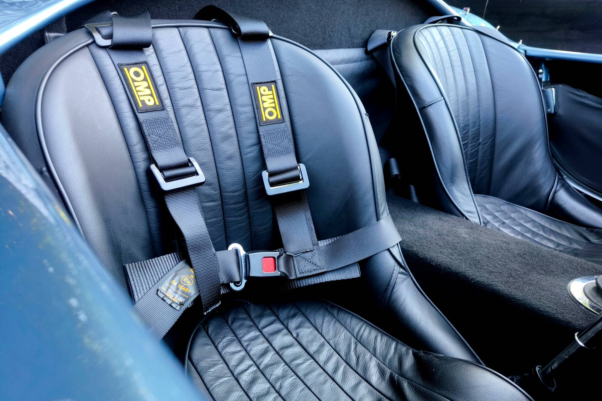Karosserie: Fiberglas, Viking Blue mit FIA-Streifen