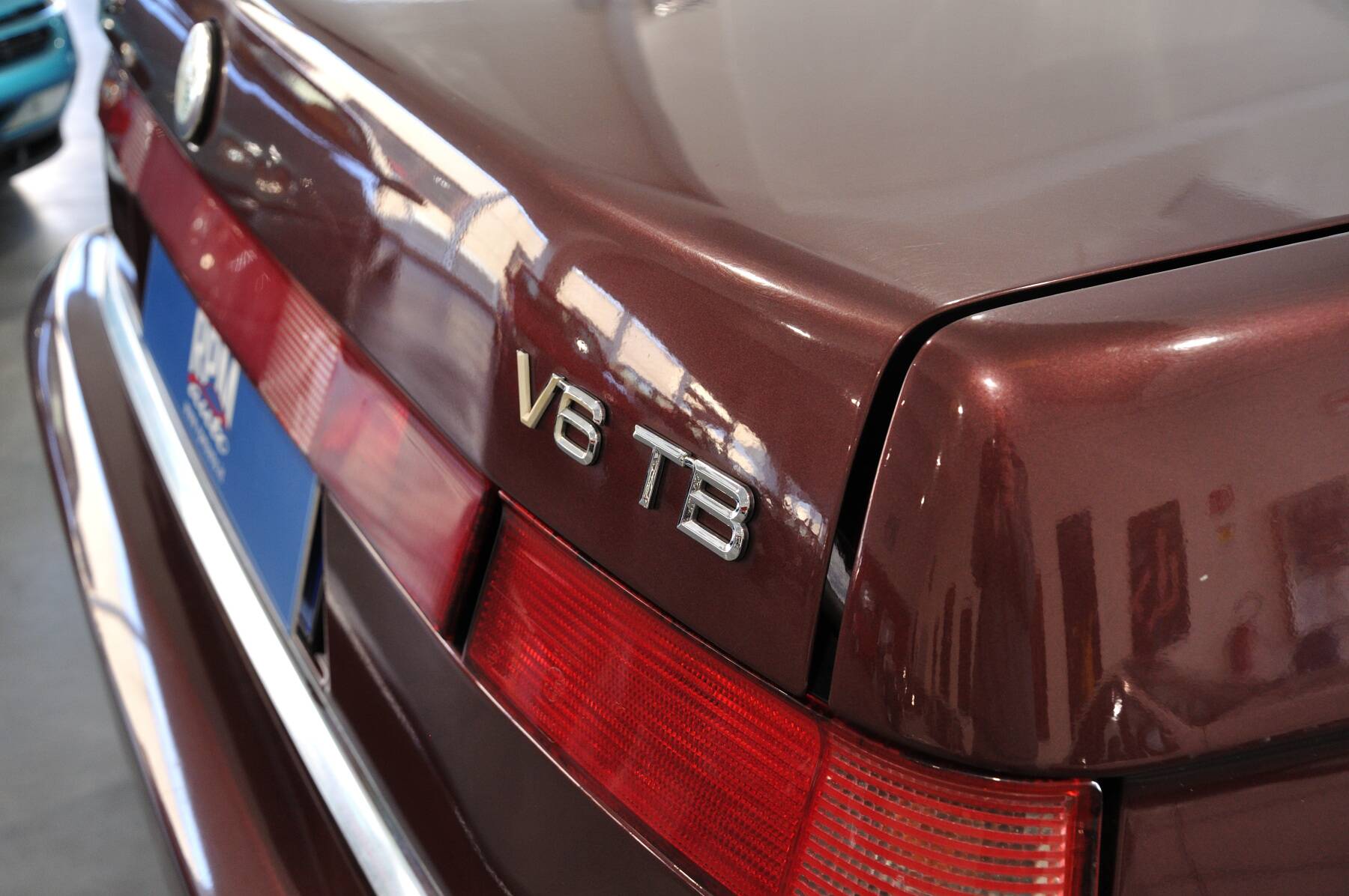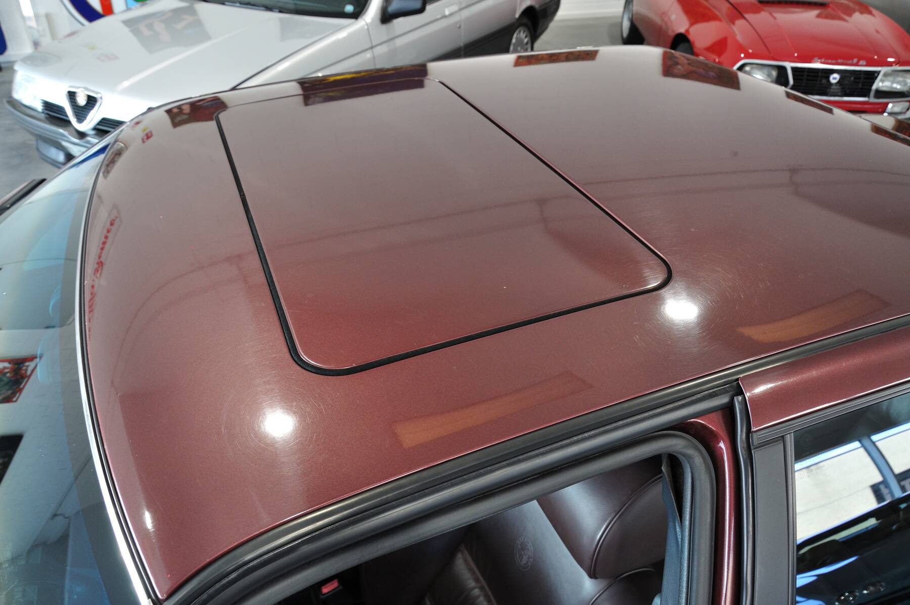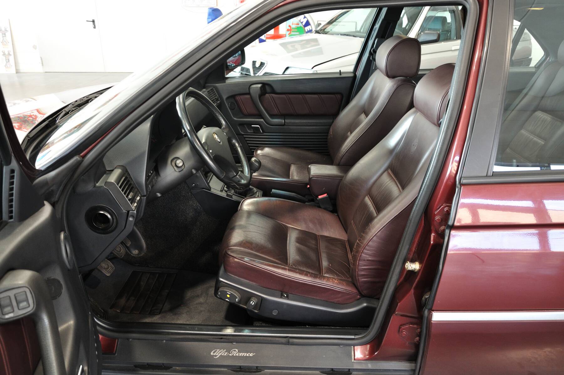 Alfa 164 2.0i V6 Turbo Super, uno dei primi esemplari immatricolati nel 1993, spettacolare e rarissima combinazione colori con esterni in Rosso Bordeaux Metallizzato e interni in pelle totale Rosso Oriente, sedili elettrici e riscaldati, tetto apribile, clima automatico, cerchi in lega da 16 pollici, ABS.