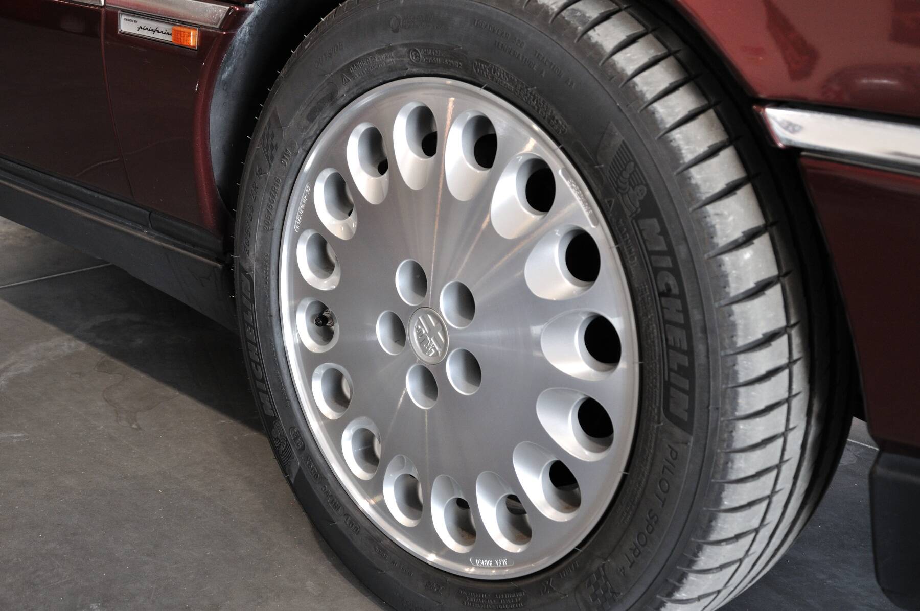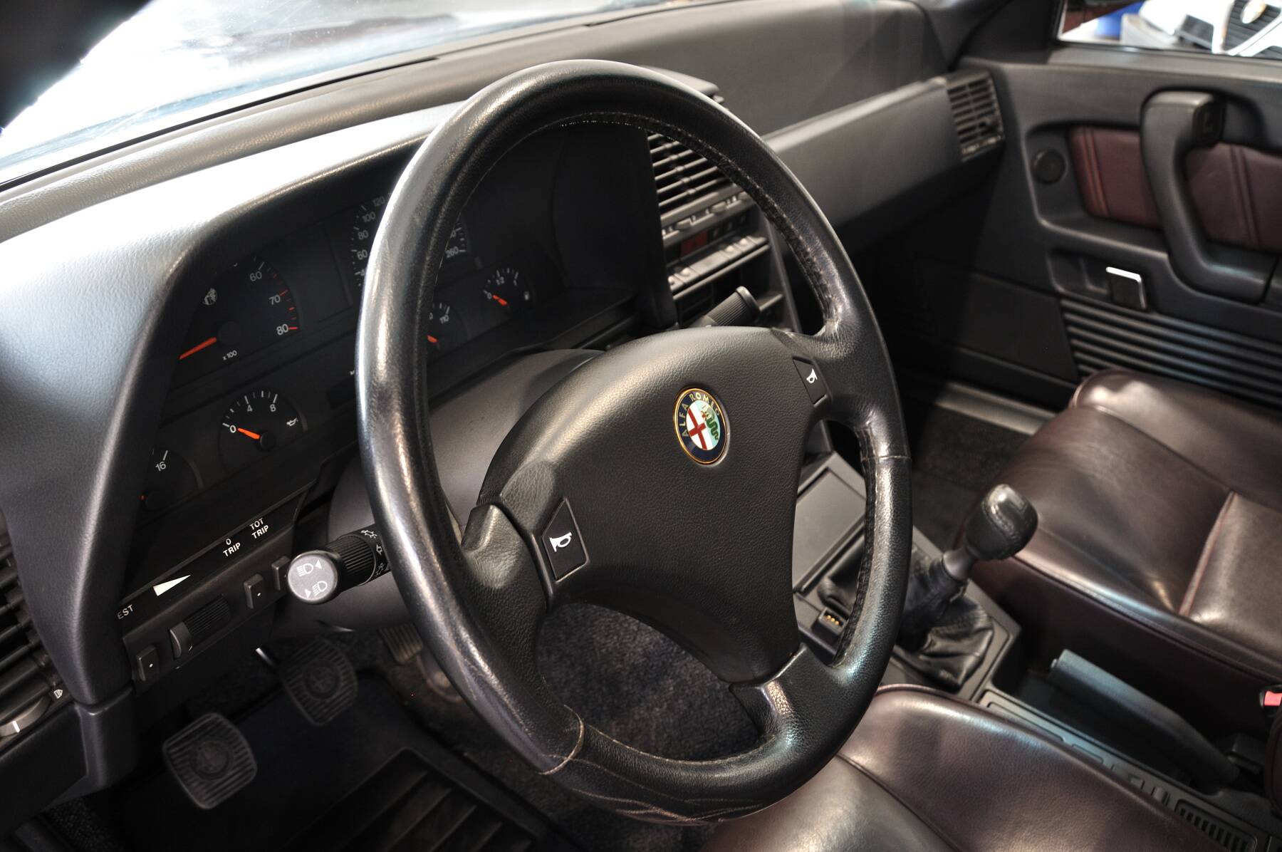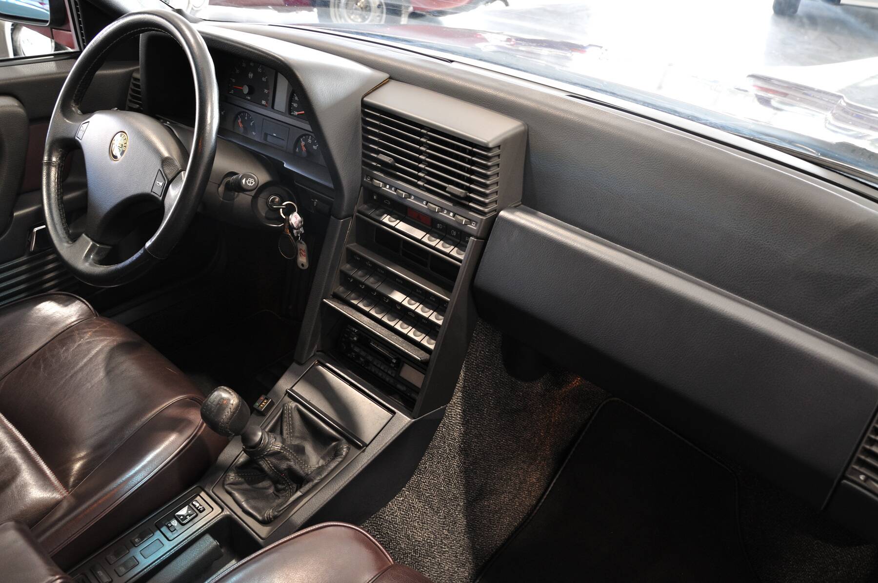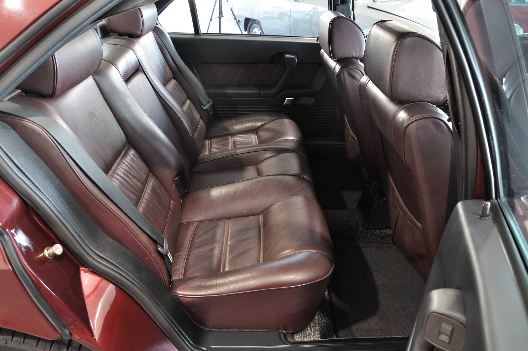 Alfa 164 2.0i V6 Turbo Super, uno dei primi esemplari immatricolati nel 1993, spettacolare e rarissima combinazione colori con esterni in Rosso Bordeaux Metallizzato e interni in pelle totale Rosso Oriente, sedili elettrici e riscaldati, tetto apribile, clima automatico, cerchi in lega da 16 pollici, ABS.