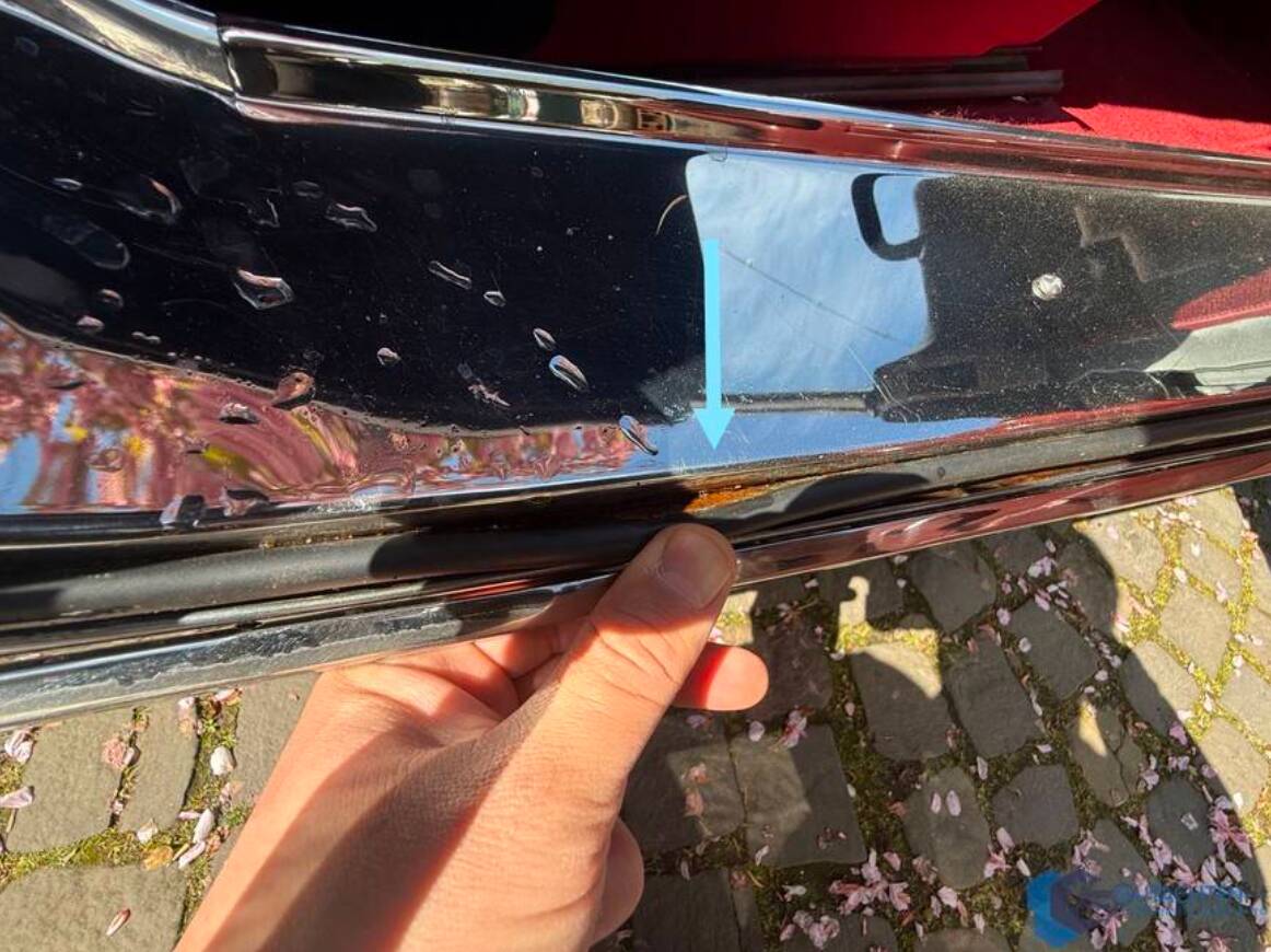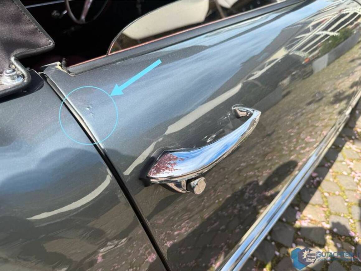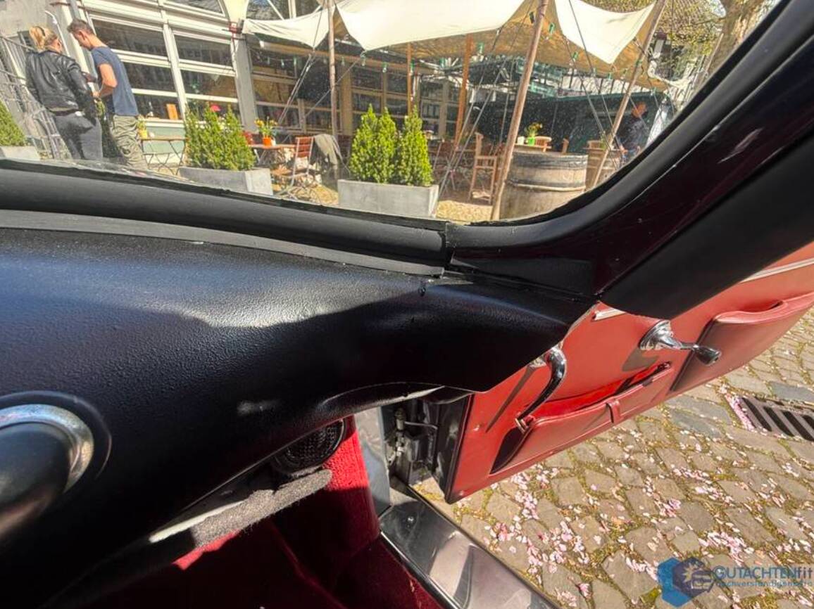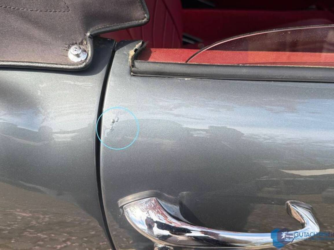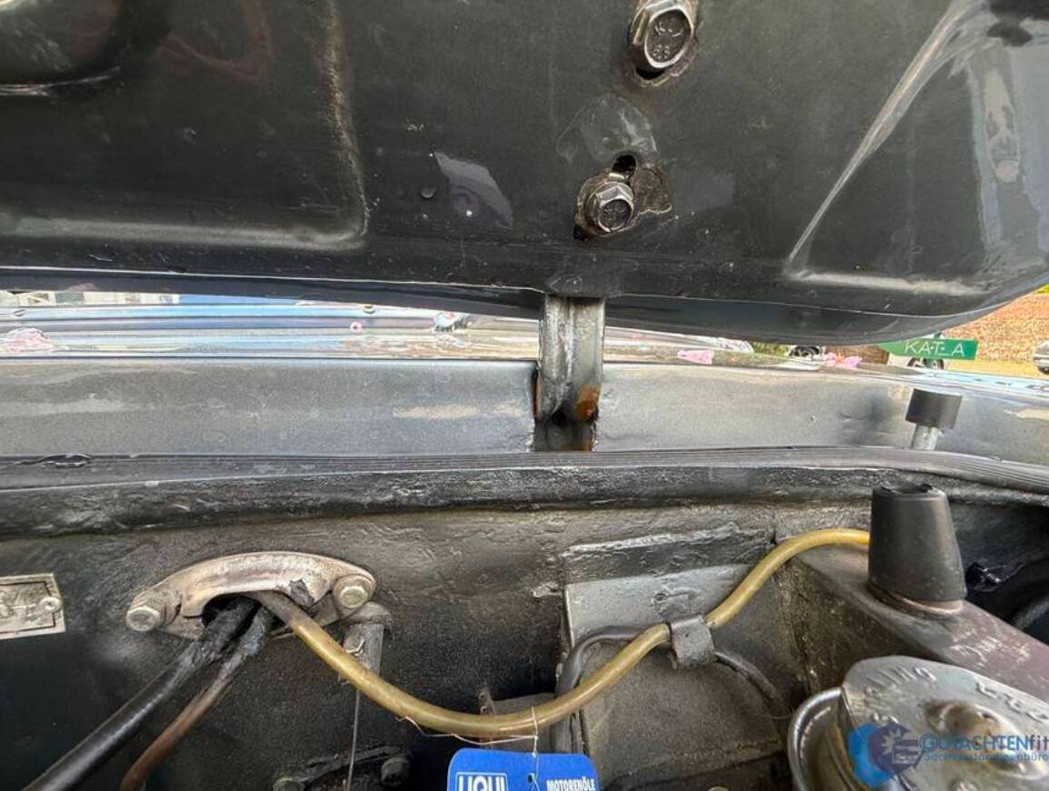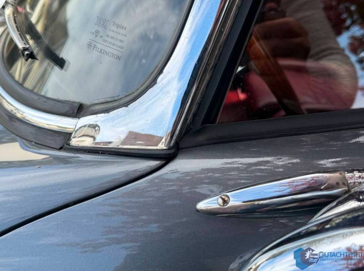 Altersübliche Gebrauchsspuren, insbesondere im Bereich Chrom und Verdeck, sind vorhanden und im Gutachten detailliert dokumentiert, unterstreichen jedoch die Authentizität dieses Klassikers.
