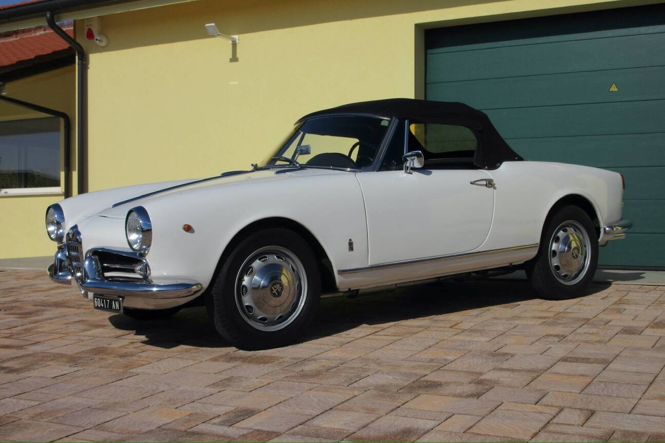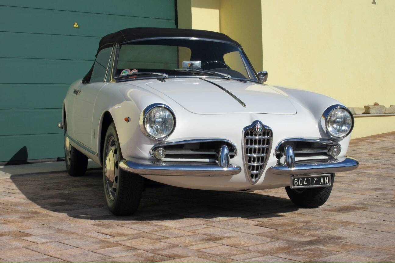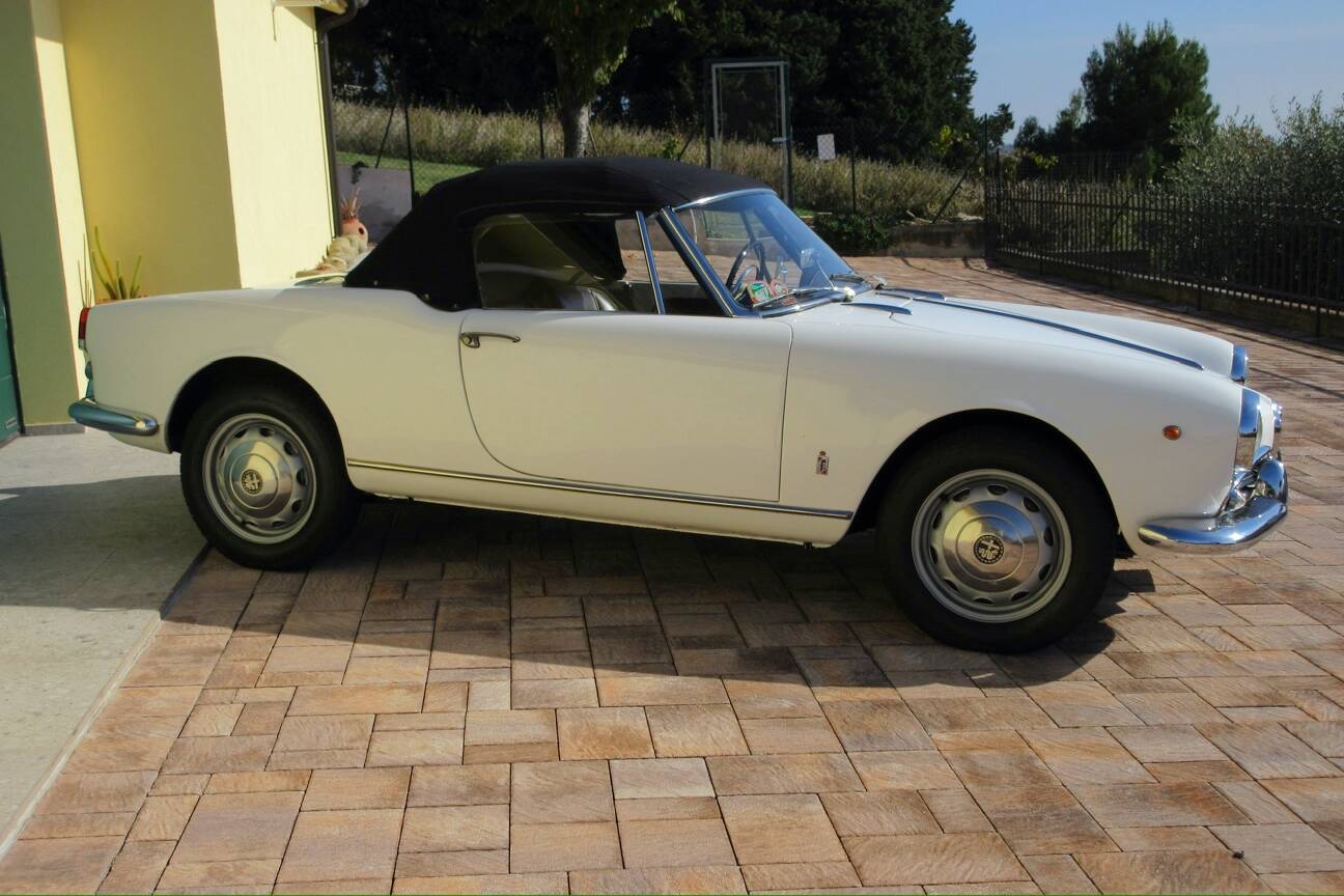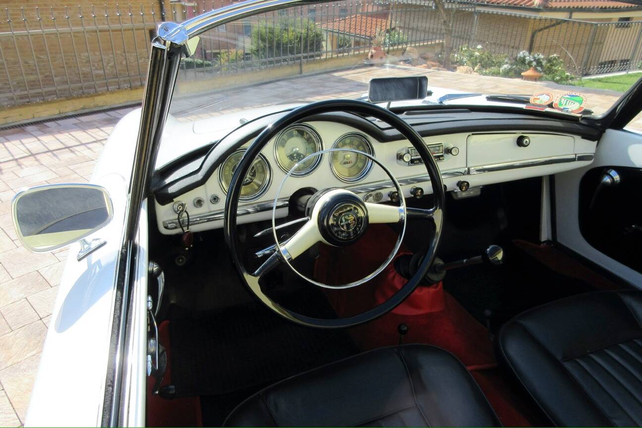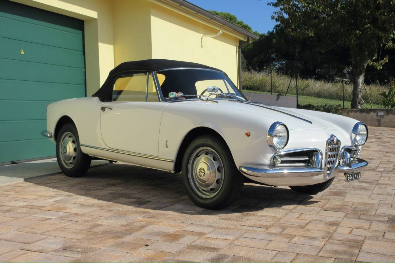 Magnificent 1961 Giulietta Spider 1300, finished in White with black interior, ASI Targa Oro approved and FIVA certified, with original license plate.