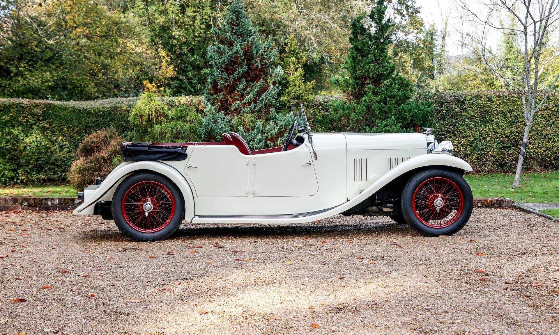 Owned for over 32 years by our vendor, this elegant example was originally despatched to Messrs. J. H. Galt in Glasgow in January 1934. The subsequent history is thin but a couple of keepers in 1964 and 1987 are known. At some stage, the car was off the road and, at this juncture, it is thought that the car was rebodied as a four-door open tourer. The current owner then acquired the car in 1994 and, with the support of the Alvis Owners' Club, the original 1930s registration number was re-acquired in 1996; the car is now fully matching numbers throughout and dry-stored.
