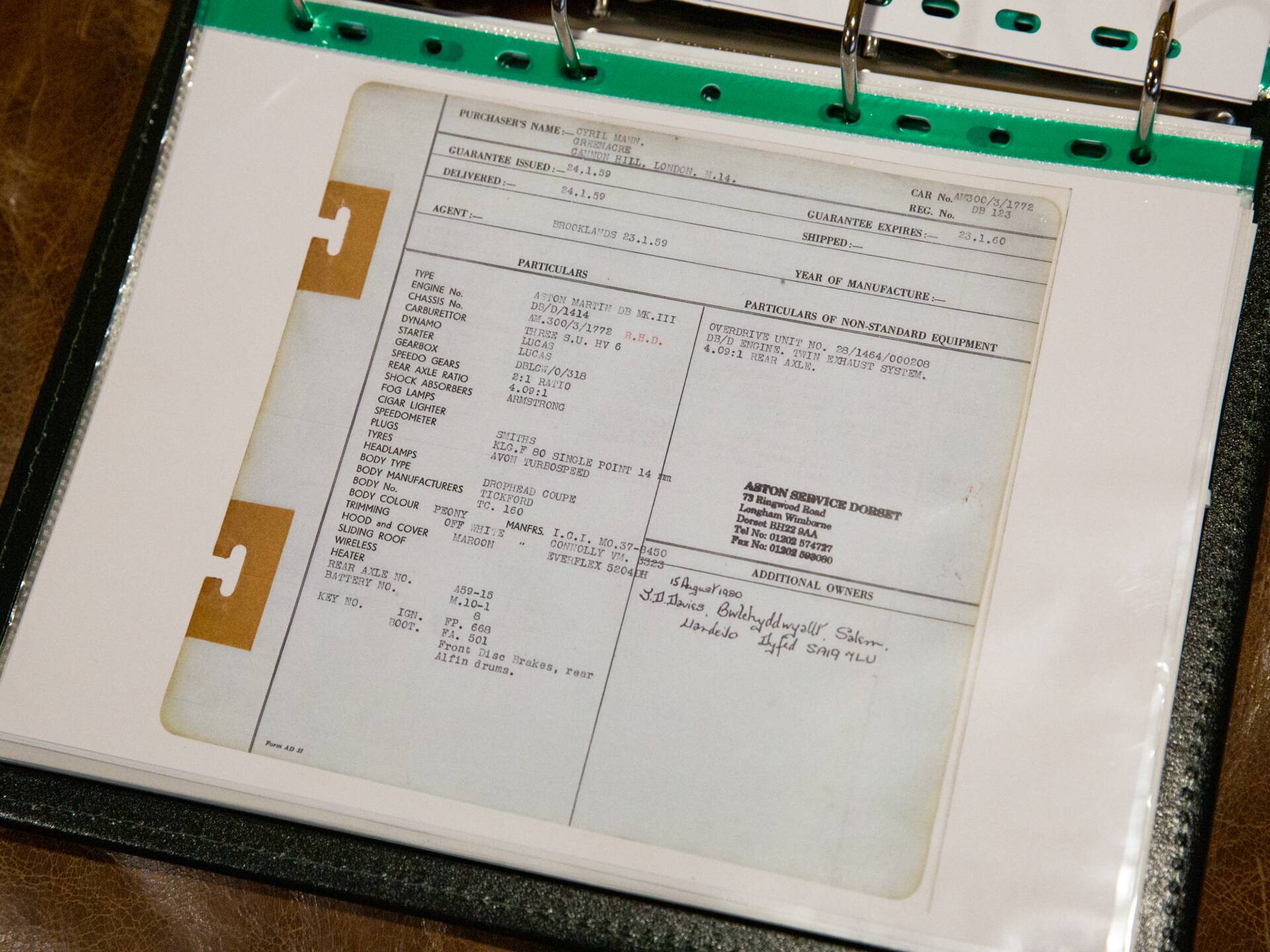 This ideally specified example was delivered when new to Mr Mann, registered on the UK registration number DB 123, a distinctive and highly appropriate registration number, which has been retained on the car to today.
