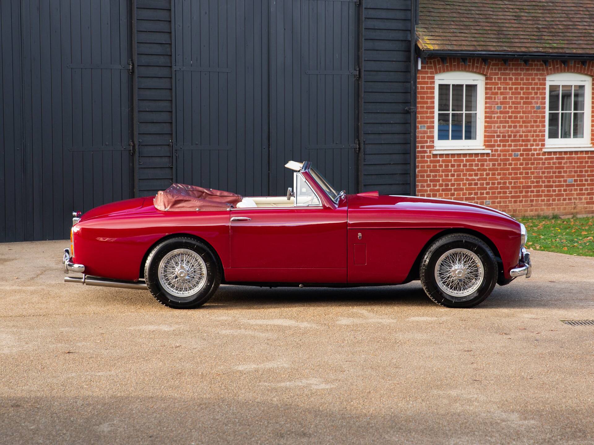 Built and supplied to Brooklands of Bond Street in January 1959, for delivery to its first owner, Mr Cyril Mann of London, this Mk III DHC is one of just 84 DHC’s built and one of only 14 specified from new, with the more powerful DBD specification triple carburettor engine. Further options fitted from new, also retained to today, include the highly desirable overdrive manual gearbox and twin exhaust system, also said to raise the power output of the engine. Delivered in Peony Red with an Off White VM. 3323 Connolly hide interior and fitted with a Maroon Ever-flex roof covering, all retained today.