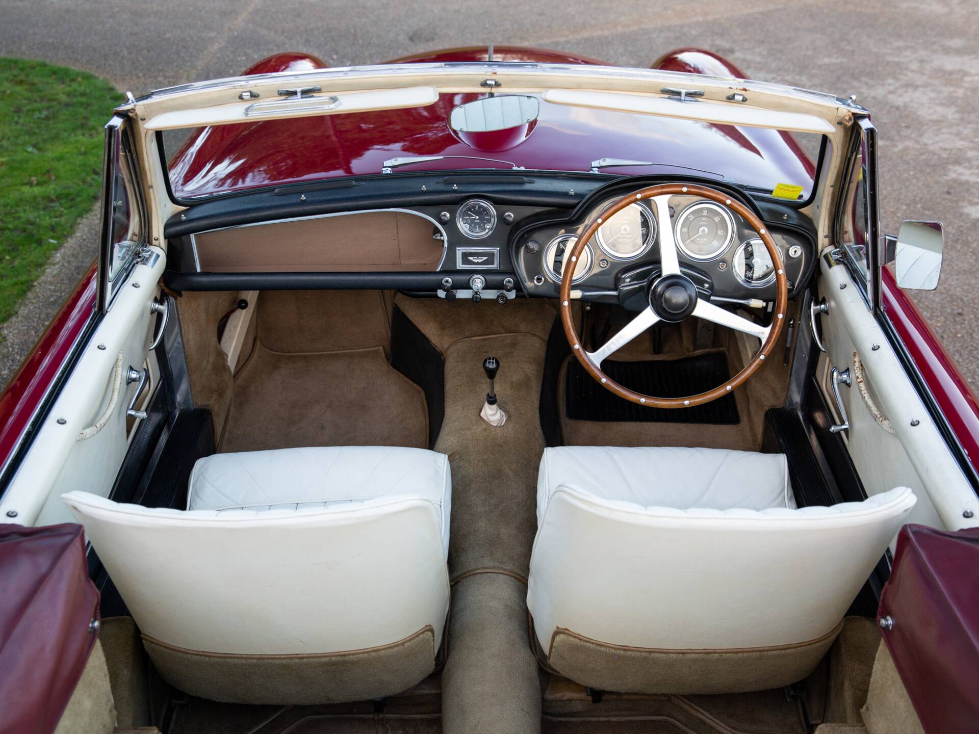 This car in particular is well known to Nicholas Mee having been acquired for the Aston Martin co- owner and chairman Victor Gauntlett in the late 1980’s, from the second known owner, a Mr Davies of Dyfed, Wales. Mr Davies had maintained the car with Aston Service Dorset, having previously purchased the car from the Performance Cars Ltd showrooms on the Great West Road in Brentford, London in the 1970s. Davies subsequently had a set of genuine Boranni alloy rimmed spoked road wheels and a DB3S type wood rimmed steering wheel fitted.
