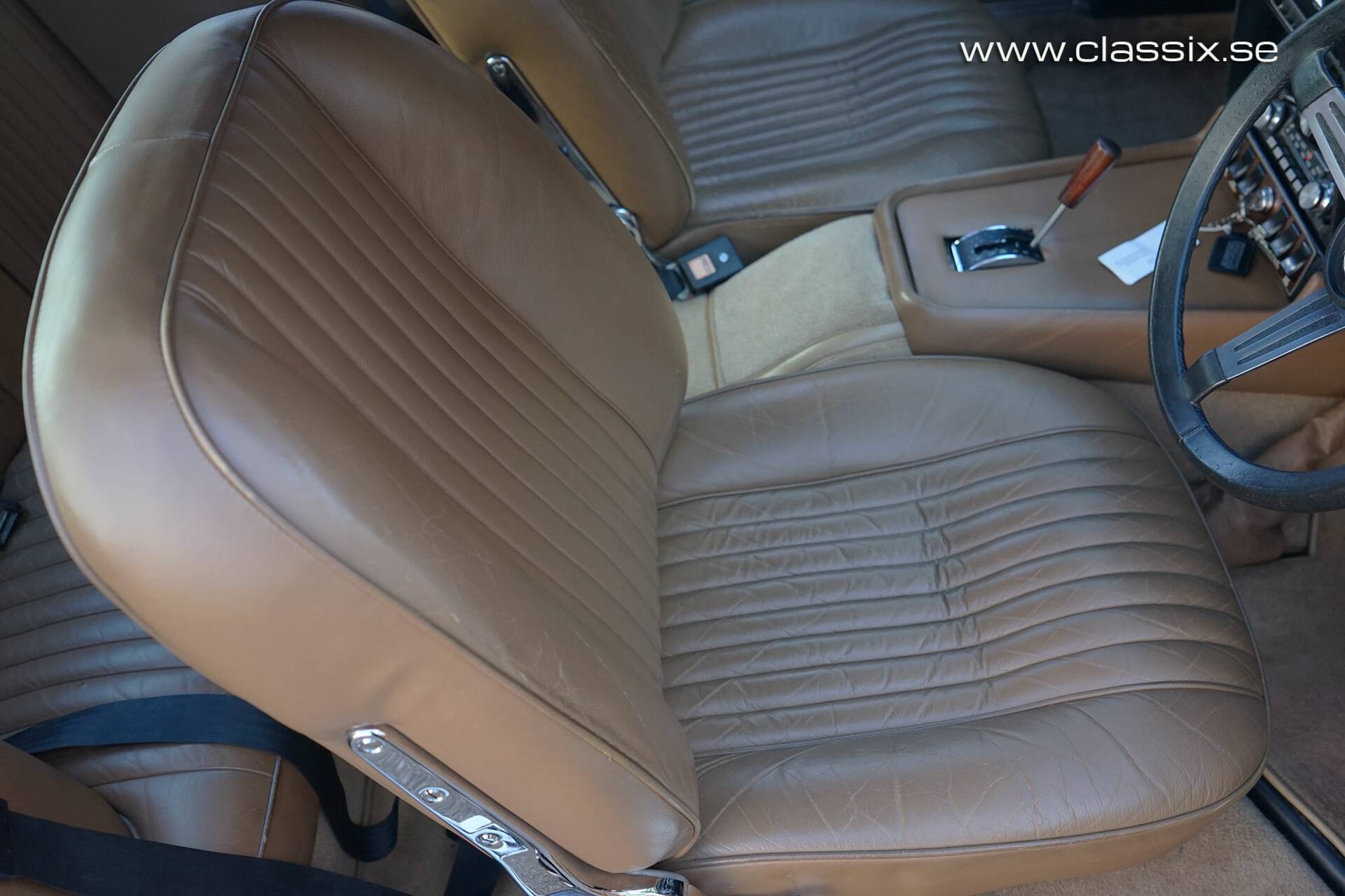 Interior: Inside, this Aston Martin DBS is trimmed in brown-beige leather that feels soft and inviting. The seats are comfortable and supportive, perfect for long-distance touring, and the large rear seats and generous boot make it more practical than many classics of its era. The headliner is in excellent condition, and the beautifully styled instruments and dashboard are a highlight of the cabin, reminding you of Aston Martin’s craftsmanship in the early 1970s.
