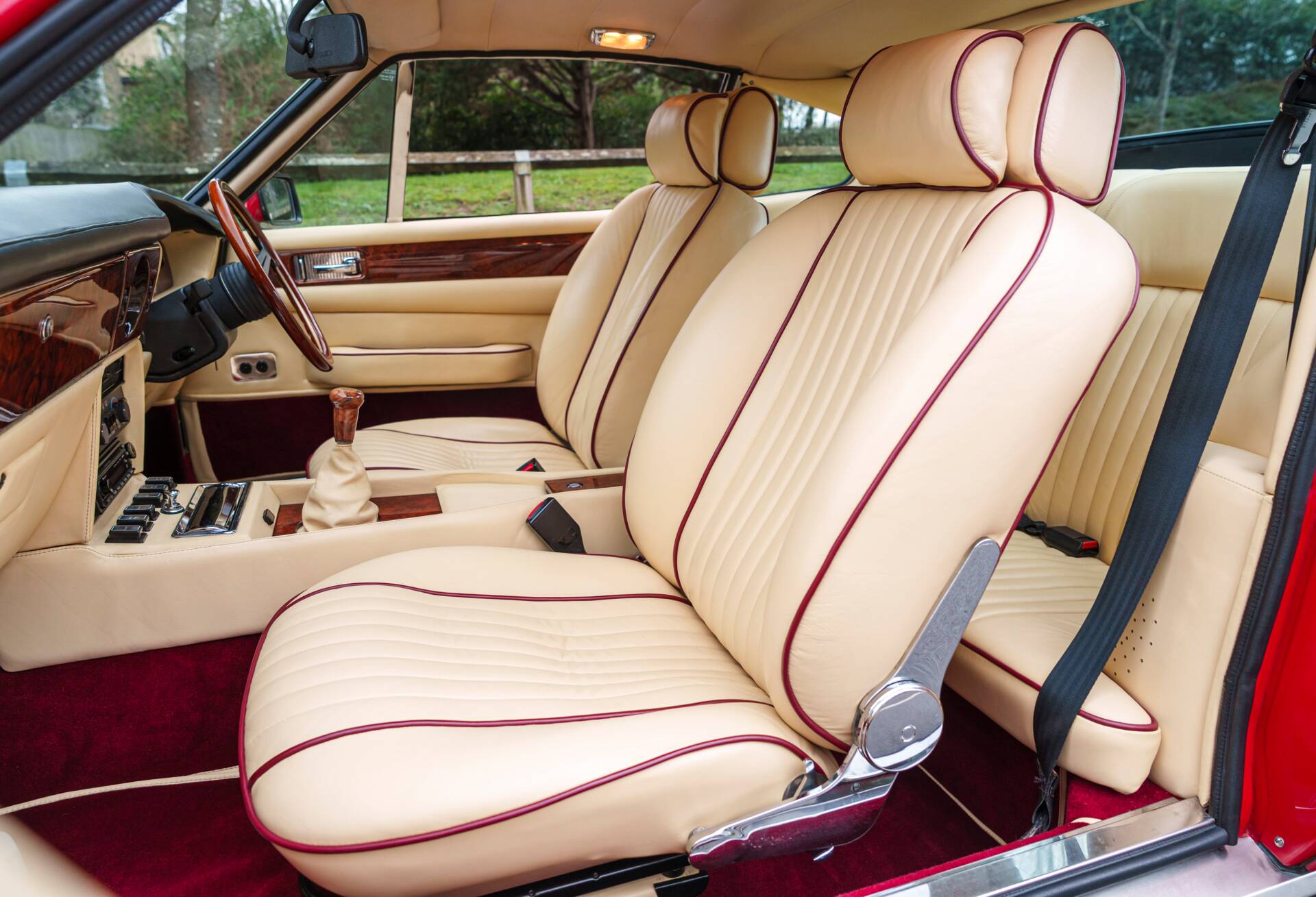 First delivered in the summer of 1987, this example was specified in the classic and highly complementary combination of Suffolk Red over Magnolia hide with dark piping, a colour scheme that perfectly suits the purposeful stance of the V8 Vantage. From new the car has been carefully maintained and its history file provides a clear and continuous record of its life, ownership and upkeep.