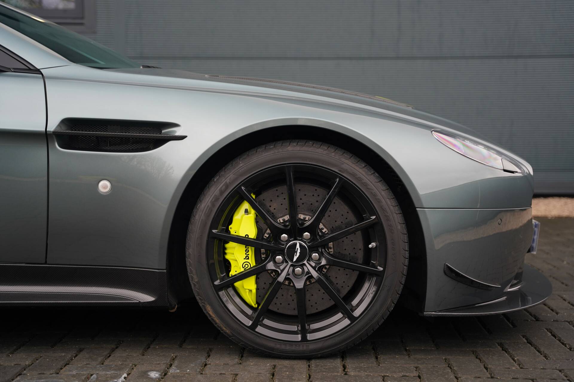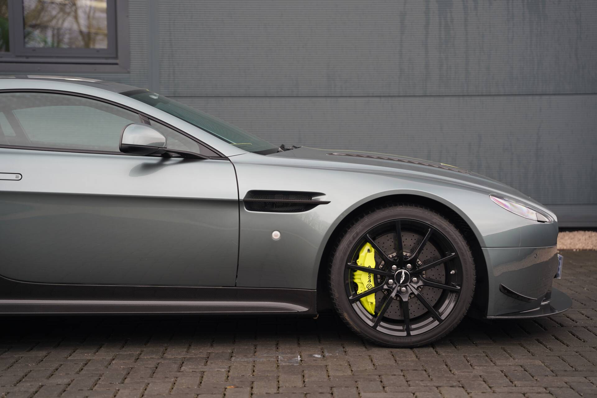 The car we are proud to offer today, is finished in the fabulous Stirling Green with Lime Green accent and is adorned with carbon fibre touches thanks to the optioned AMR Aero Kit. The kit brings with it extended carbon fibre elements including the front splitter and grille, front canards, bonnet vents, side strakes, full sill covers, mirrors, rear spoiler and rear diffuser. The gloss black lightweight forged wheels are home to the large carbon ceramic brakes and brake calipers, also finished in Lime Green. A final touch is the Union Jack-enamelled badges, cementing the cars British heritage.