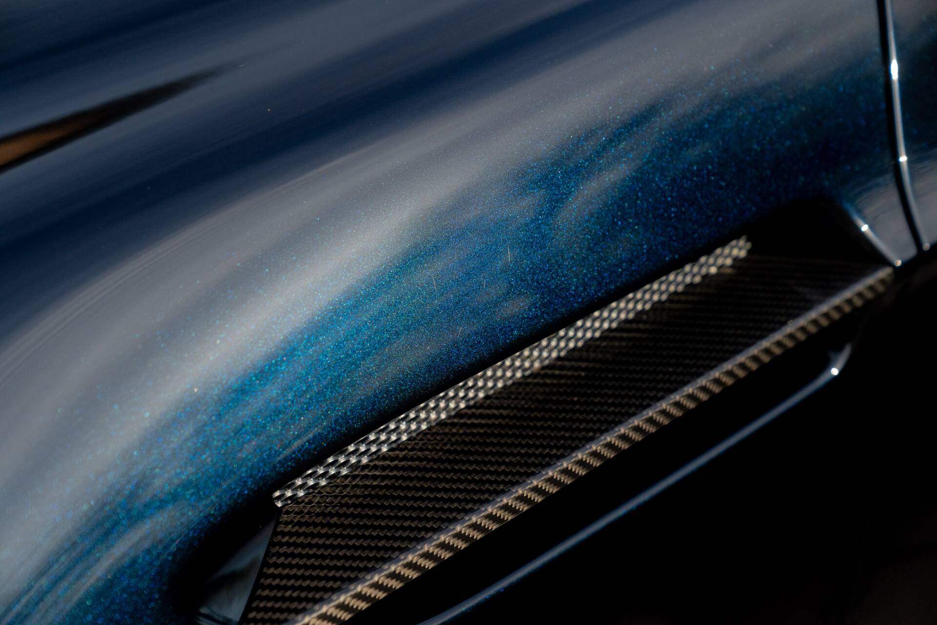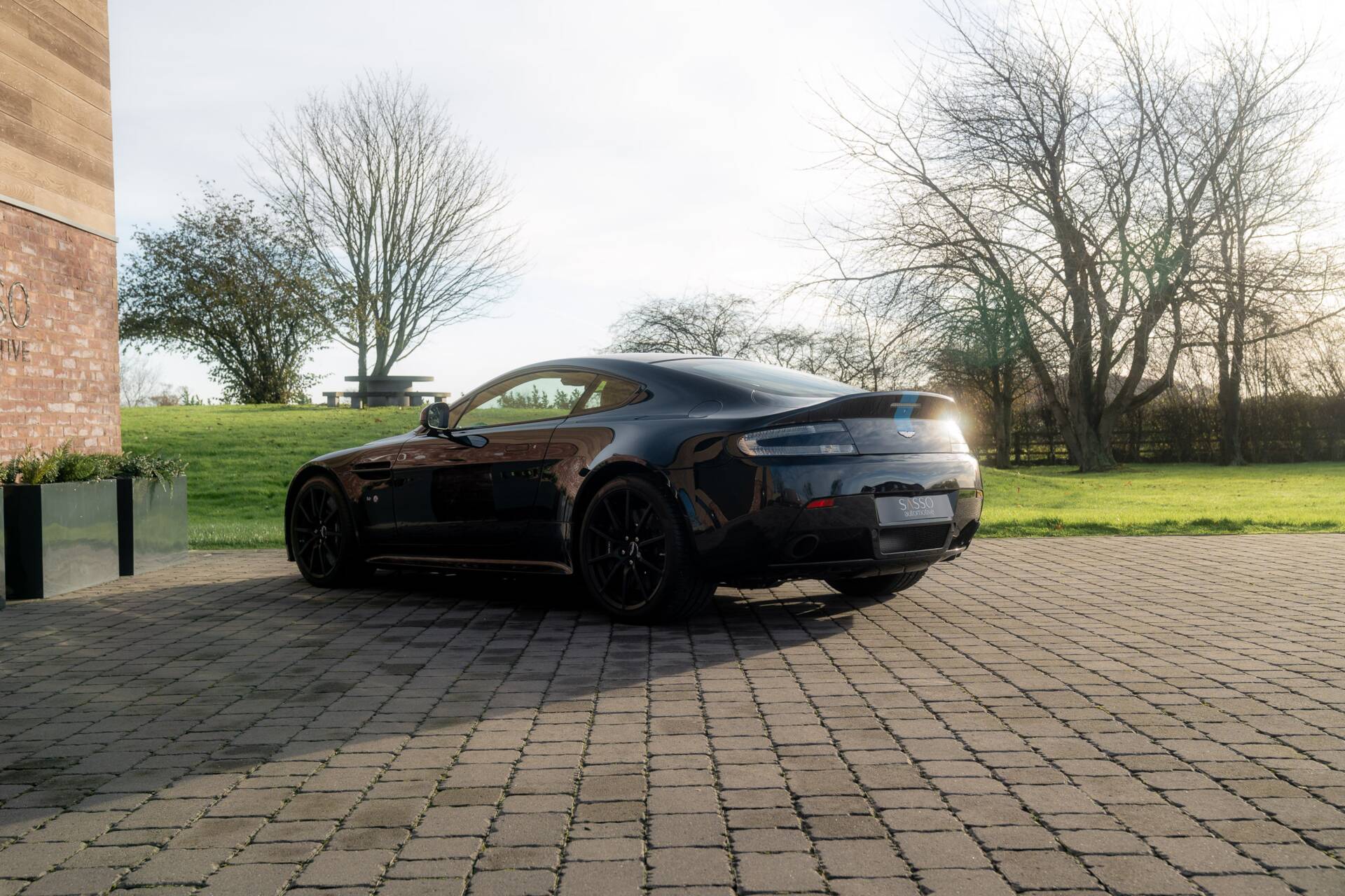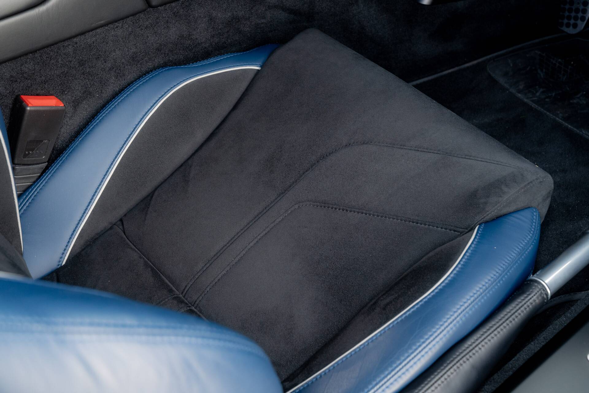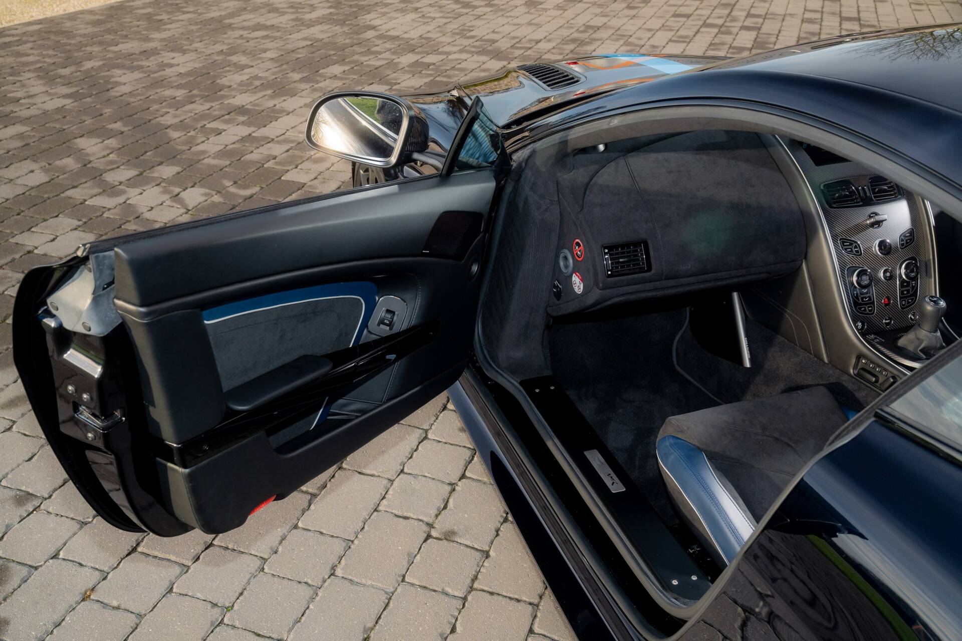 At Sasso Automotive, we are delighted to offer this exceptional, ultra low-mileage Aston Martin V12 Vantage AMR, finished in the striking Ultramarine Black with a factory painted racing stripe. Ultramarine Black is a deep, saturated blue black that shifts beautifully with the light appearing almost black in the shade, yet revealing shimmering metallic blue highlights in sunlight. This dynamic, atmospheric finish is one of Aston Martin’s sought after Q series colours, chosen for its refined presence and dramatic visual depth.