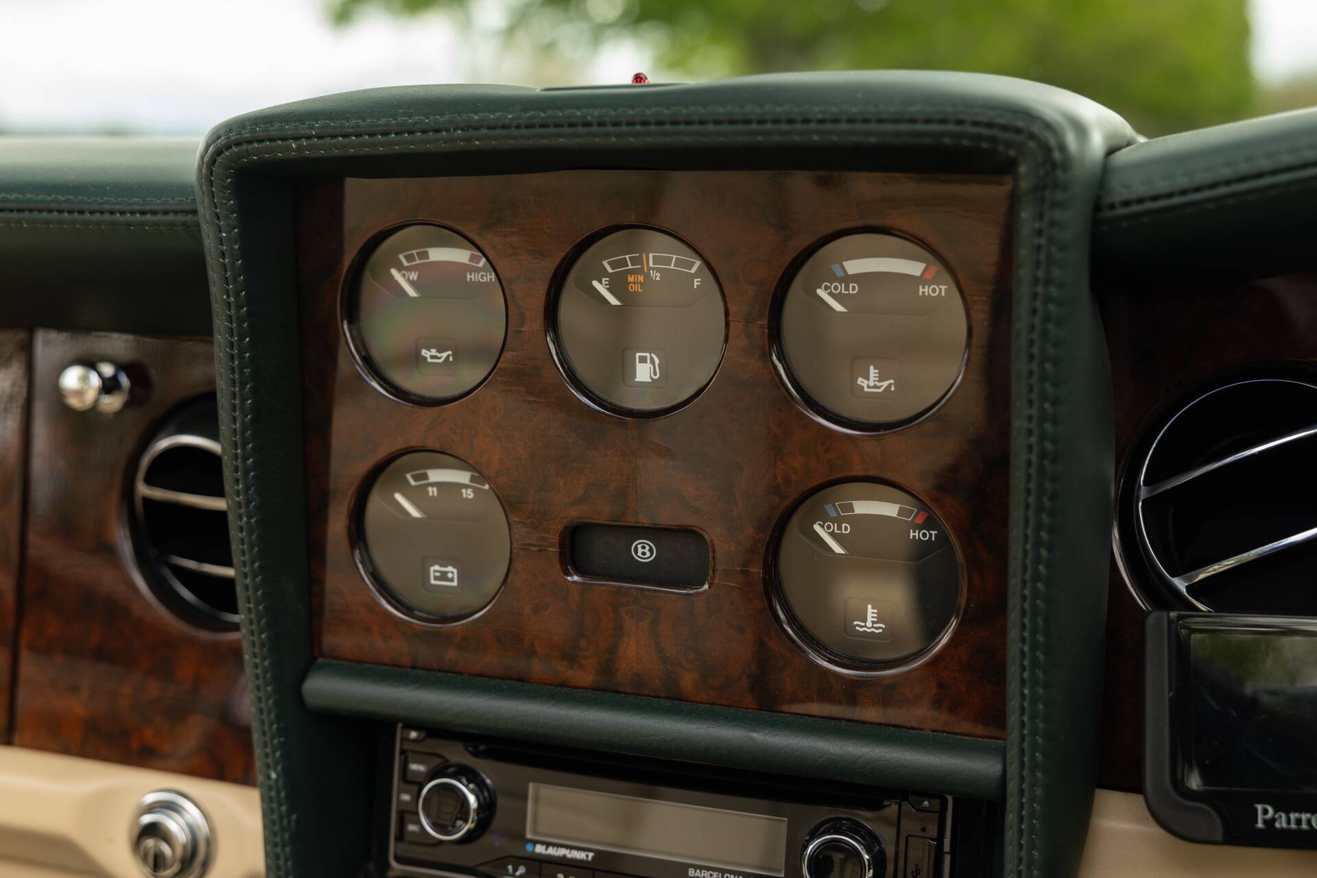 Dry-stored and with regular servicing taking place at one of the very best Bentley specialists, H.R. Owen, the bills were not cheap but for a motorcar such as this, it requires only the best. The swathes of interior 'Cotswold' cream leather, subtly punctuated by contrasting 'Spruce' green piping, represent an opulent place to be, the ride made more sublime with the addition of a factory tonneau &wind deflector which sits behind the front seats. The well-appointed double-duck soft-top is in excellent condition and drops down without issue. Fine audio reproduction can be enjoyed through the Blaupunkt Barcelona head-unit with speakers subtly situated around the cockpit. A factory-fitted reversing aid has also been included with a factory-delete rear boot badge and red badging. With a Tracker included and MoT test certificate valid until November this year, the acquisition and use of this fabulous example could be straight forward and immediate. Consigned by Edward Bridger-Stille