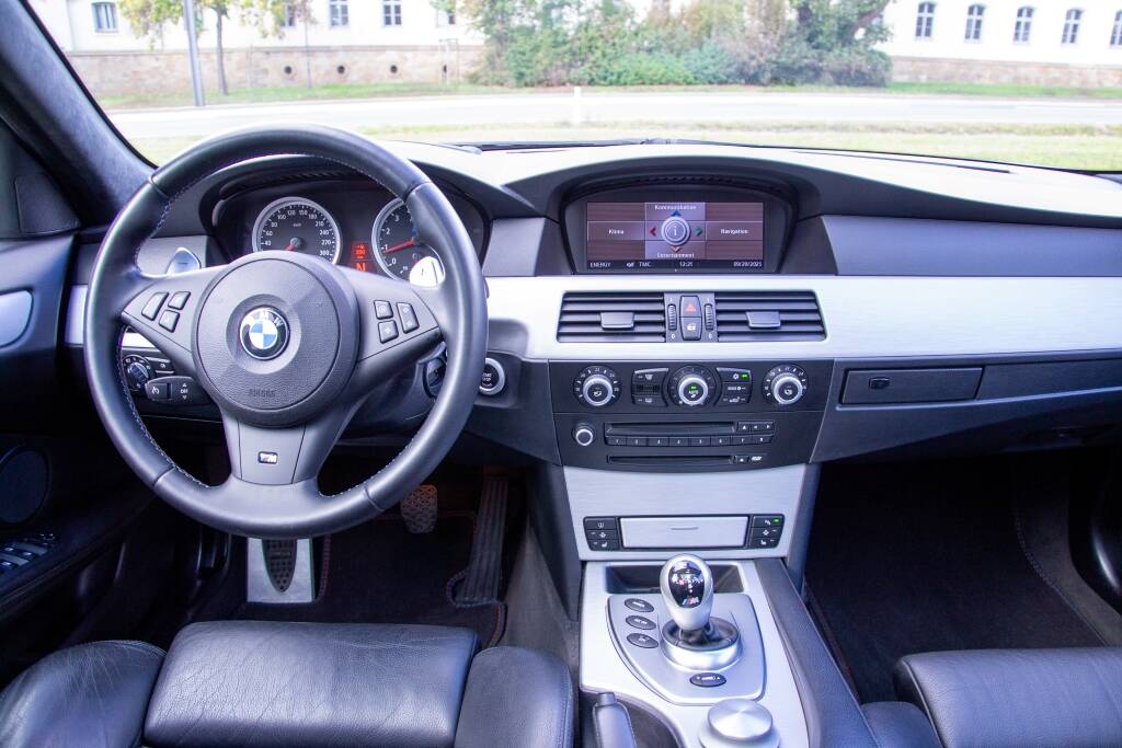 Technisch wurde in den letzten Jahren einiges am M5 gemacht. Hierzu zählen unter anderem die Lagerschalen, alle VANOS-Leitungen und das I-Drive System. Somit sind potentielle Schwachstellen des Fahrzeuges bereits angegangen worden. Optisch präsentiert sich der Wagen in einem wirklich außerordentlich guten Zustand. Lediglich die Frontschürze wurde aufgrund von Steinschlägen neu lackiert.