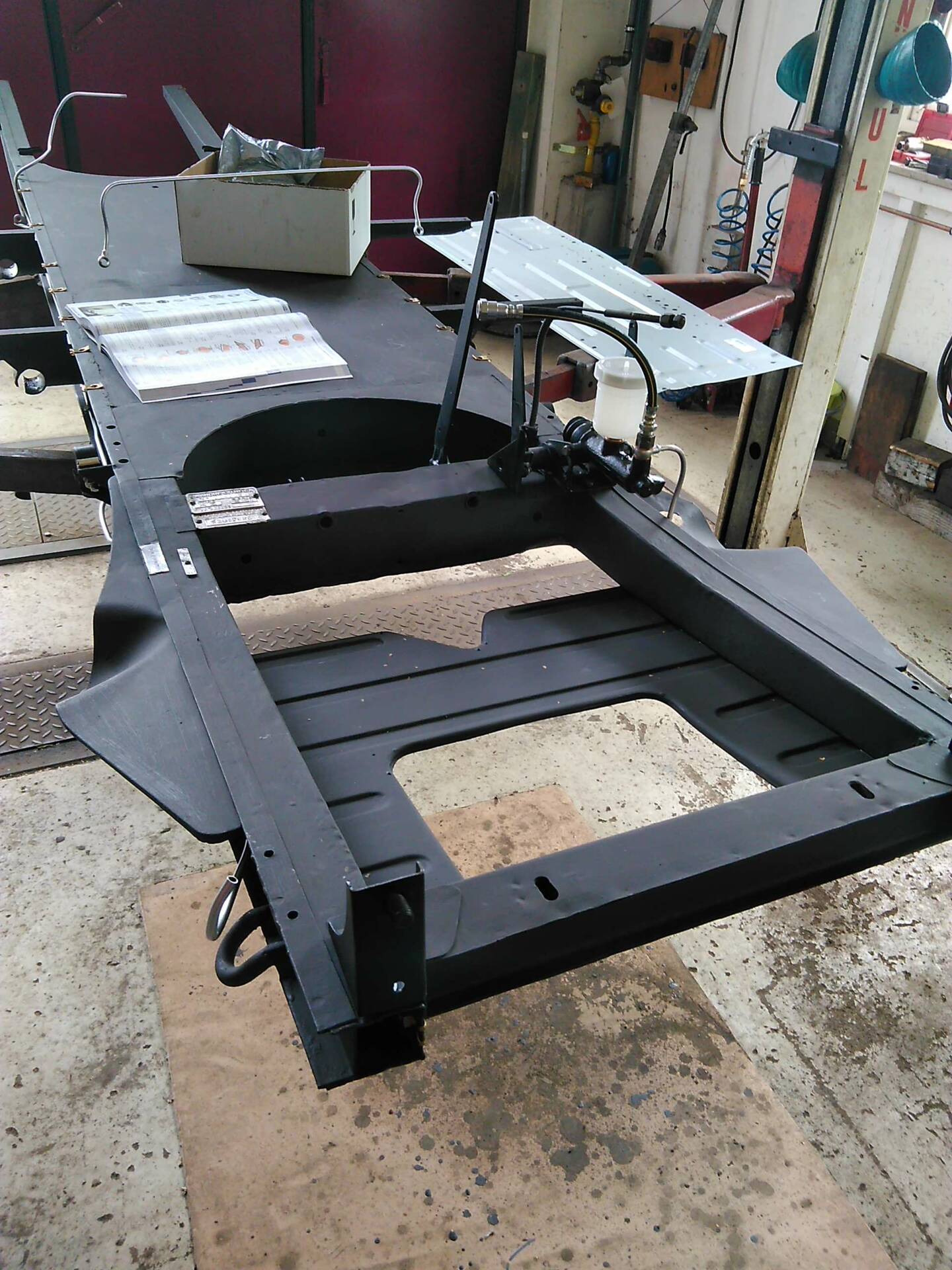 Das Fahrgestell wurde auch komplett zerlegt, verroestete Teile im Inneren wurden durch neu angefertigte Bleche ersetzt. Das Fahrgestell wurde danach Hohlraumversiegelt.