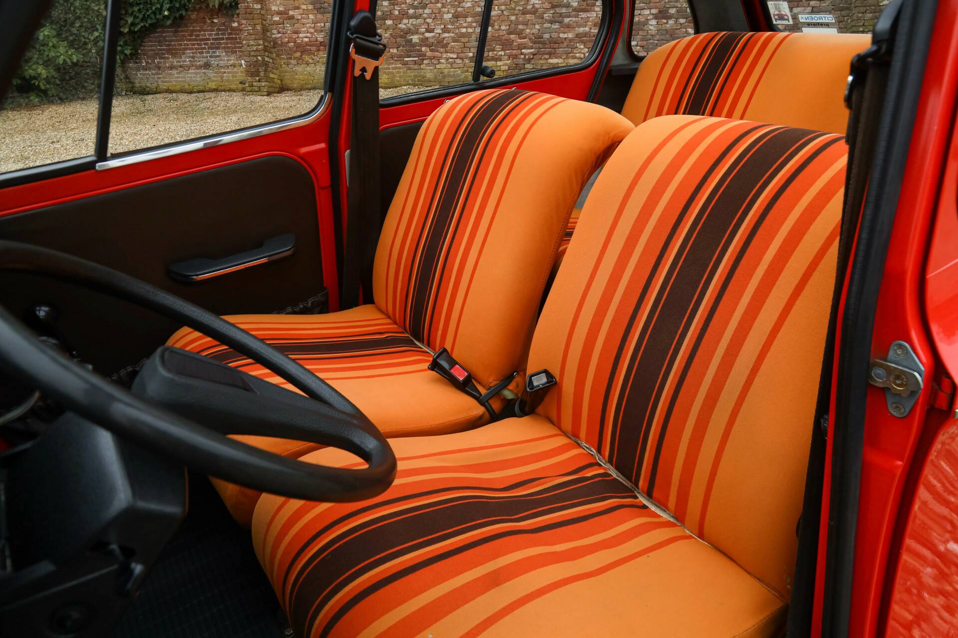 Citroën Dyane 6 "Rouge Geranium" "Tout simplement original", Purchased a few years ago by a well-known specialist because of its unparalleled originality, Fully serviced preventively by a specialist 300 km ago, Color scheme creates a warm - earthy and inviting atmosphere: "Rouge Geranium avec Orange et Brun", Offered with nice documentation, Regardless of the quality - The Dyana makes you feel good,