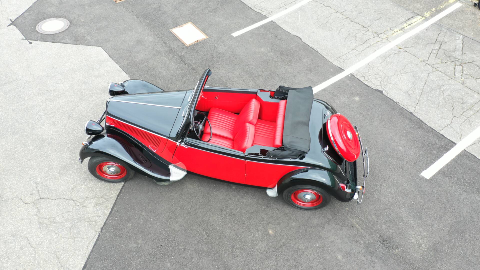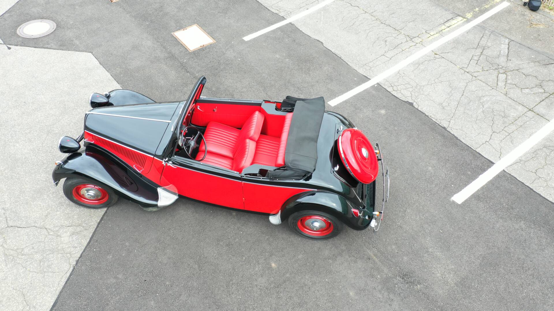 Zum Verkauf steht ein äußerst seltener und begehrter **Citroën 11 CV als Cabriolet-Umbau, **auch bekannt als Traction Avant – das erste Serienfahrzeug mit Vorderradantrieb und selbsttragender Karosserie.