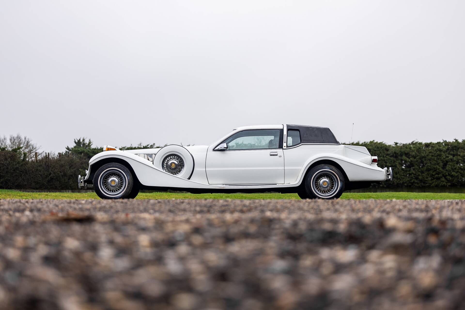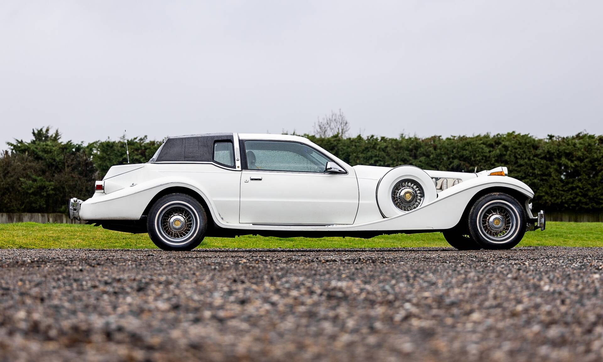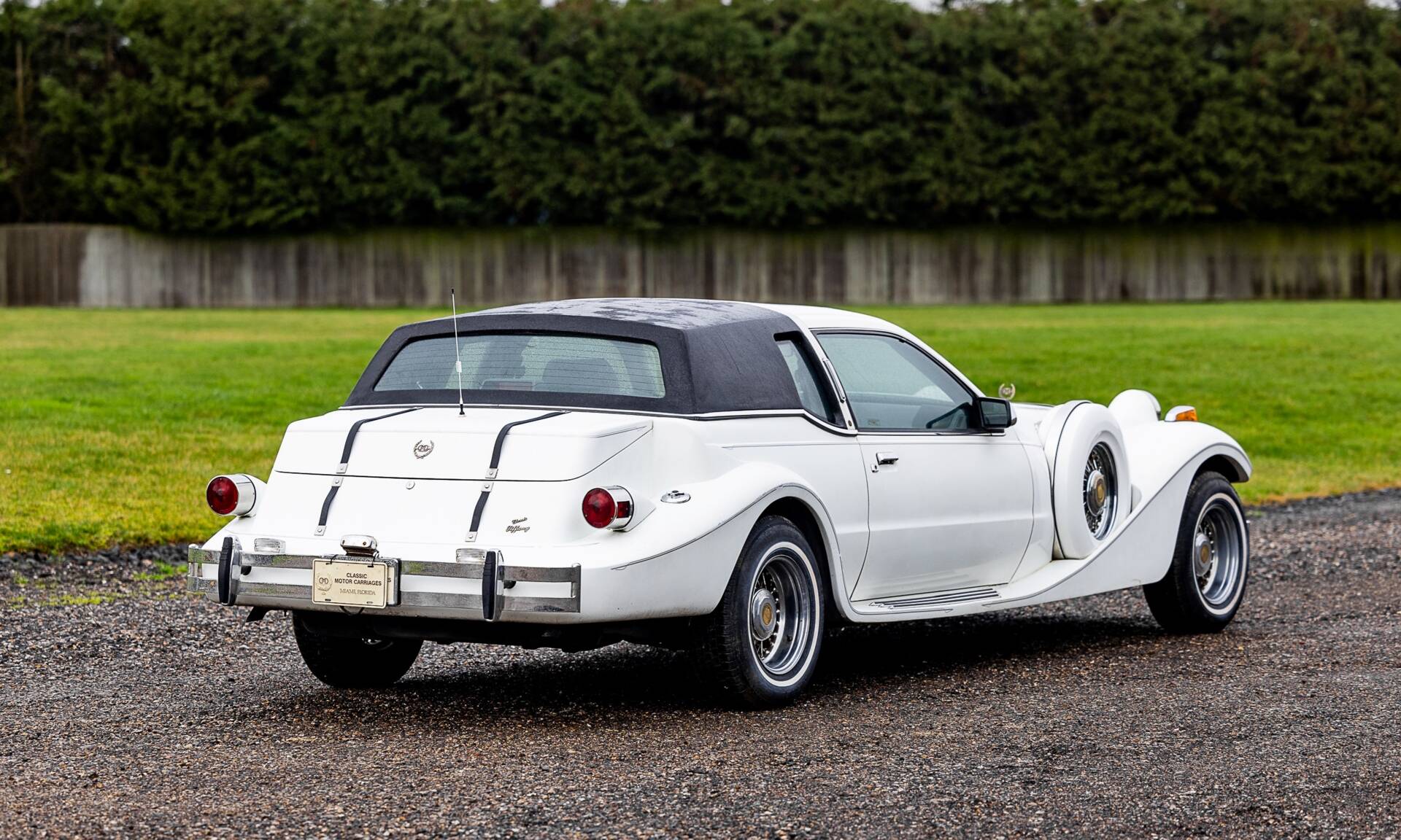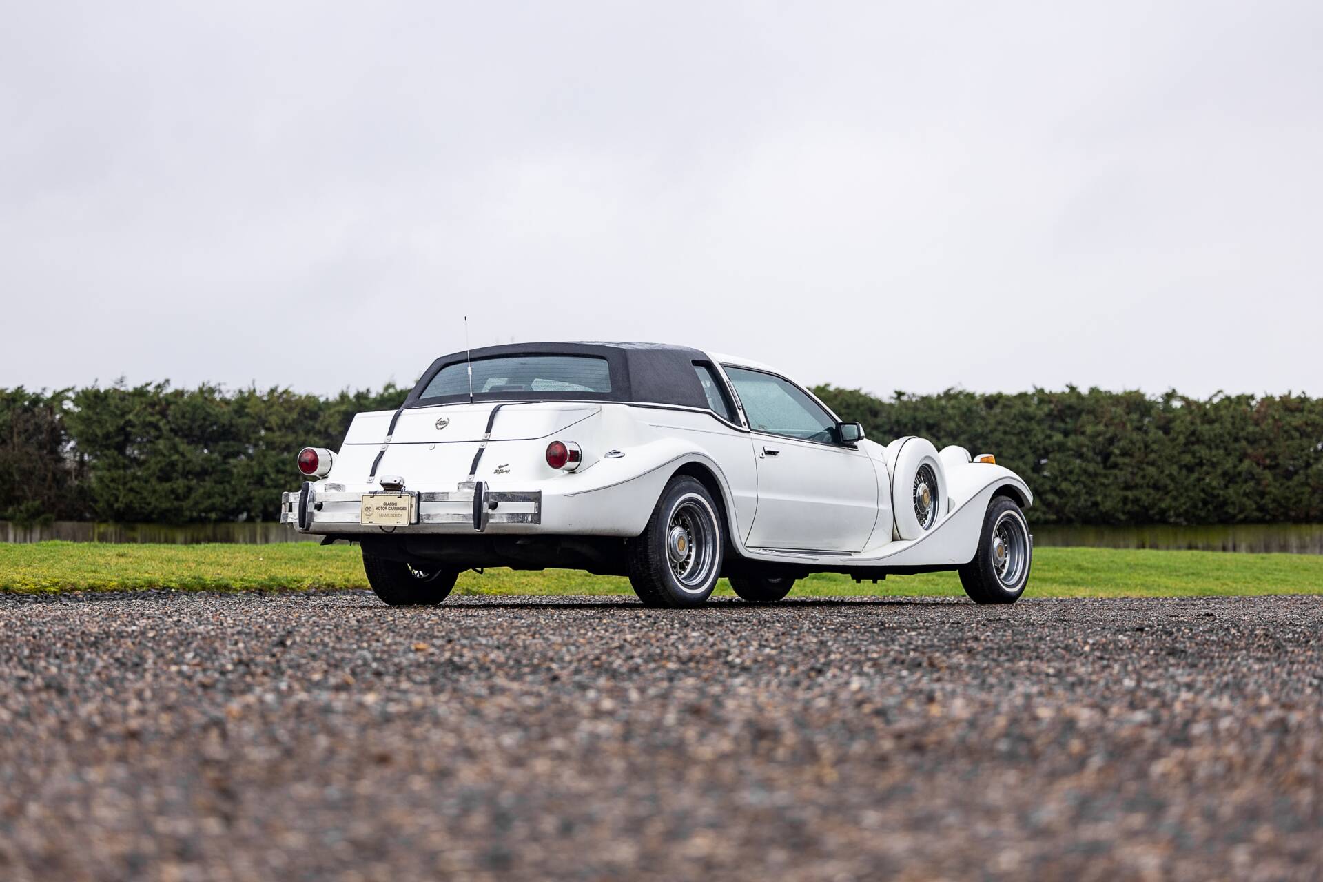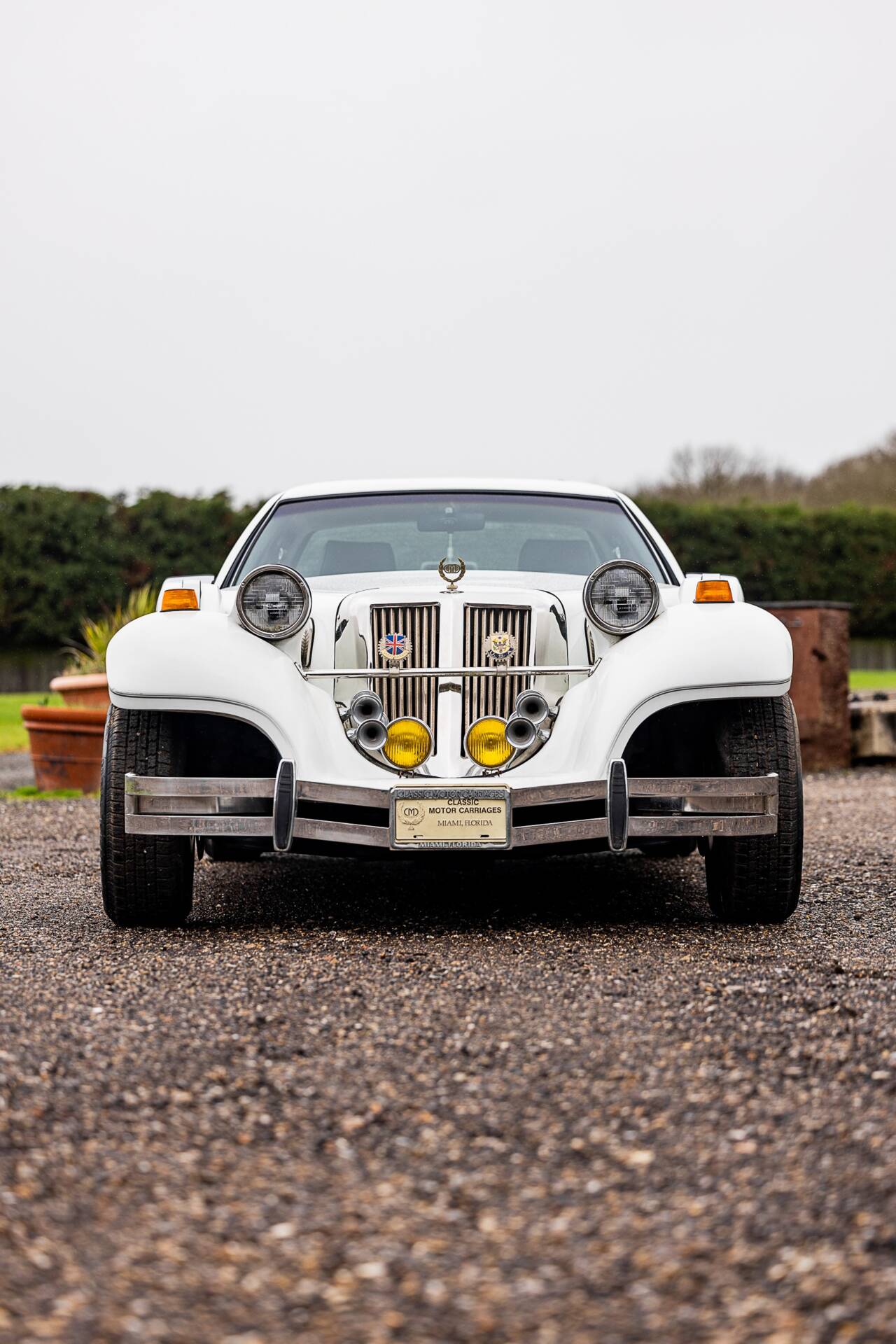 Built on the Mercury Cougar chassis and modelled on 1930's luxury cars, this retro five-seater boasts a 5.0 litre V8 multipoint fuel injected engine coupled to a smooth automatic gearbox. This example was sent from Florida and spent much of its early life in the UAE, finished in white with an abundance of chrome and with luxury grey leather trim. The car boasts electric windows, mirrors, a glass sunroof, cruise control, power steering and air conditioning all controlled inside while sitting behind a full digital dash of the 80's which at the time of consignment is in fully working order. These are becoming rarer and, in this condition, fully working and with such low mileage this is a collector's item, ideal for film work or occasions with the oversized headlights, huge curving fenders and side exit exhausts. Underneath this example shows its little use incredibly well with the car appearing like new, due to its existence in the UAE it has escaped the usual pitfalls of the colder climbs but has been recommission with a new fuel tank and fuel pump, indeed it starts on the button. Supplied with a UK NOVA number and taxes paid this can be registered in the UK or anywhere in the world. If you want to turn heads nothing will do it quite like a CMC Tiffany. Consigned by Mathew Priddy