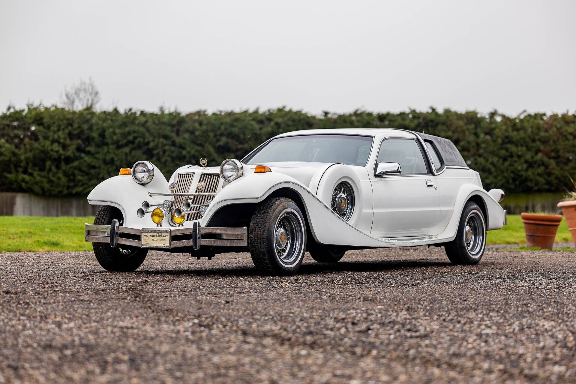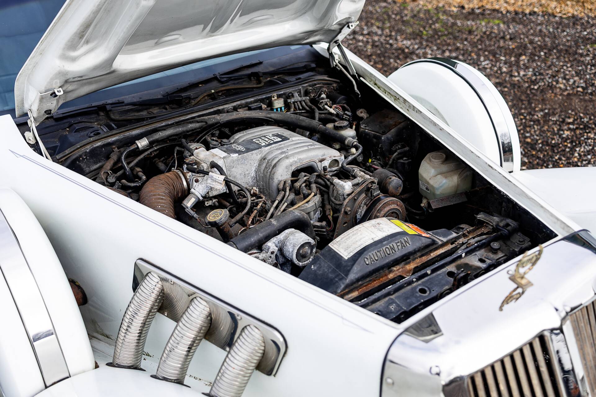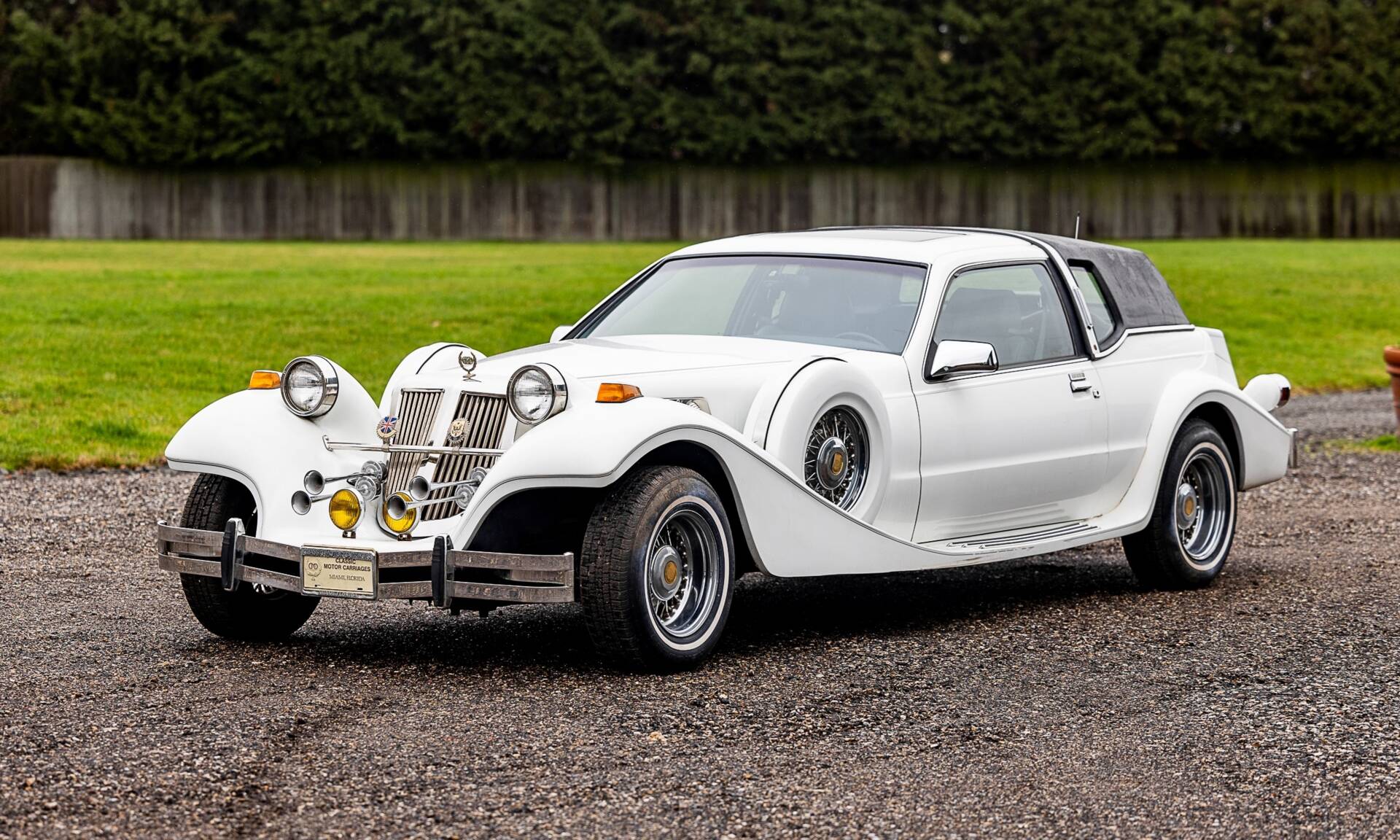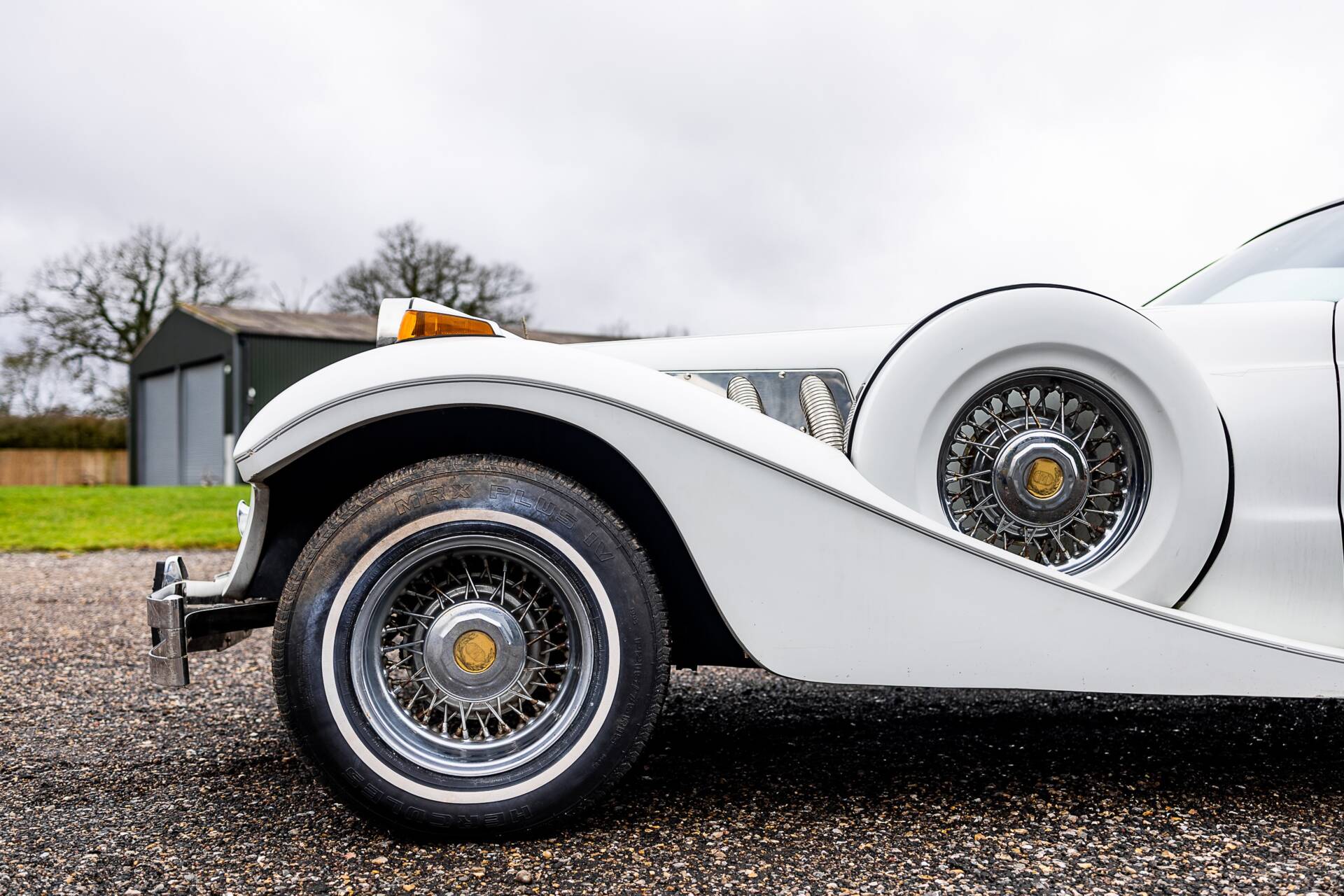 Built on the Mercury Cougar chassis and modelled on 1930's luxury cars, this retro five-seater boasts a 5.0 litre V8 multipoint fuel injected engine coupled to a smooth automatic gearbox. This example was sent from Florida and spent much of its early life in the UAE, finished in white with an abundance of chrome and with luxury grey leather trim. The car boasts electric windows, mirrors, a glass sunroof, cruise control, power steering and air conditioning all controlled inside while sitting behind a full digital dash of the 80's which at the time of consignment is in fully working order. These are becoming rarer and, in this condition, fully working and with such low mileage this is a collector's item, ideal for film work or occasions with the oversized headlights, huge curving fenders and side exit exhausts. Underneath this example shows its little use incredibly well with the car appearing like new, due to its existence in the UAE it has escaped the usual pitfalls of the colder climbs but has been recommission with a new fuel tank and fuel pump, indeed it starts on the button. Supplied with a UK NOVA number and taxes paid this can be registered in the UK or anywhere in the world. If you want to turn heads nothing will do it quite like a CMC Tiffany. Consigned by Mathew Priddy