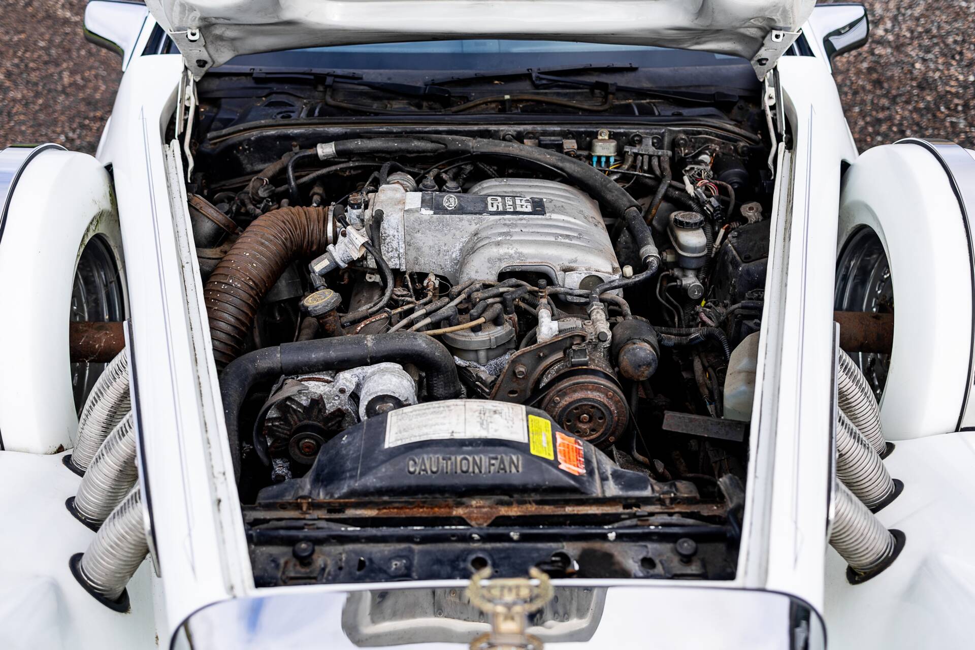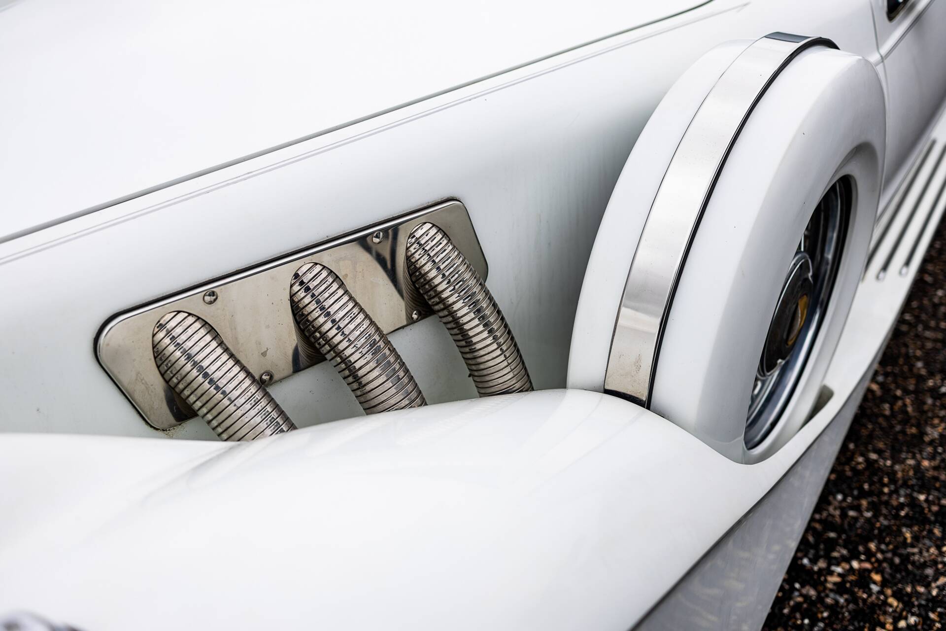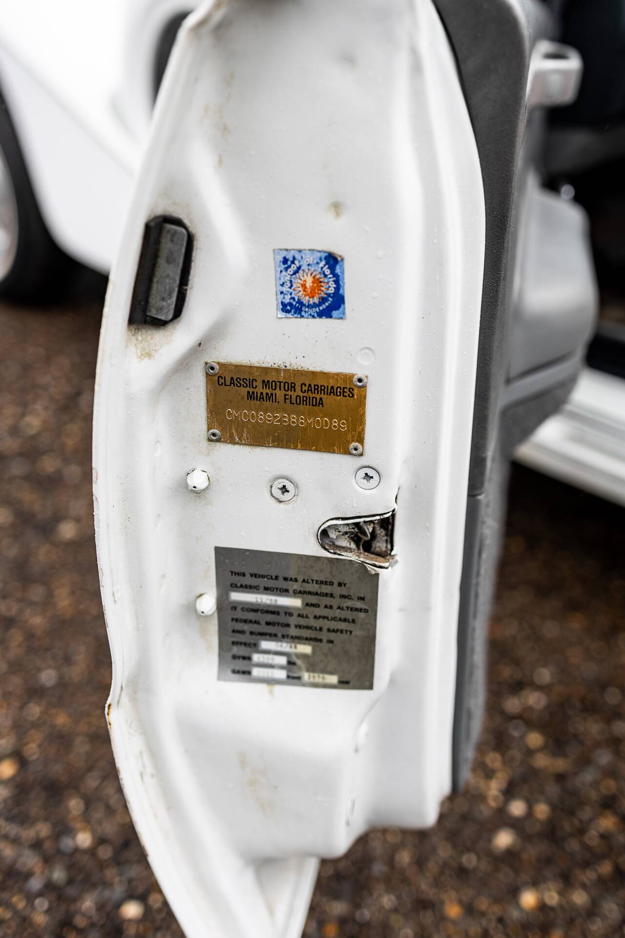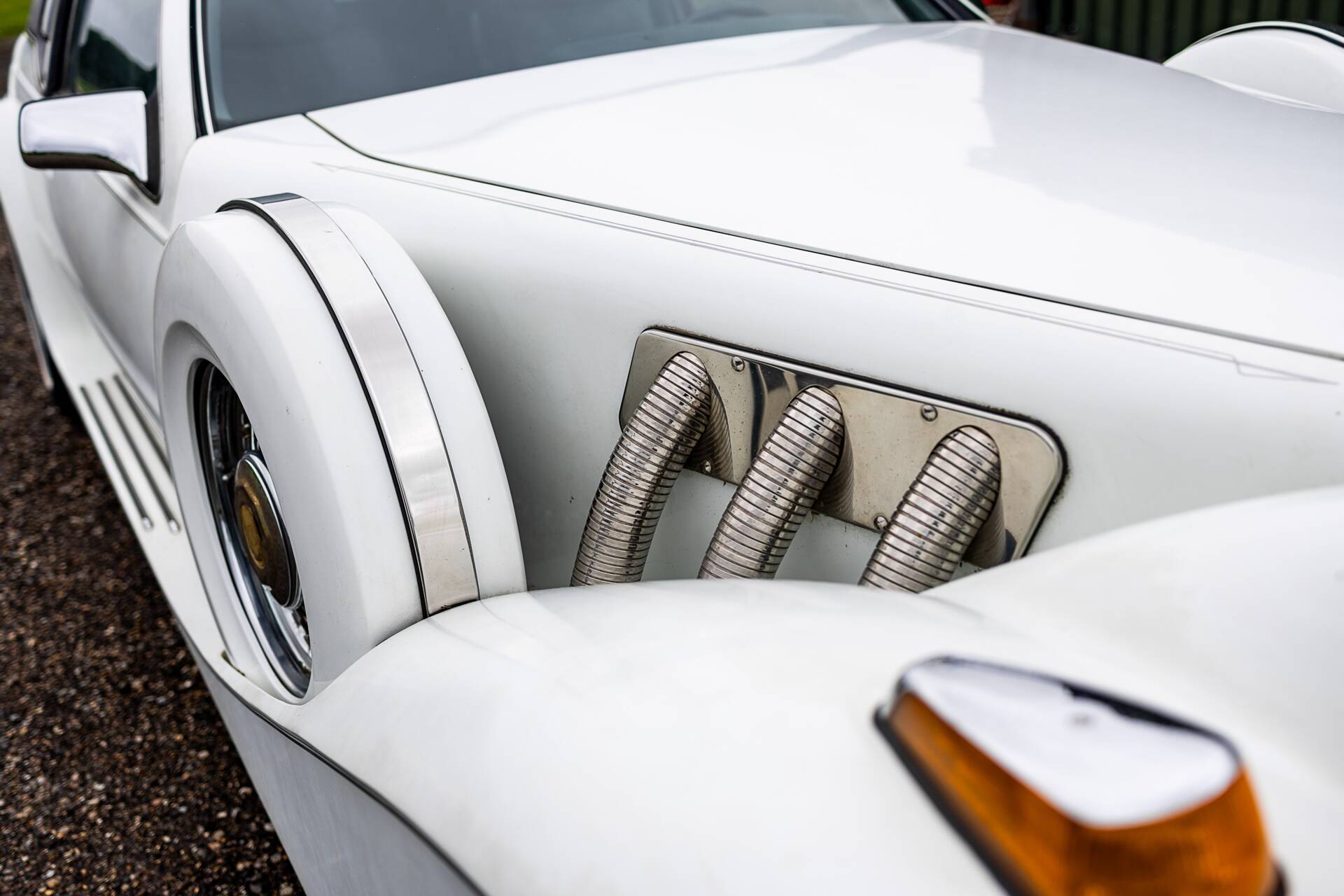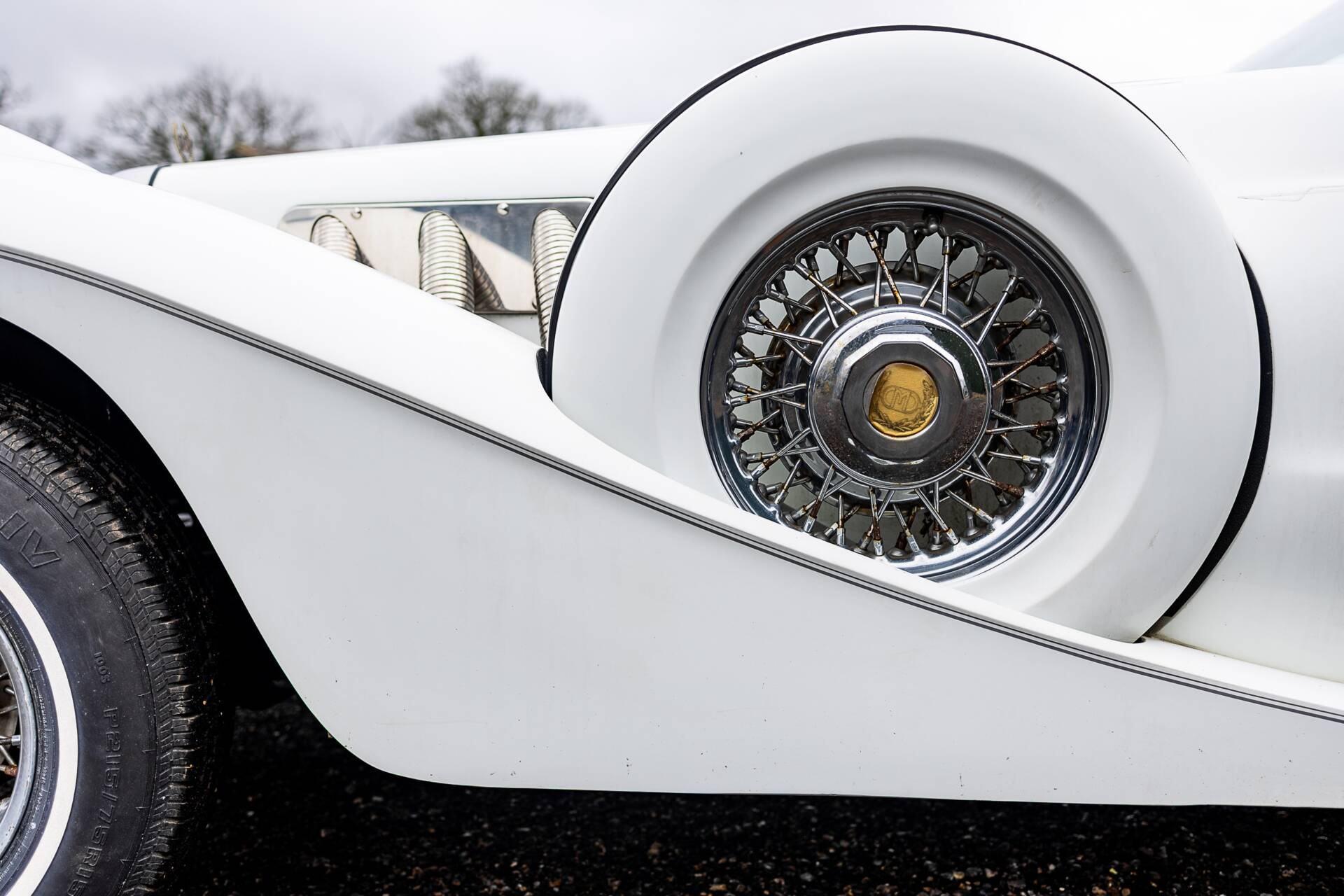 Built on the Mercury Cougar chassis and modelled on 1930's luxury cars, this retro five-seater boasts a 5.0 litre V8 multipoint fuel injected engine coupled to a smooth automatic gearbox. This example was sent from Florida and spent much of its early life in the UAE, finished in white with an abundance of chrome and with luxury grey leather trim. The car boasts electric windows, mirrors, a glass sunroof, cruise control, power steering and air conditioning all controlled inside while sitting behind a full digital dash of the 80's which at the time of consignment is in fully working order. These are becoming rarer and, in this condition, fully working and with such low mileage this is a collector's item, ideal for film work or occasions with the oversized headlights, huge curving fenders and side exit exhausts. Underneath this example shows its little use incredibly well with the car appearing like new, due to its existence in the UAE it has escaped the usual pitfalls of the colder climbs but has been recommission with a new fuel tank and fuel pump, indeed it starts on the button. Supplied with a UK NOVA number and taxes paid this can be registered in the UK or anywhere in the world. If you want to turn heads nothing will do it quite like a CMC Tiffany. Consigned by Mathew Priddy