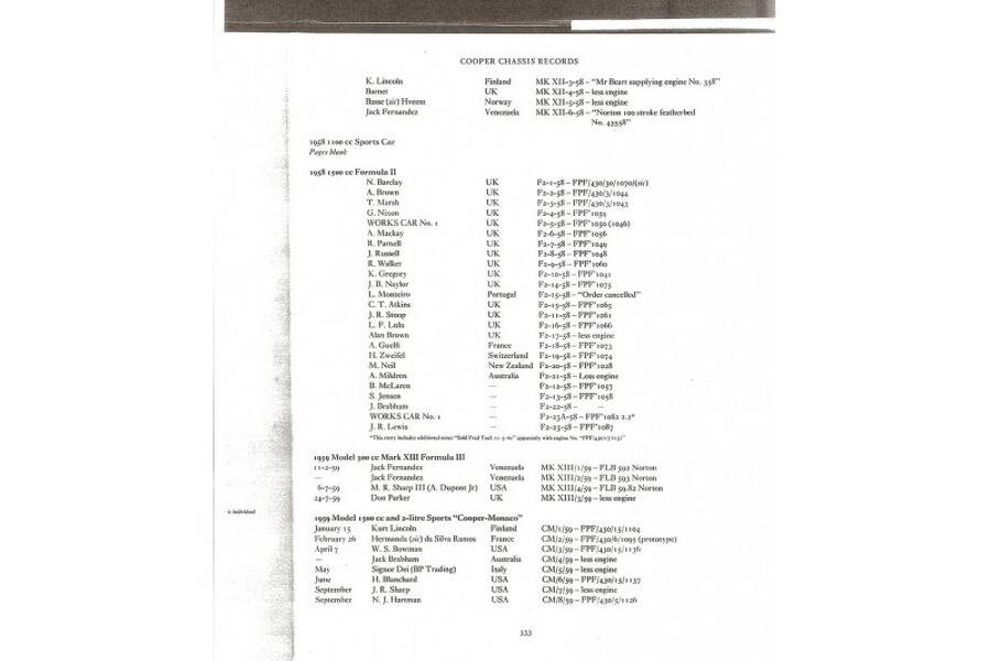 CM/6/59 was the sixth of the eight factory built cars and was delivered new to American car dealer Harry Blanchard of Connecticut. After a succesfull racing career in the USA until 1980, the car was bought and imported into the UK by Stirling Moss. Stirling sold the car as a restoration project the following year to David Watson who commissioned Hall & Fowler to carry out a full restoration of the car. The restoration was overseen and invoiced through Stirling Moss Ltd.. Despite having sold the car, Stirling tested the car at Silverstone and raced it at the curtain opener for the 1983 Monaco Grand Prix. CM/6/59 then spent another 15+ years in USA where it was vintage raced until it came back to Europe in 2000 where it has remained and raced until today. The full history of the car is detailed in the History section below).