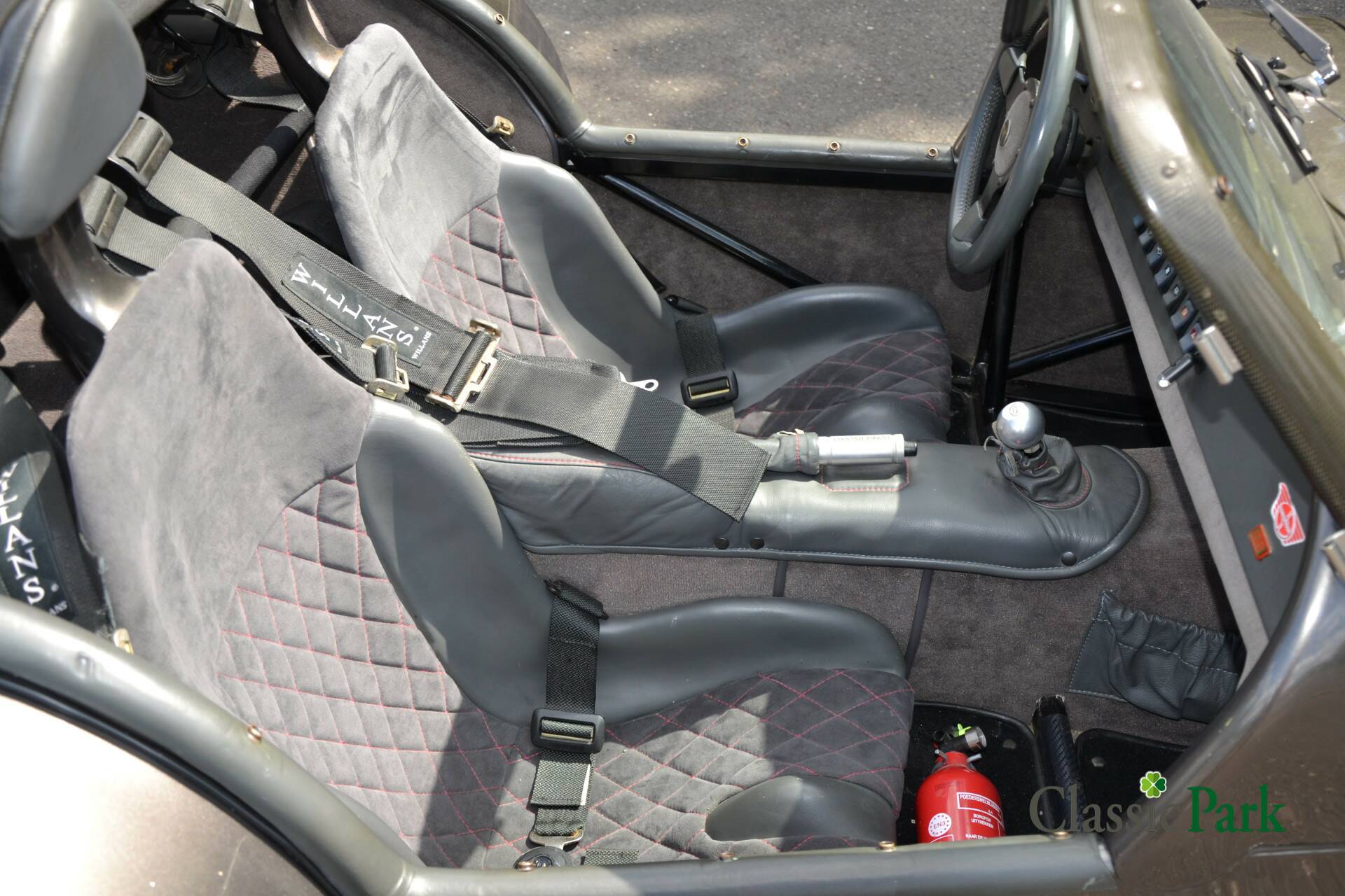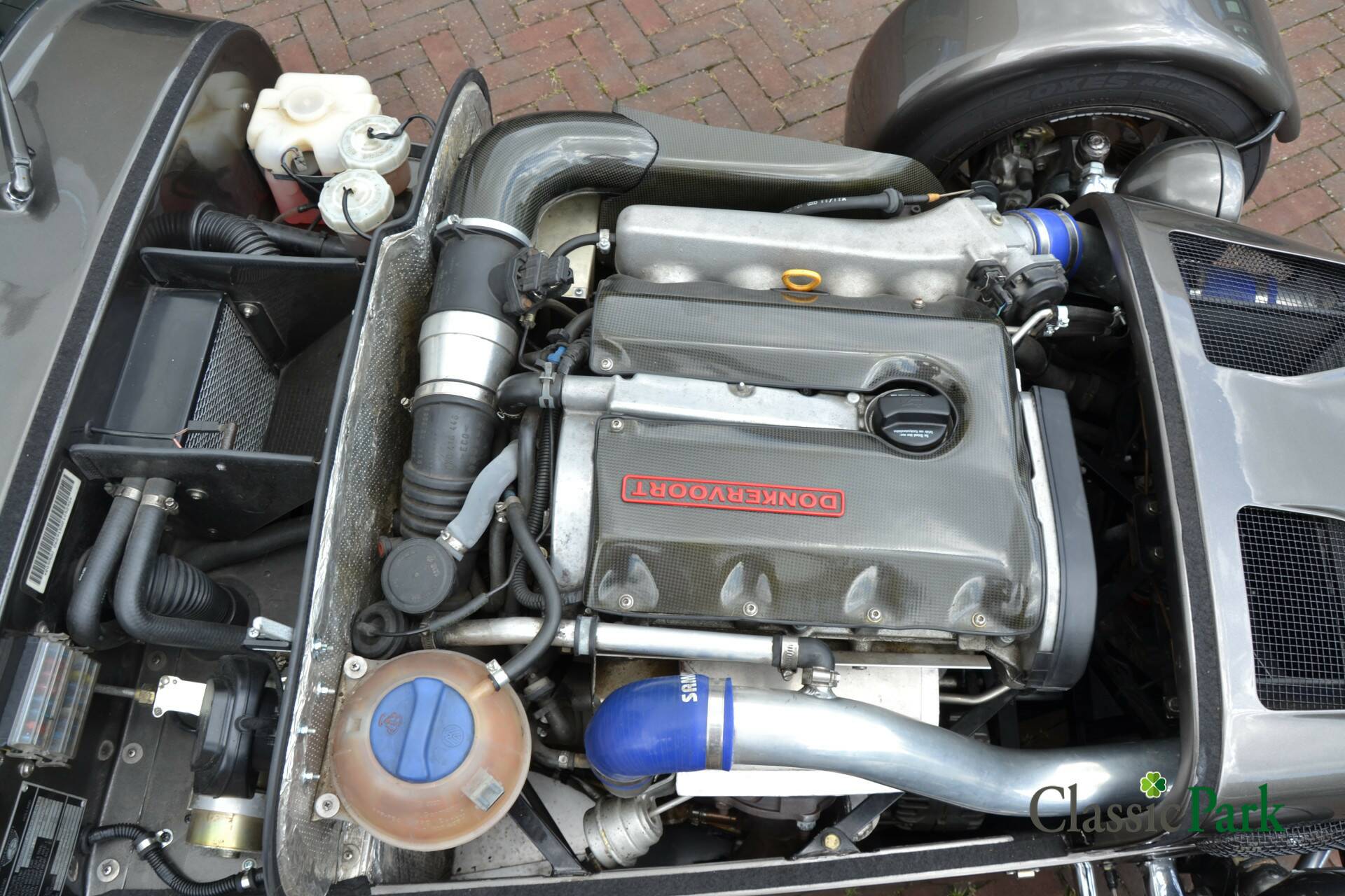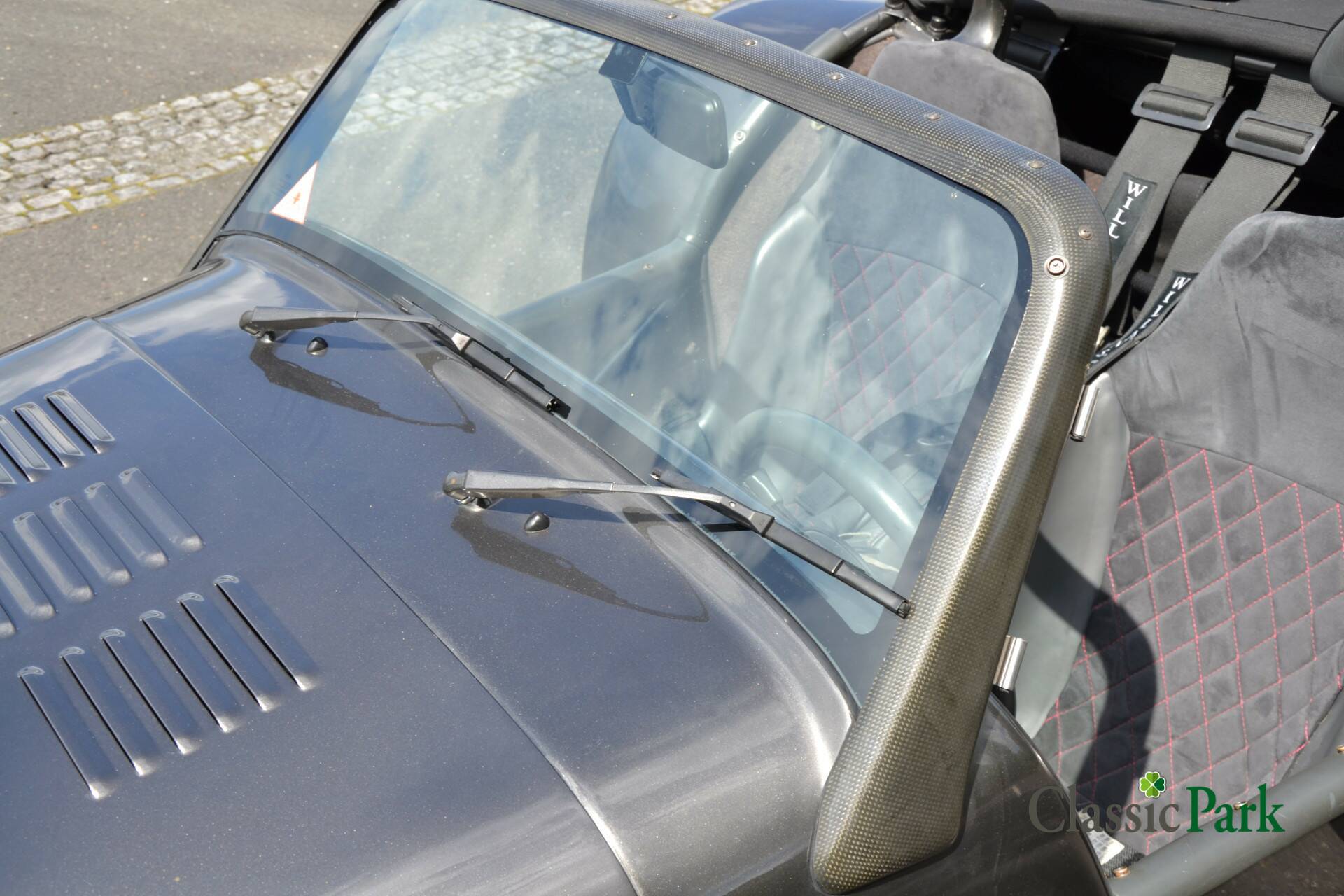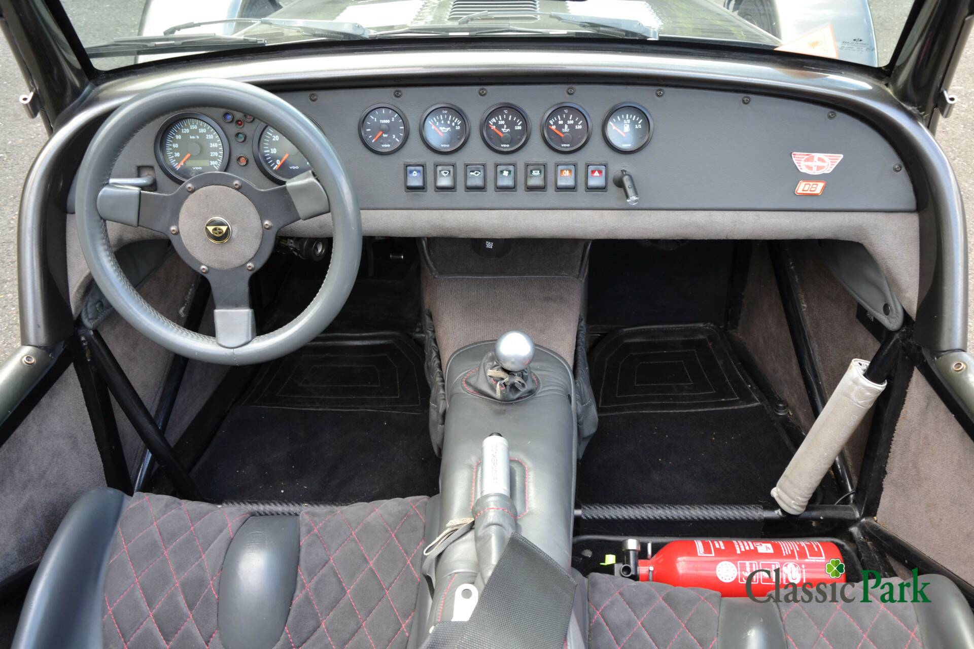 Der Donkervoort D8 ist ein Auto, das in erster Linie für Fahrbegeisterte gemacht ist. Schalten, Lenken, alles ist auf Fahrspaß ausgerichtet, der einem serienmäßig ein Lächeln ins Gesicht zaubert. Dazu tragen sicherlich auch die sportliche Leder-/Alcantara-Ausstattung und die Willans-Gürte bei. Dieser D8 ist durchschnittlich weniger als 2.000 Kilometer pro Jahr gefahren und hat mit 35.124 km auf dem Tacho eine erfreulich niedrige Laufleistung. Das Auto wurde 2001 in Frankreich neu ausgeliefert und hat derzeit ein niederländisches Kennzeichen.