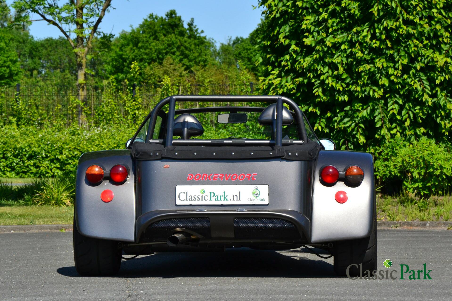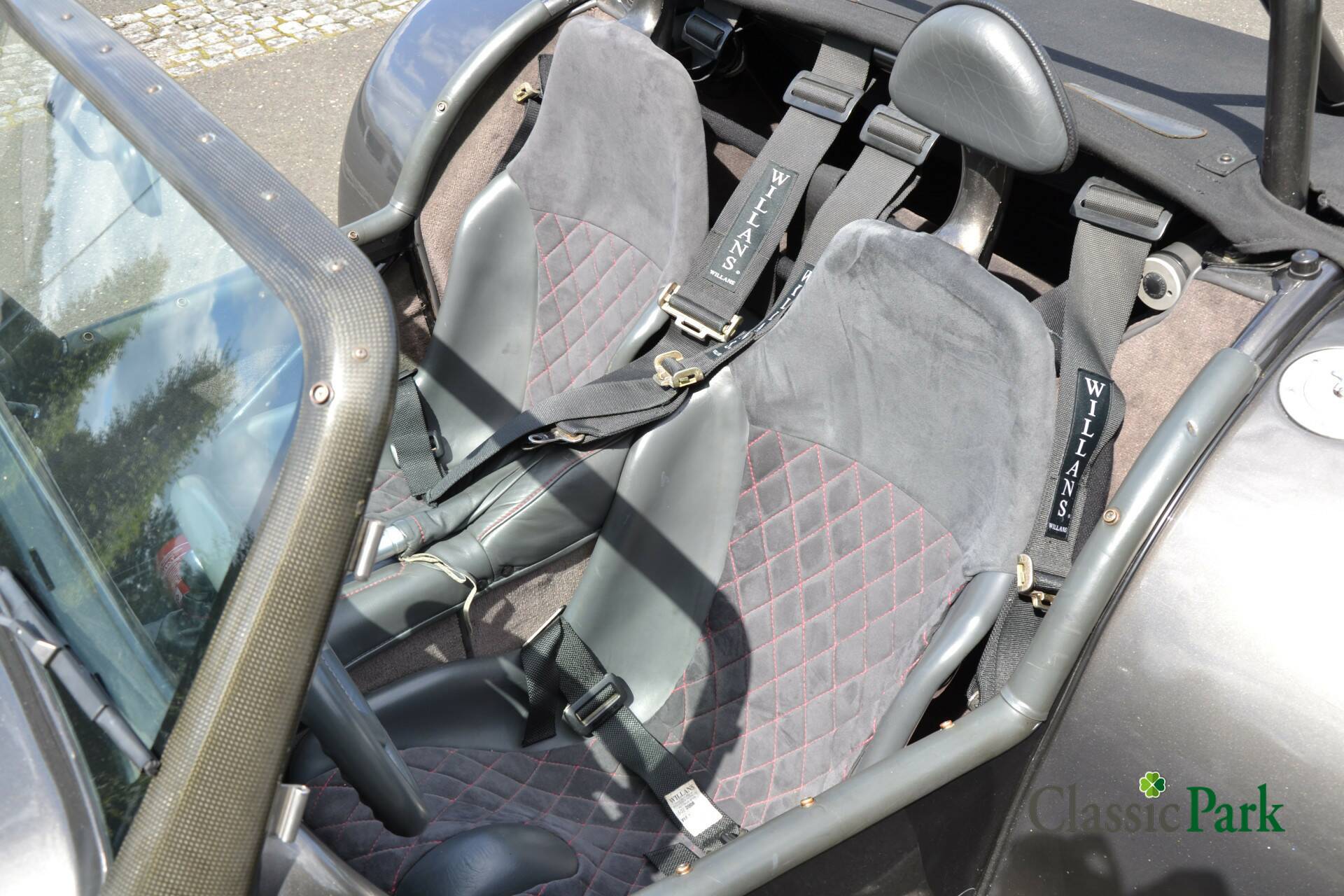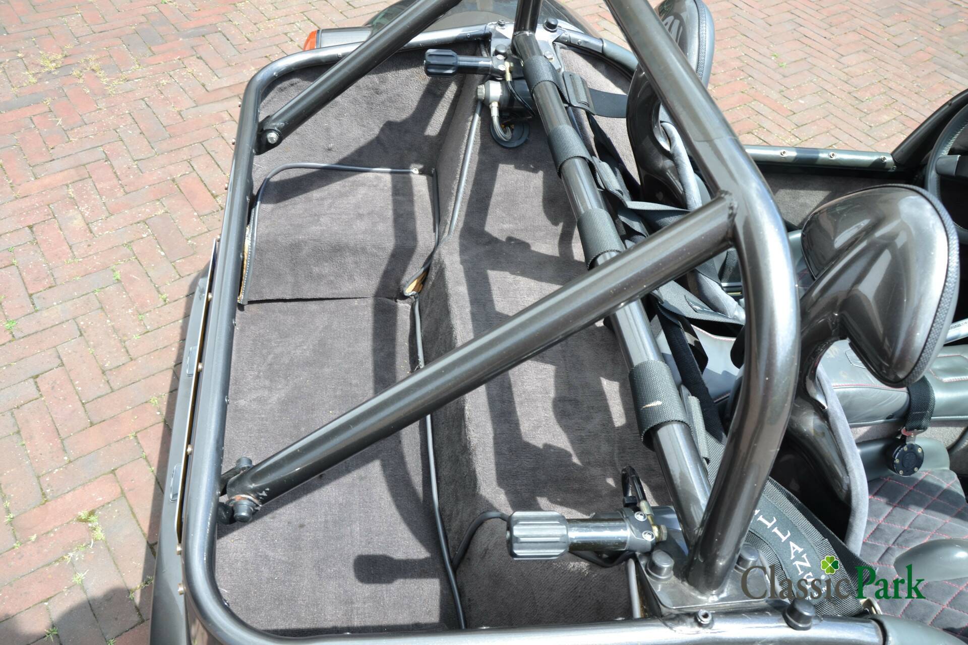 Der Donkervoort D8 ist ein Auto, das in erster Linie für Fahrbegeisterte gemacht ist. Schalten, Lenken, alles ist auf Fahrspaß ausgerichtet, der einem serienmäßig ein Lächeln ins Gesicht zaubert. Dazu tragen sicherlich auch die sportliche Leder-/Alcantara-Ausstattung und die Willans-Gürte bei. Dieser D8 ist durchschnittlich weniger als 2.000 Kilometer pro Jahr gefahren und hat mit 35.124 km auf dem Tacho eine erfreulich niedrige Laufleistung. Das Auto wurde 2001 in Frankreich neu ausgeliefert und hat derzeit ein niederländisches Kennzeichen.