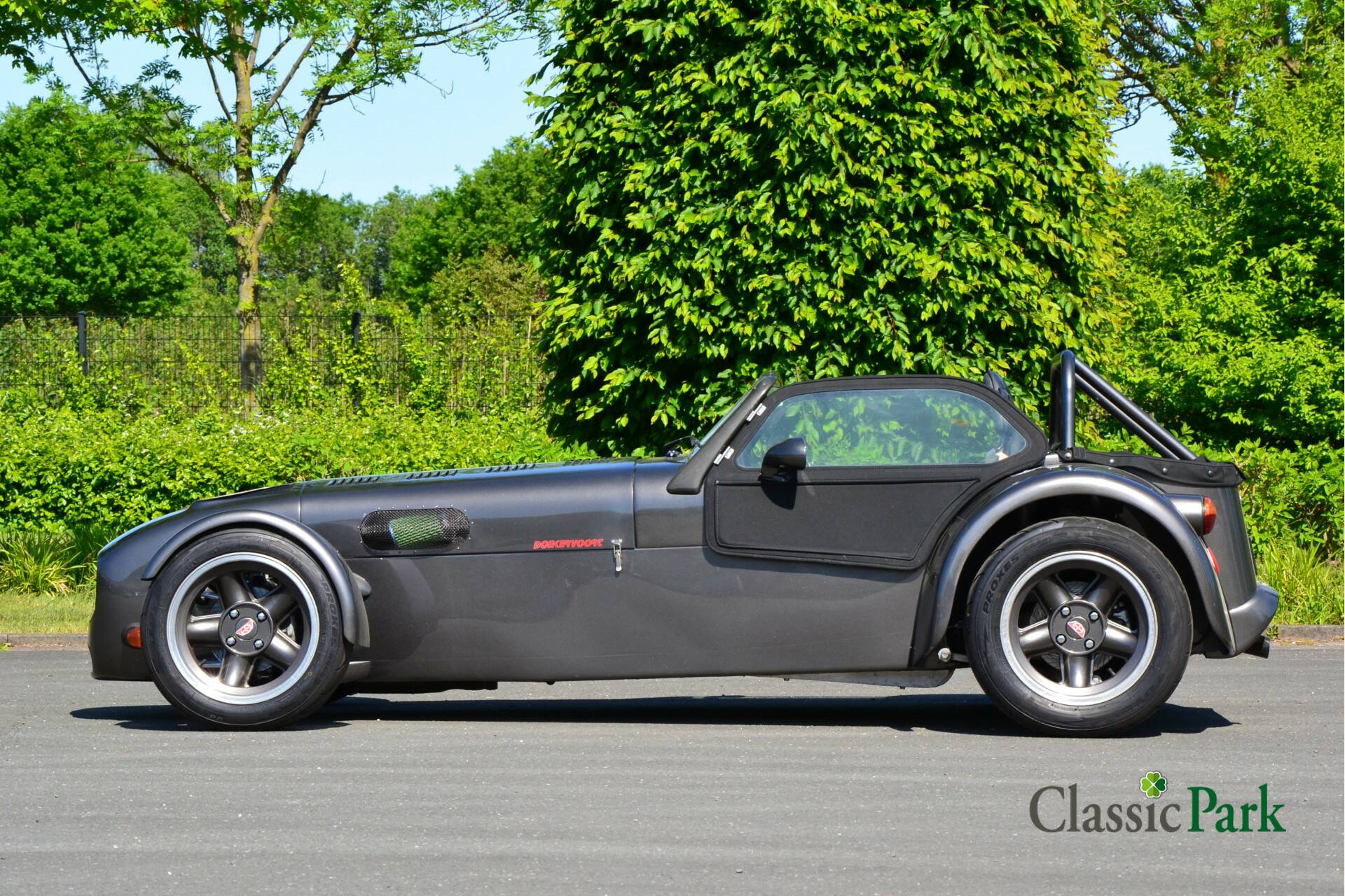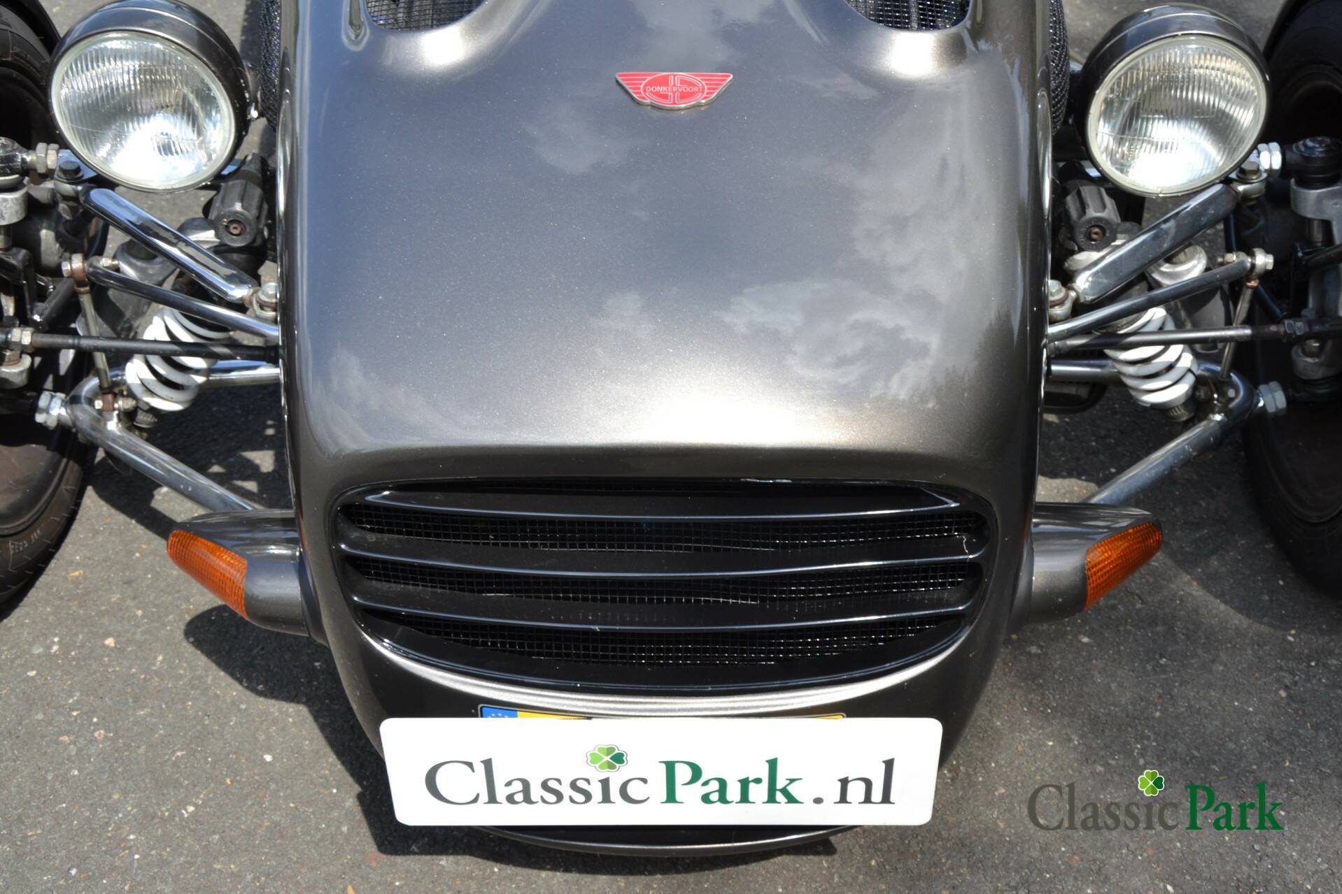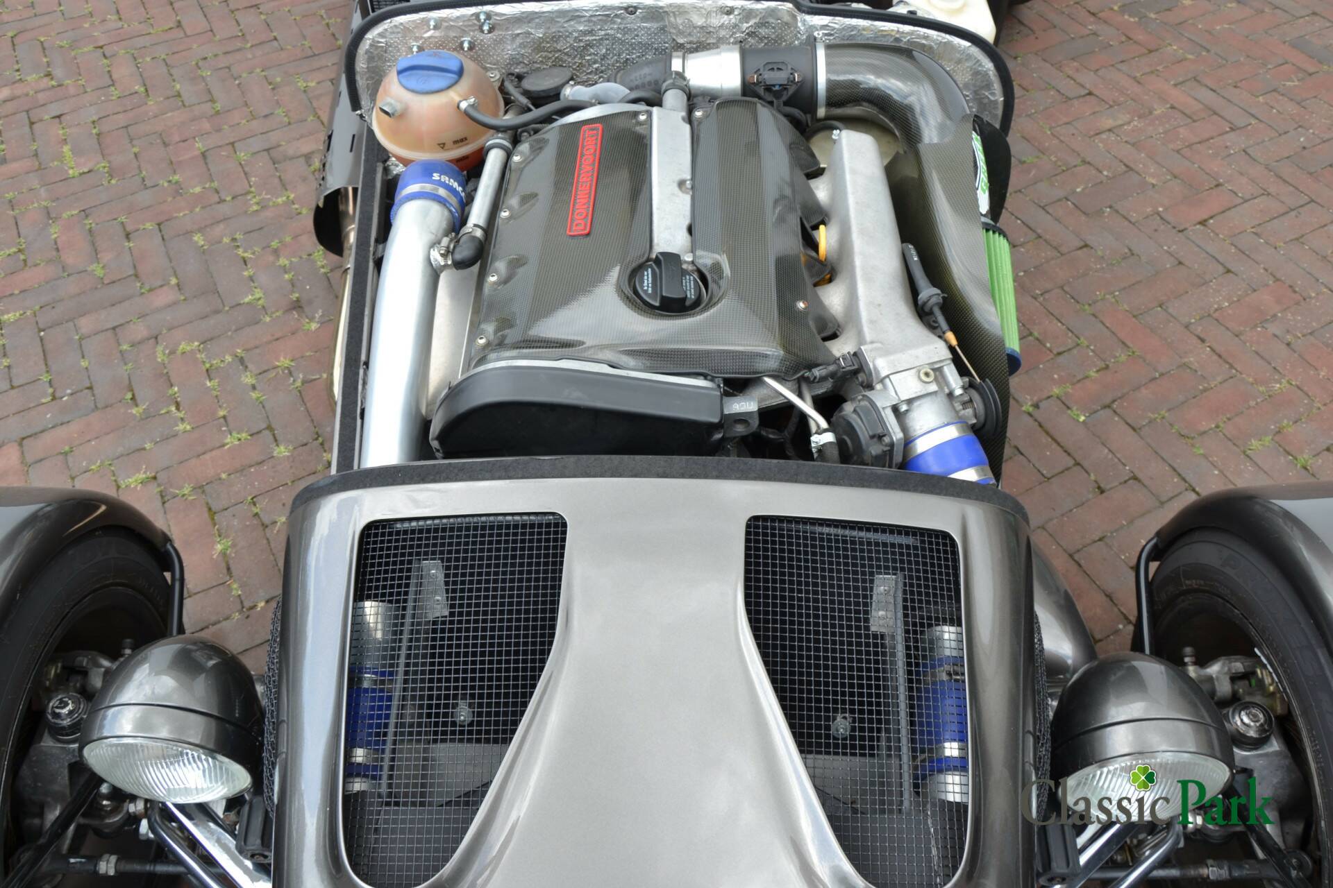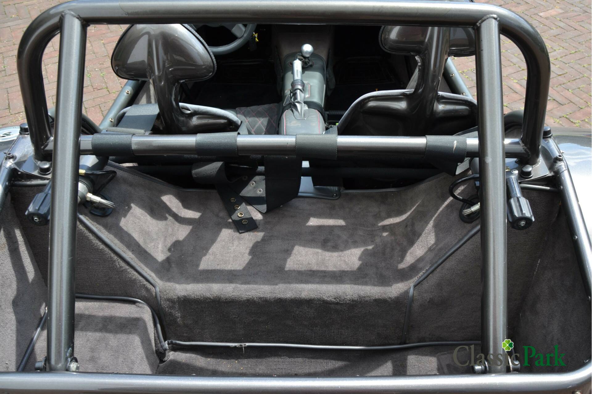 Der Donkervoort D8 ist ein Auto, das in erster Linie für Fahrbegeisterte gemacht ist. Schalten, Lenken, alles ist auf Fahrspaß ausgerichtet, der einem serienmäßig ein Lächeln ins Gesicht zaubert. Dazu tragen sicherlich auch die sportliche Leder-/Alcantara-Ausstattung und die Willans-Gürte bei. Dieser D8 ist durchschnittlich weniger als 2.000 Kilometer pro Jahr gefahren und hat mit 35.124 km auf dem Tacho eine erfreulich niedrige Laufleistung. Das Auto wurde 2001 in Frankreich neu ausgeliefert und hat derzeit ein niederländisches Kennzeichen.