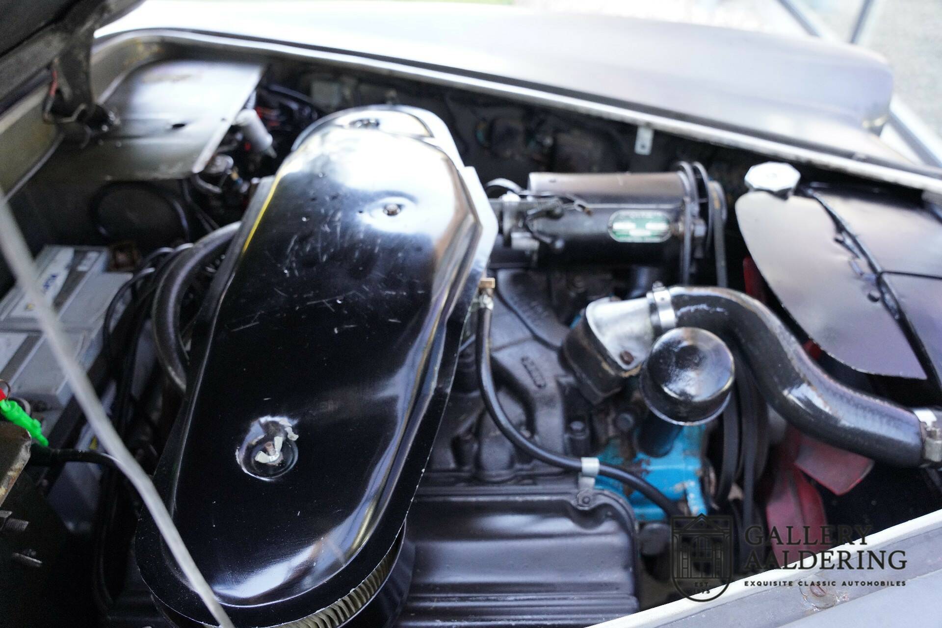 Der Motor von diesem FV3 ist einen gigantischen Chrysler Typhoon V8 mit 6.279 ccm Hubraum und 365 PS, er befindet sich in einem gepflegten Zustand. Optisch natürlich passend zum Rest des Wagens, aber in einem technisch gesunden Zustand. Kein Wunder bei einem Kilometerstand von 76.334, der angesichts der umfangreichen Dokumentation original erscheint. Auch der Unterboden des Facel ist original und robust. Dass das schicke 4-Sitzer-Cabriolet kein allzu schweres Leben hinter sich hat, ist deutlich zu sehen.