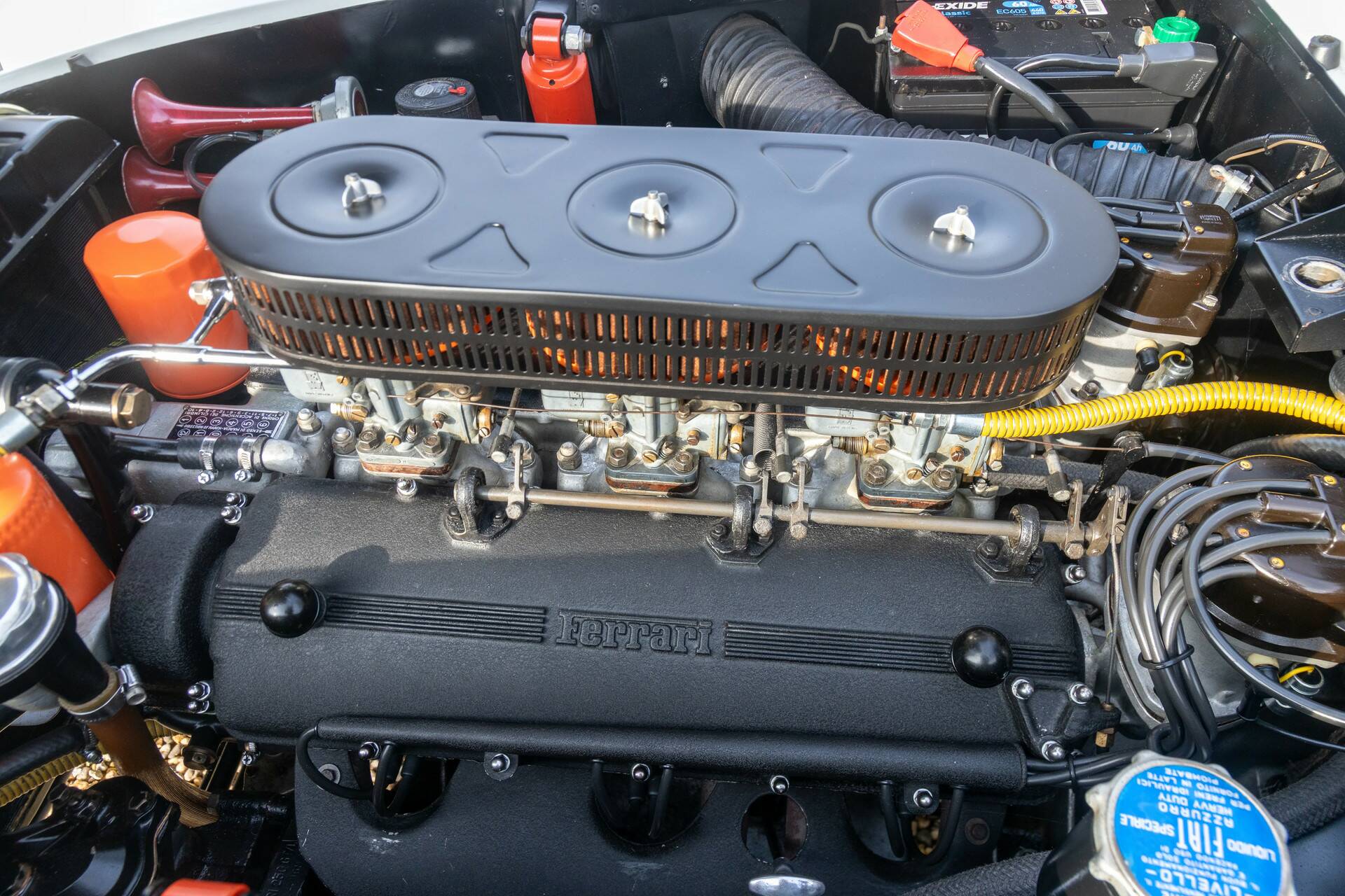 Der Lusso basiert auf dem kurzen Chassis des 250 GT SWB und teilt seine technische Grundlage mit dem legendären GTO. Unter der langen Motorhaube arbeitet Gioacchino Colombos 3,0-Liter-V12 – ein kompakter, vollständig aus Aluminium gefertigter Zwölfzylinder, der seit 1947 kontinuierlich weiterentwickelt wurde und hier rund 240 PS bei 7.500 U/min leistet. Drei doppelte Weber-Vergaser, ein handgeschaltetes Getriebe und eine Höchstgeschwindigkeit von etwa 240 km/h verdeutlichen, wie ernsthaft dieses Automobil konzipiert war – insbesondere im Kontext der frühen 1960er Jahre.