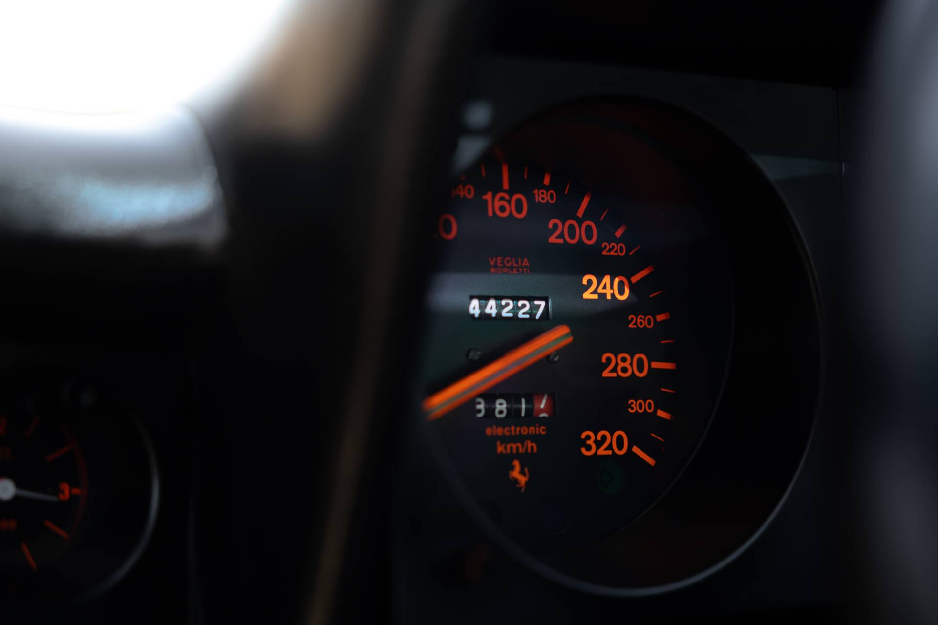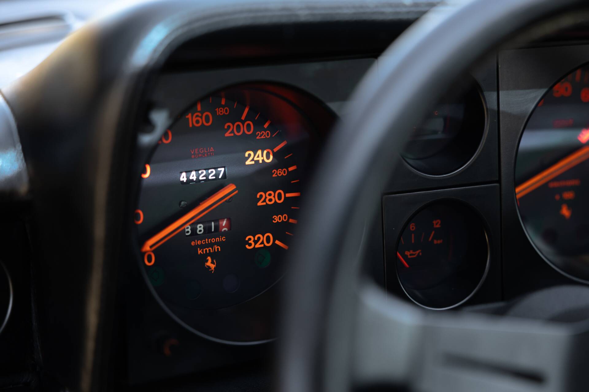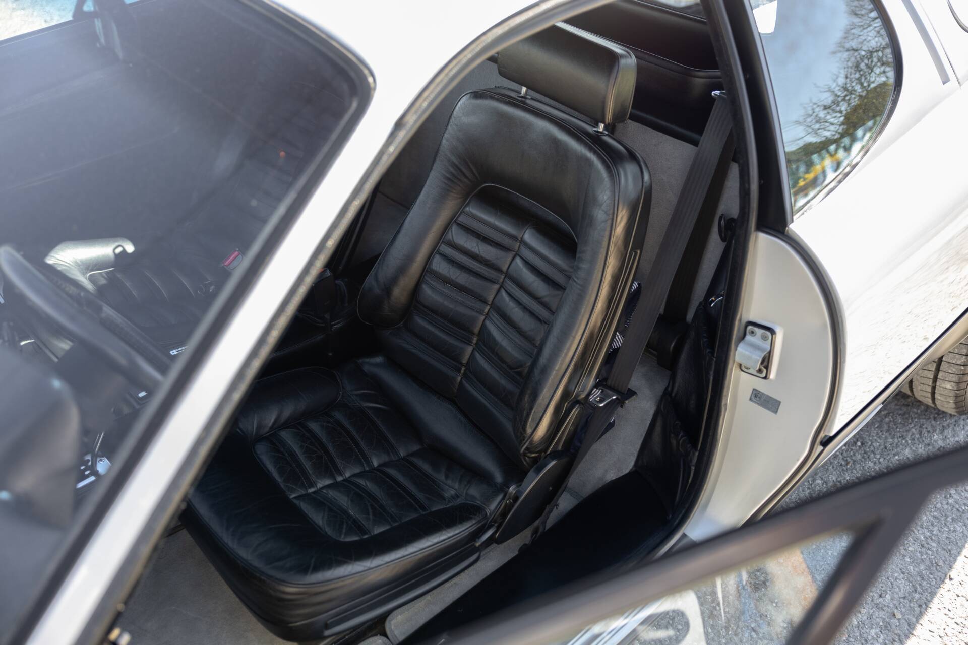 Dans l'habitacle, les sièges en cuir noirs sont très bien conservés. La planche de bord ne présente pas de défauts. Le ciel de toit est bien tendu. Le volant Nardi en cuir noir est très bien préservé. Les instruments de bord sont fonctionnels.