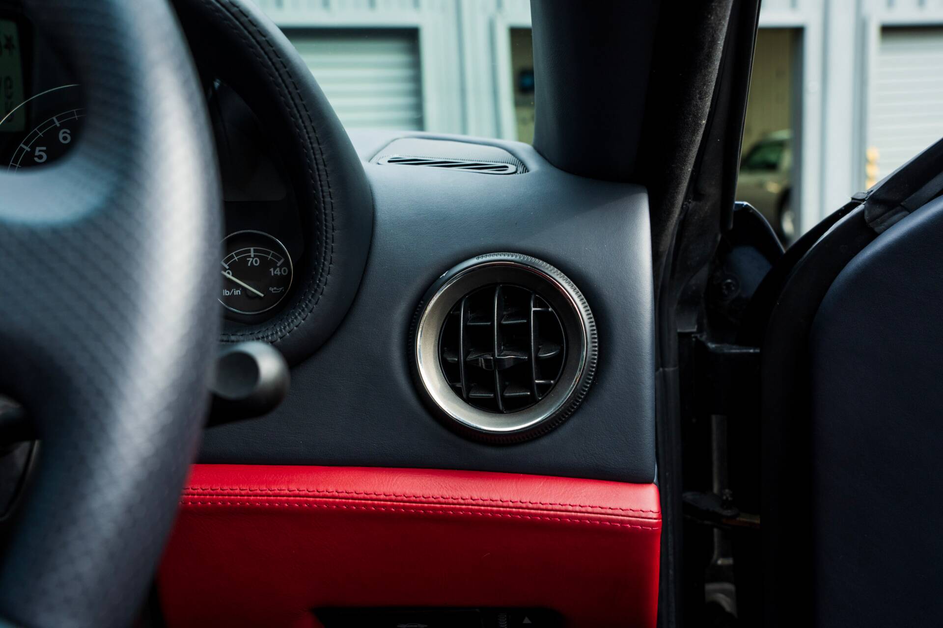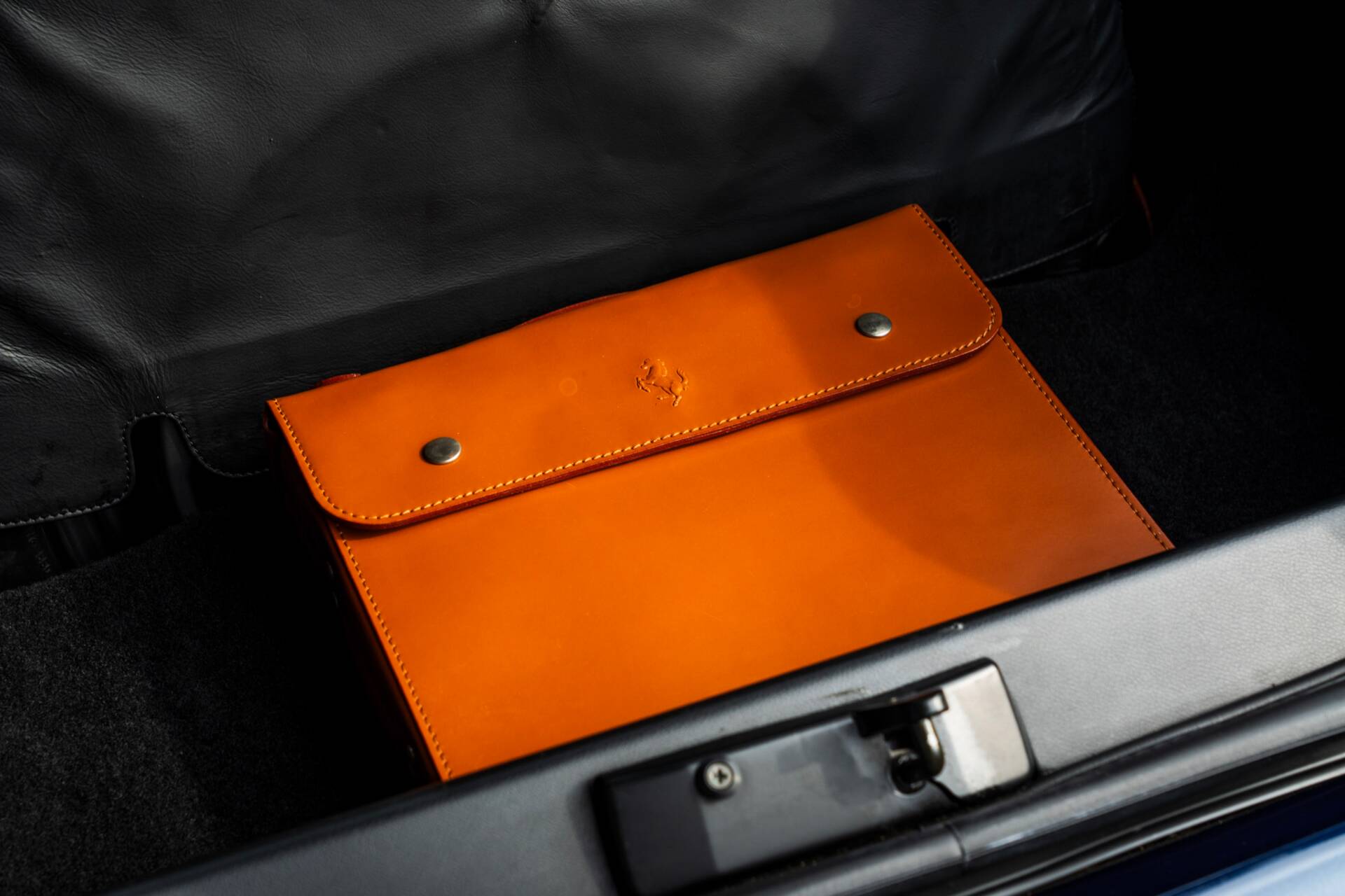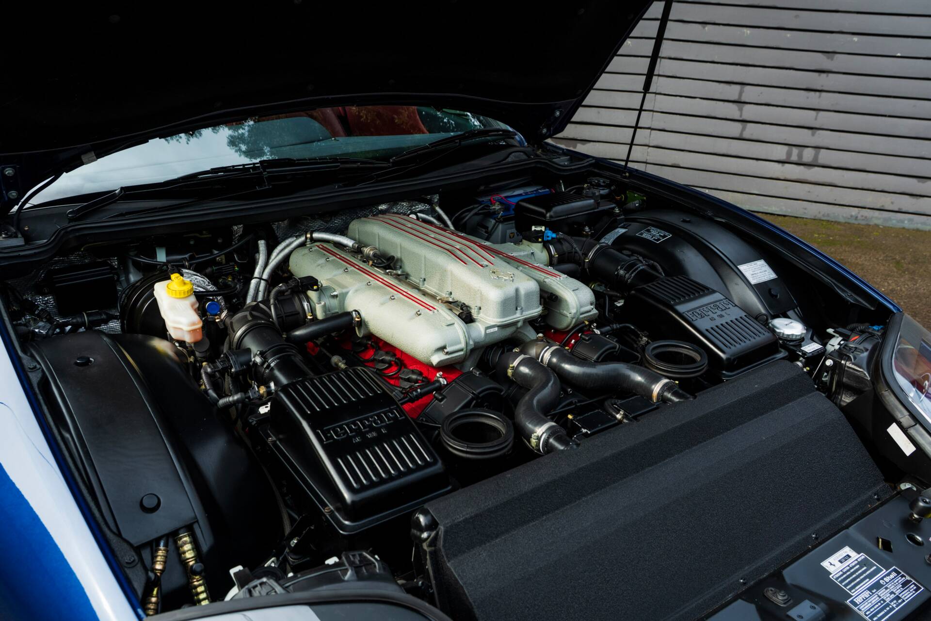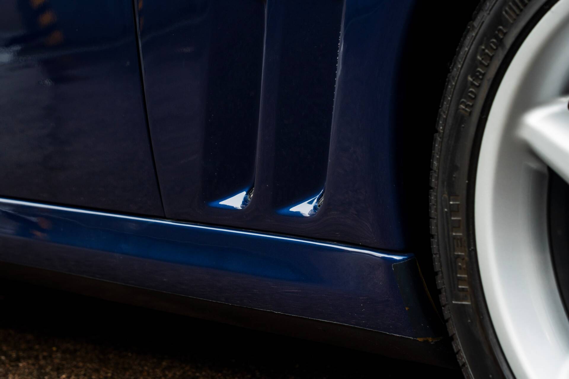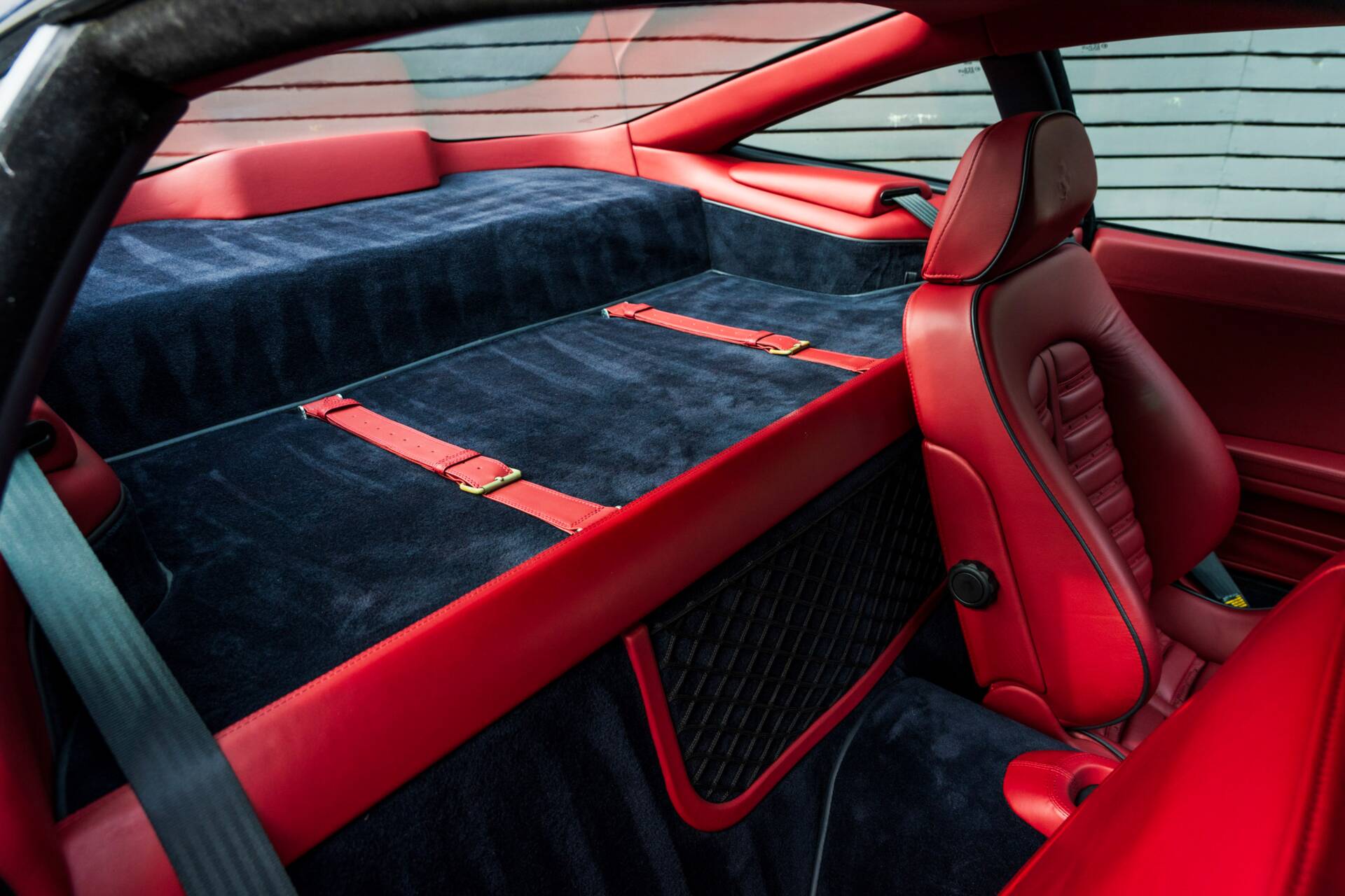 FACTORY SPECIFICATION INCLUDES:- 6-SPEED OPEN-GATE MANUAL GEARBOX, DAYTONA STYLE SPORTS SEATS WITH BLACK PIPING AND CAVALLINO EMBOSSED HEADRESTS, DARK BLUE DASH ROLL, DARK BLUE CARPETTING, NERO DASHBOARD ROLL, AIR CONDITIONING, ELECTRIC WINDOWS, REMOTE ALARM LOCKING, ASR, BLACK BRAKE CALIPERS, 18” ALLOY WHEELS, ALUMINIUM PEDAL SET, AND FERRARI STEREO RADIO.