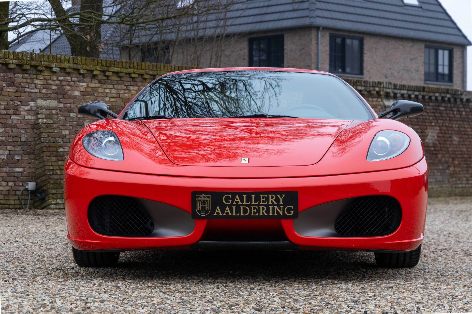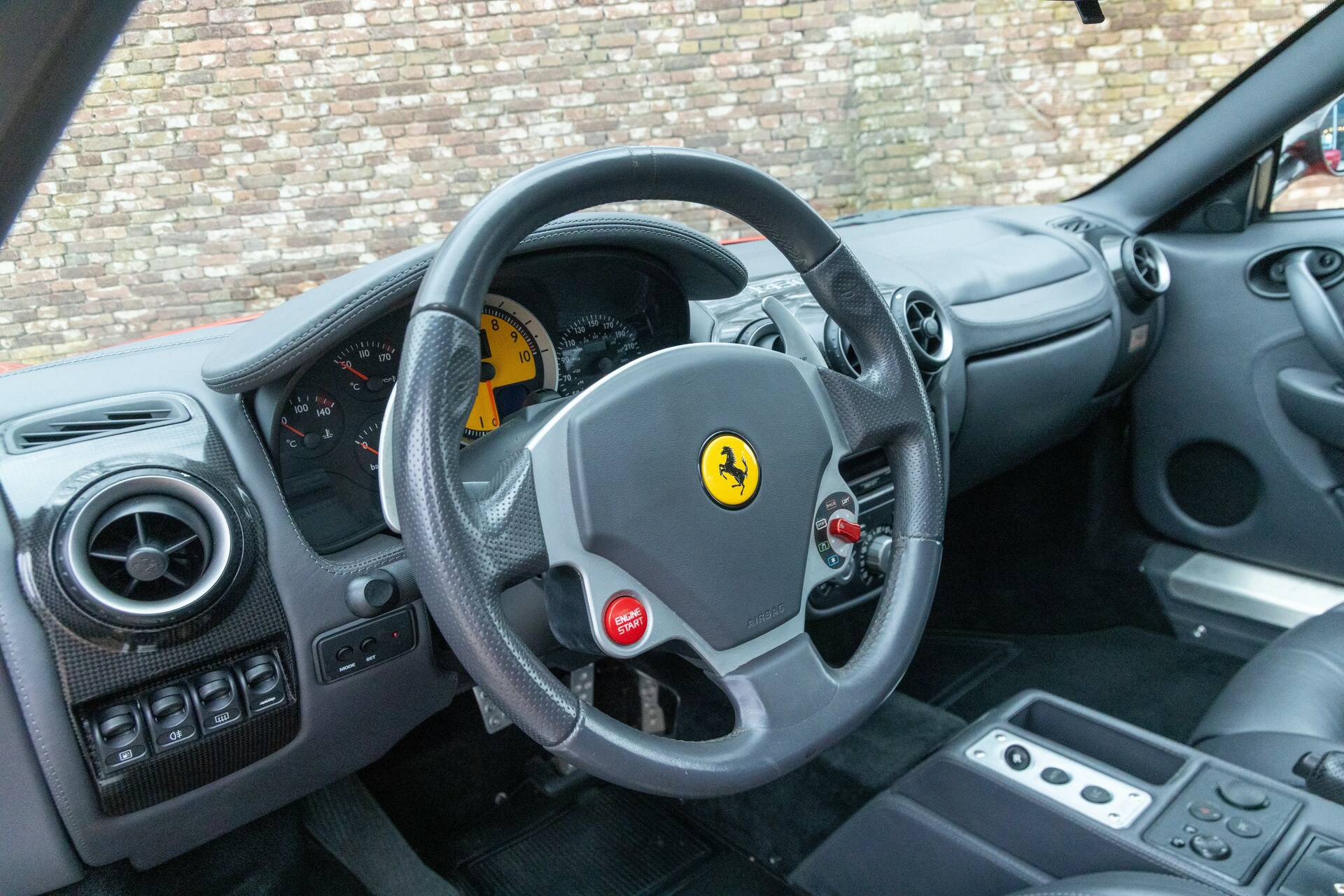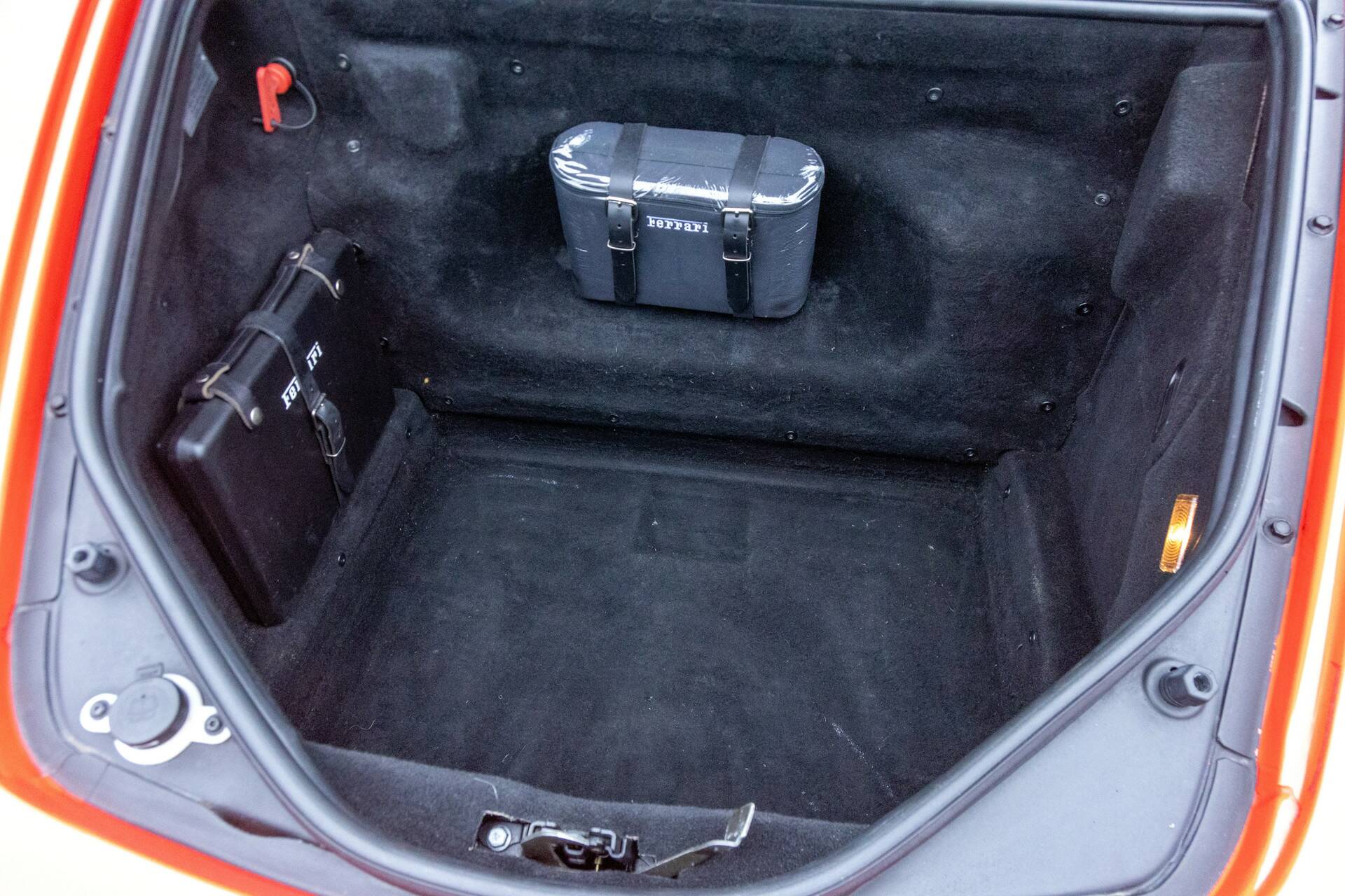 Dieser Ferrari wurde über Ferrari Pozzi bestellt und neu von Ferrari de Salamanca in Málaga ausgeliefert. Ein korrektes europäisches Fahrzeug mit entsprechender Dokumentation. Die originalen Unterlagen befinden sich noch immer in der Schedoni Ledertasche. Der Erstbesitzer entschied sich für Rosso Scuderia als Außenfarbe. Ein leuchtenderes, stärker am Motorsport orientiertes Rot als das klassische Rosso Corsa. In Kombination mit dem grauen Lederinterieur entsteht ein besonders frischer Gesamteindruck. Kein Schwarz. Kein Beige. Stattdessen graues Leder mit Carbon Einlagen im Armaturenbrett. Der Drehzahlmesser besitzt einen gelben Hintergrund, genau so, wie es sich für einen Ferrari gehört. Die Scuderia Embleme zieren die vorderen Kotflügel. Die Bremssättel sind in Rosso Corsa ausgeführt. Details, die zusammen das Gesamtbild vervollständigen.