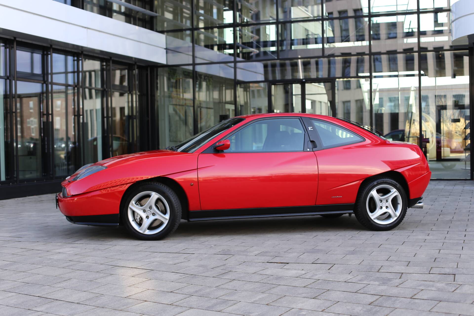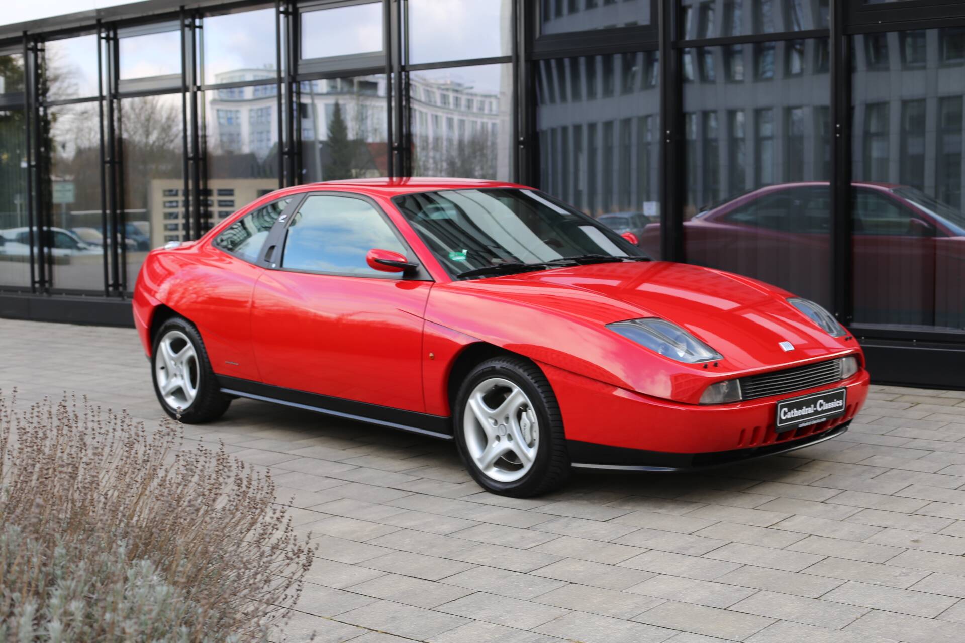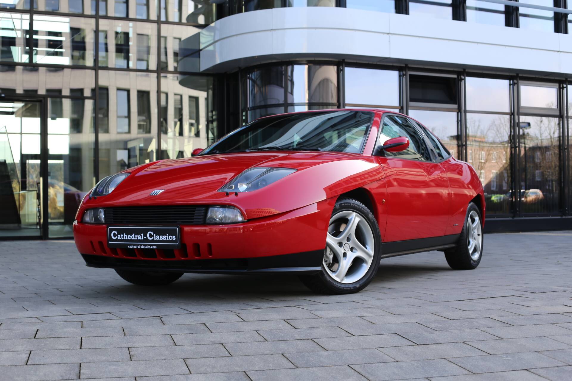 Der Fiat Coupé (Typ 175) ist ein Fahrzeug, das von Fiat zwischen 1993 und 2000 hergestellt wurde. Das zweisitzige Coupé mit vier Sitzen wurde im Dezember 1993 auf der Messe Bologna Motor Show vorgestellt und verfügt über ein Außendesign von Chris Bangle vom Centro Stile Fiat sowie ein Innendesign von Pininfarina. Das Auto erhielt zahlreiche Auszeichnungen für sein mutiges und radikales Styling, jedoch ist anzumerken, dass nicht alle seiner begeisterten Besitzer die wählerischsten waren. Folglich ist es recht selten, ein makellos erhaltenes Exemplar mit nur einem Vorbesitzer wie diesem zu finden. Erstmalig im Mai 1997 auf den anspruchsvollsten deutschen Besitzer zugelassen, der leider kürzlich verstorben ist, zeugt das Auto tatsächlich von ihm. Der passende rote Lack (Farbcodes 168) hat im Laufe der letzten Jahre einige Nachbesserungen erhalten, die jedoch selbstverständlich schön im beeindruckenden Eigentümerdossier des Fahrzeugs dokumentiert sind. Es handelt sich um ein großartiges Paket für jeden neuen Besitzer, der sich über das zusätzliche Set von Alufelgen mit Winterreifen freuen wird.