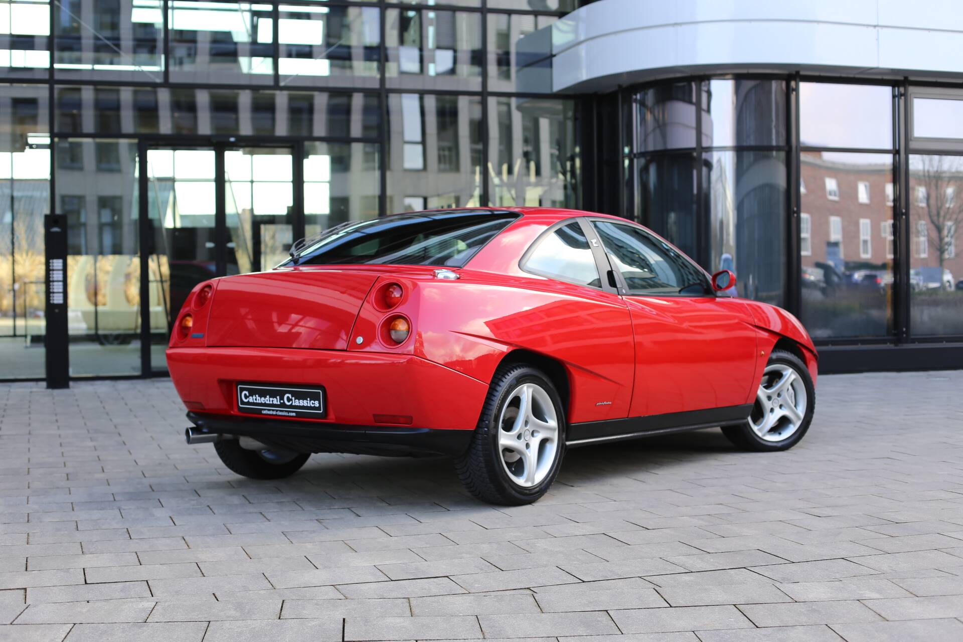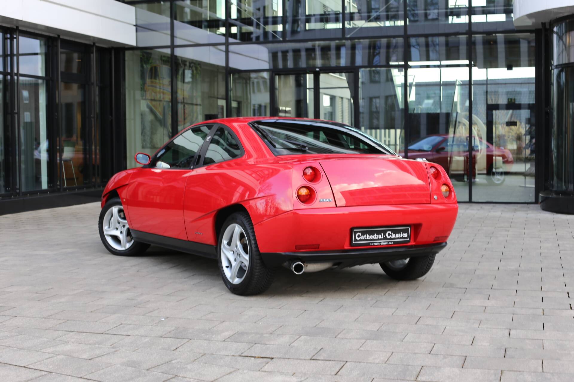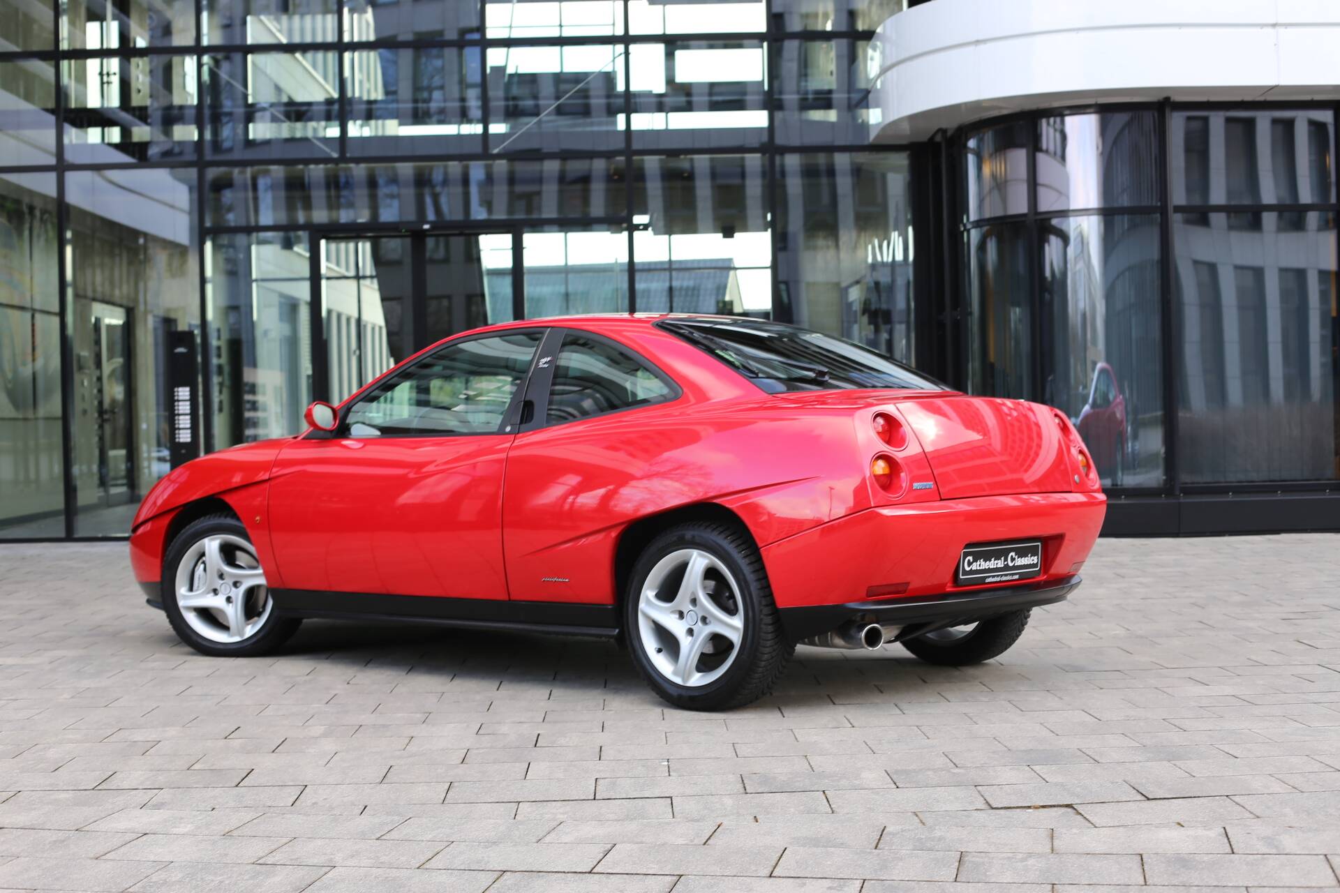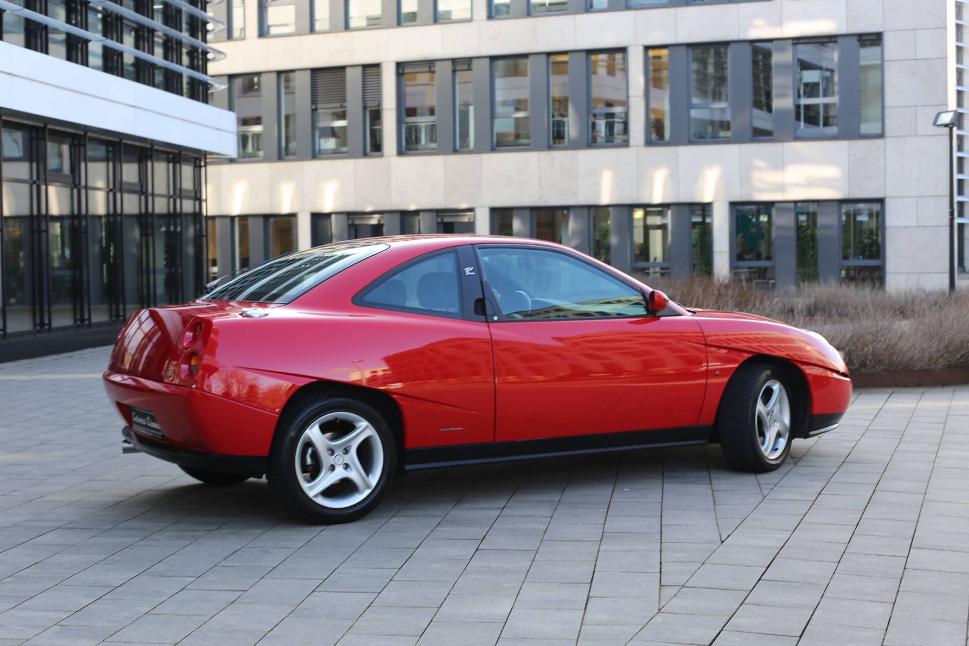 Der Fiat Coupé (Typ 175) ist ein Fahrzeug, das von Fiat zwischen 1993 und 2000 hergestellt wurde. Das zweisitzige Coupé mit vier Sitzen wurde im Dezember 1993 auf der Messe Bologna Motor Show vorgestellt und verfügt über ein Außendesign von Chris Bangle vom Centro Stile Fiat sowie ein Innendesign von Pininfarina. Das Auto erhielt zahlreiche Auszeichnungen für sein mutiges und radikales Styling, jedoch ist anzumerken, dass nicht alle seiner begeisterten Besitzer die wählerischsten waren. Folglich ist es recht selten, ein makellos erhaltenes Exemplar mit nur einem Vorbesitzer wie diesem zu finden. Erstmalig im Mai 1997 auf den anspruchsvollsten deutschen Besitzer zugelassen, der leider kürzlich verstorben ist, zeugt das Auto tatsächlich von ihm. Der passende rote Lack (Farbcodes 168) hat im Laufe der letzten Jahre einige Nachbesserungen erhalten, die jedoch selbstverständlich schön im beeindruckenden Eigentümerdossier des Fahrzeugs dokumentiert sind. Es handelt sich um ein großartiges Paket für jeden neuen Besitzer, der sich über das zusätzliche Set von Alufelgen mit Winterreifen freuen wird.