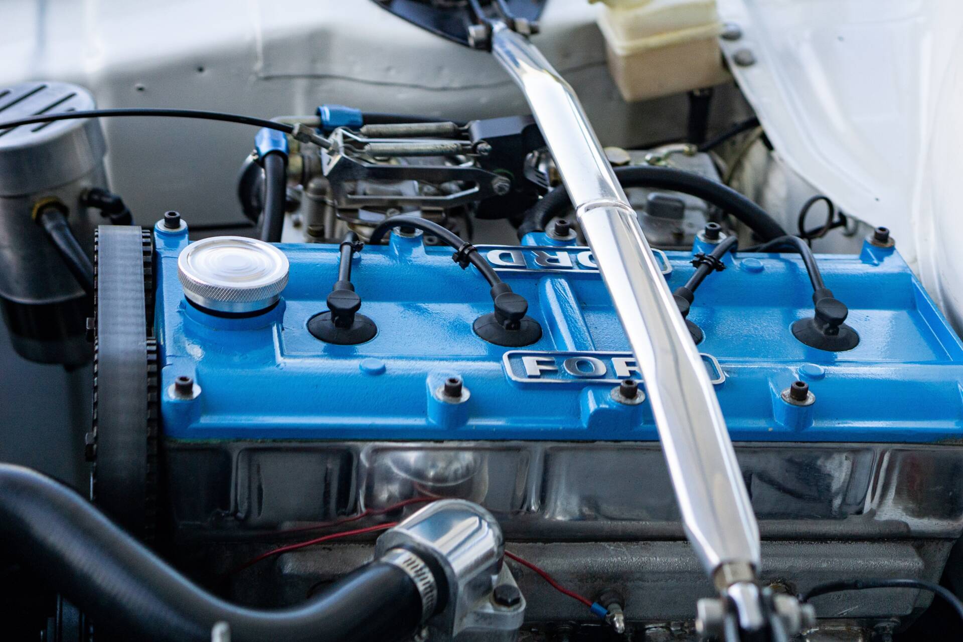 The particular example was completely restored by our vendor's uncle in South Africa, who wanted to build something as close as he could to an RS1600, so the original engine was swapped for a beautiful 1600cc BDA engine, this specific BDA looks like a piece of jewellery in the engine bay. The engine is comprised of an AX block, steel crank, Cosworth rods and pistons, a pair of Weber 40 side draught carburettors with custom ram tubes, electronic ignition and a custom 4-2-1 ceramic coated manifold. Power is transferred through a Type 9 five-speed gearbox and the original BorgWarner differential. This Escort has been restored to a very impressive standard, the paintwork and brightwork gleam and the interior has been trimmed to a good standard, with the addition of some period bucket seats. This Escort looks like great value, especially considering the engine alone would likely cost in the region of £20,000 to replicate! Consigned by Fraser Smith