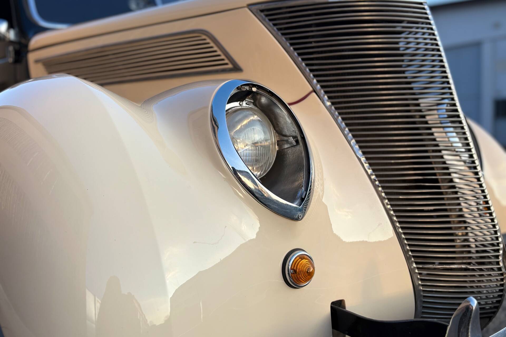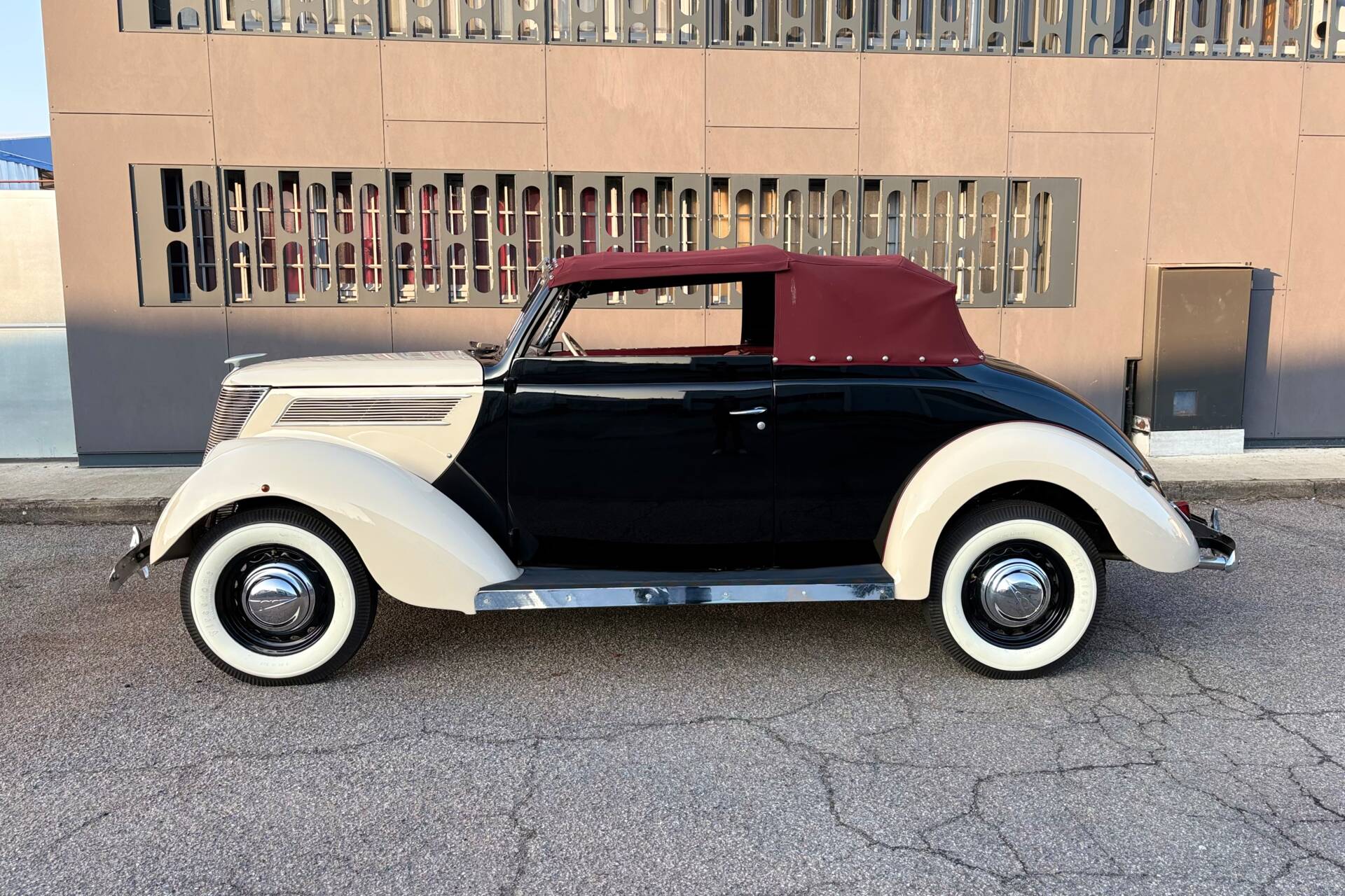Equipaggiata con un motore V8 Flathead da 3.622 cm³, questa vettura erogava una potenza di 85 CV a 3.800 giri/minuto, garantendo una guida dinamica per l’epoca. Il motore presentava una distribuzione a valvole laterali azionate da un albero a camme centrale e un carburatore monocorpo, offrendo una coppia elevata sin dai bassi regimi e un’elasticità di marcia notevole. Il cambio manuale a 3 marce permetteva una velocità massima leggermente superiore ai 120 km/h. Il design del 1937 introdusse fari integrati nei parafanghi anteriori e una griglia frontale inclinata a forma di “V”, conferendo alla vettura un aspetto moderno e distintivo. La Ford offriva diverse varianti di carrozzeria, tra cui berline, coupé e cabriolet, per soddisfare le diverse esigenze dei clienti.