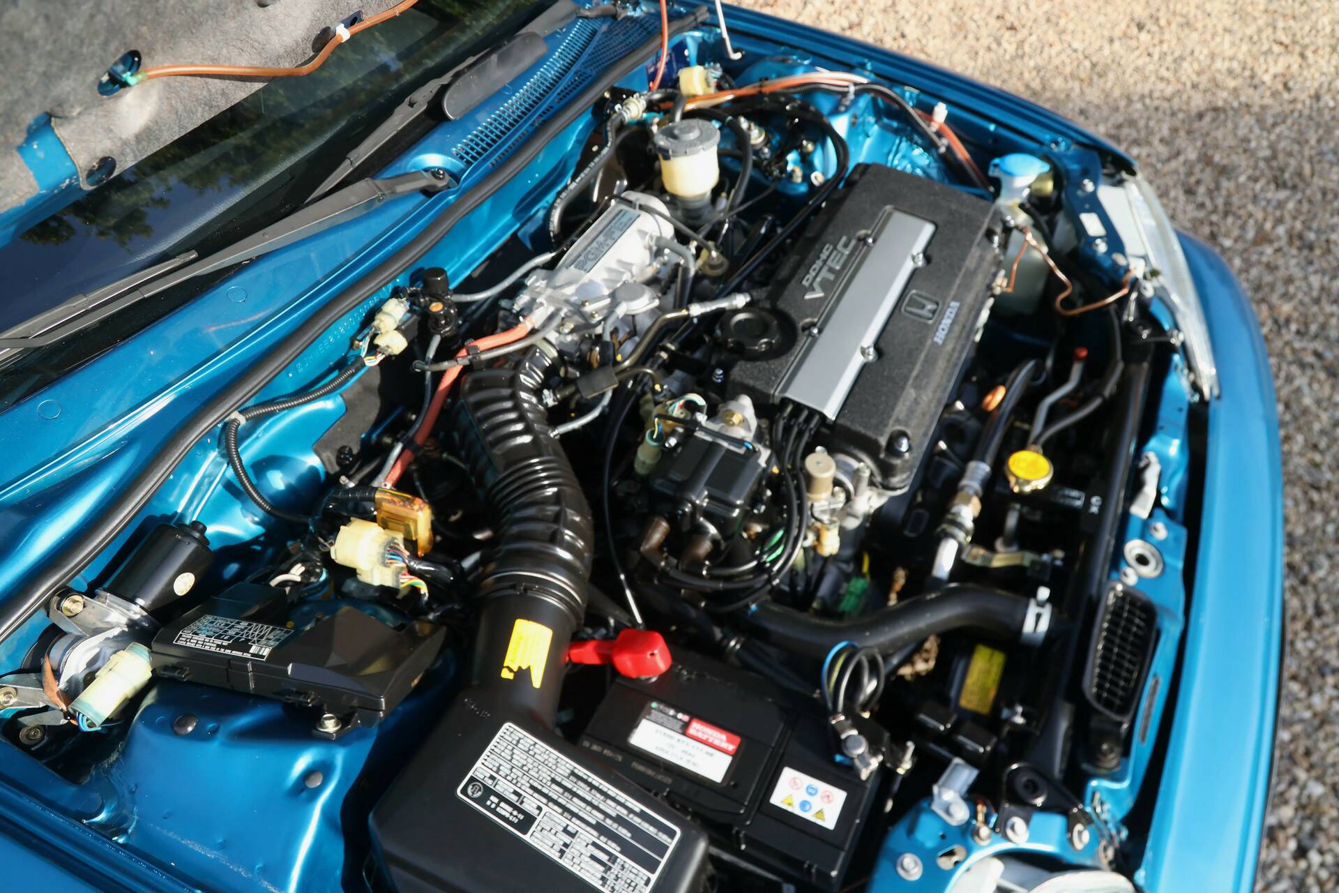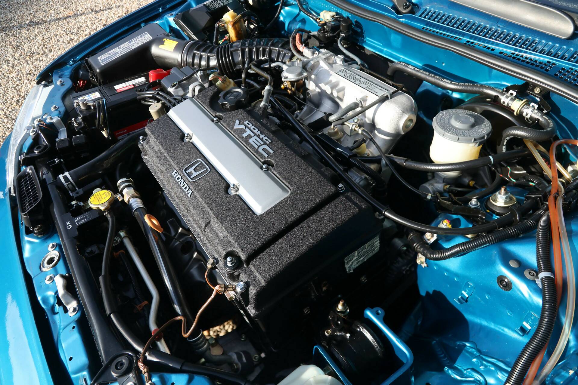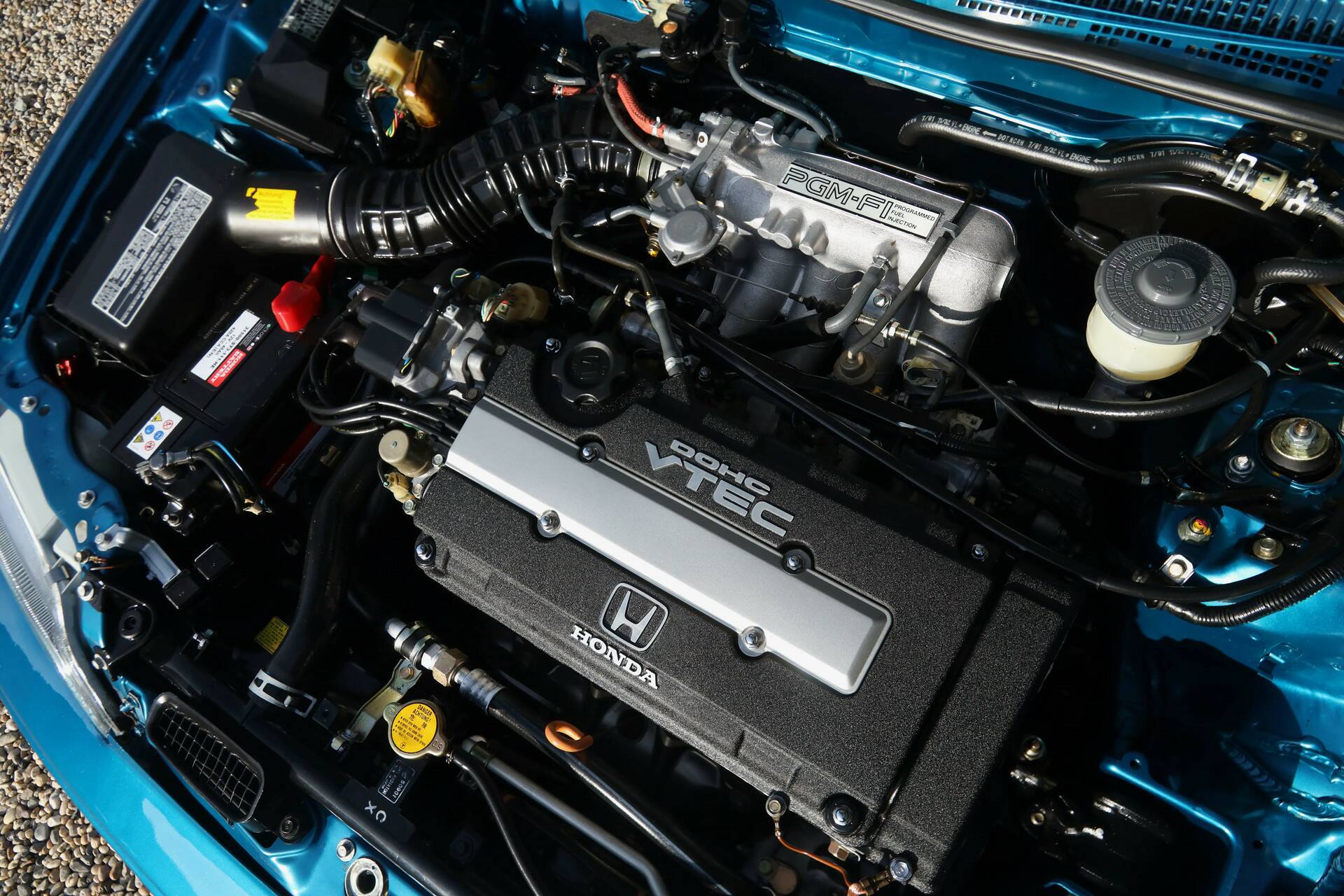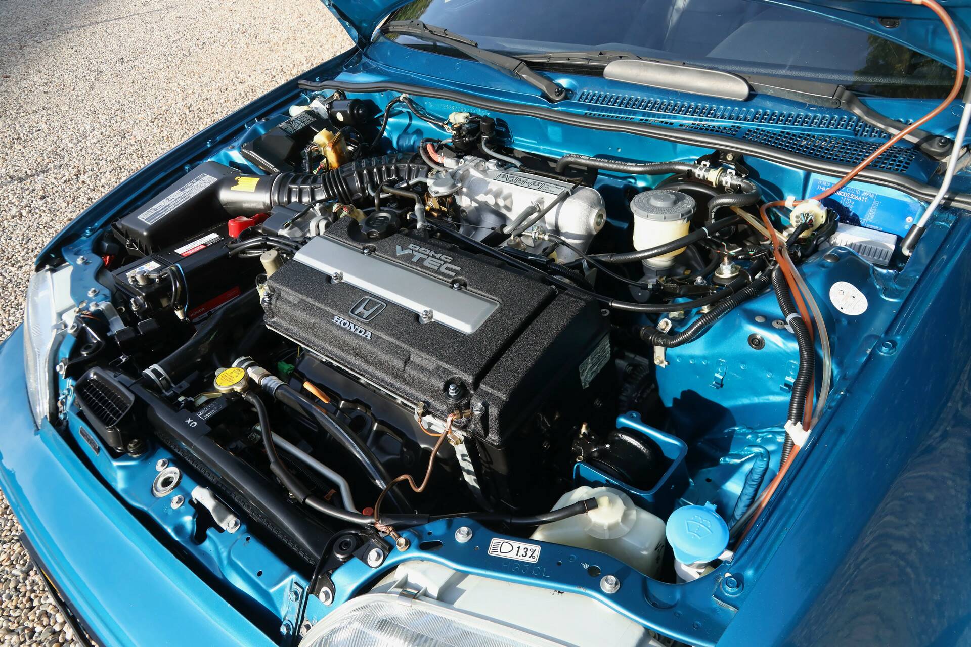 Unter der Motorhaube schlägt das Herz dieses Coupés: der legendäre 1,6-Liter DOHC VTEC-Motor (B16A1). Ein Vierzylinder, der seinerzeit als revolutionär galt. Dank des Variable Valve Timing and Lift Electronic Control (VTEC)-Systems gelang Honda das schier Unmögliche: ein Motor, der bei niedrigen Drehzahlen geschmeidig und effizient blieb, aber bei hohen Drehzahlen zu explosiver Kraft erwachte. 150 PS bei 7.600 U/min – 1992 war das eine magische Zahl für einen Saugmotor dieser Größe.