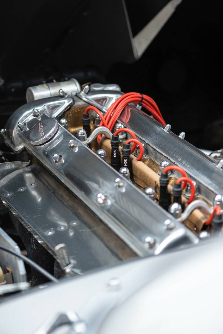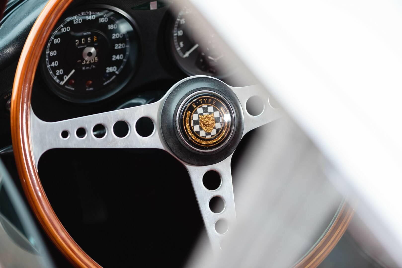 La Type E se distingue par ses quatre roues indépendantes, ses freins à disque, son châssis monocoque, ainsi que par un habitacle raffiné associant volant en bois, tableau de bord en aluminium et sièges baquets. Sa ligne fluide est soulignée par les phares carénés, tandis que le légendaire moteur XK, alimenté par trois carburateurs SU, développe une puissance et des performances exceptionnelles pour l’époque.