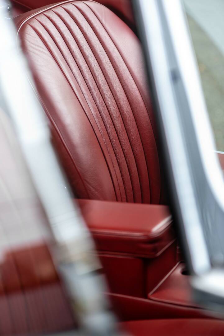Séduits par son authenticité et sa base saine, nous en faisons alors l’acquisition. La voiture bénéficie de plusieurs mois de restauration dans nos ateliers afin de la présenter dans sa configuration actuelle : teinte Silver Grey associée à un intérieur en cuir rouge Cartier.
