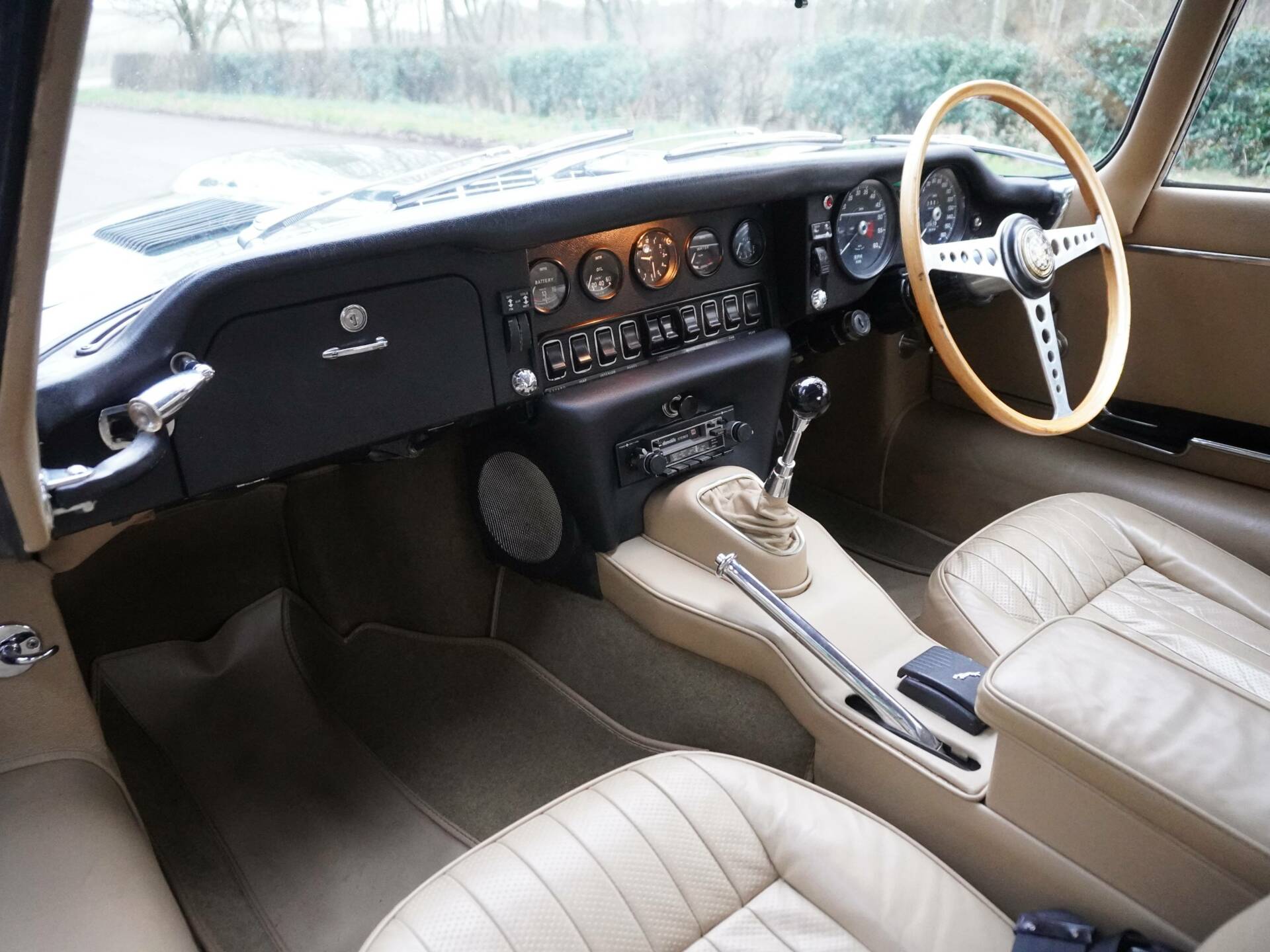 Dispatched on the 19th of November 1969 by Henleys Ltd of London, this superb E-Type headed to its first owner in the Capital finished in British Racing Green with a Beige interior. Having been subject to an older restoration, the E-Type presents smartly with pleasantly aged paintwork that still holds a deep finish. Commensurate of its top-class restoration, this matching numbers E-type boasts a superb drive and is a perfect, reliable car for long distance touring. The restoration work on the E-Type began in 1990 when the bodywork was stripped down, inspected, and corrosion was attended to with new panels and sills. Classic Car Restorations of Norfolk took the body back to bare metal and repainted the car. Along with the body restoration, the engine was fully rebuilt, a new clutch was installed, and the steering and suspension system were rebuilt.