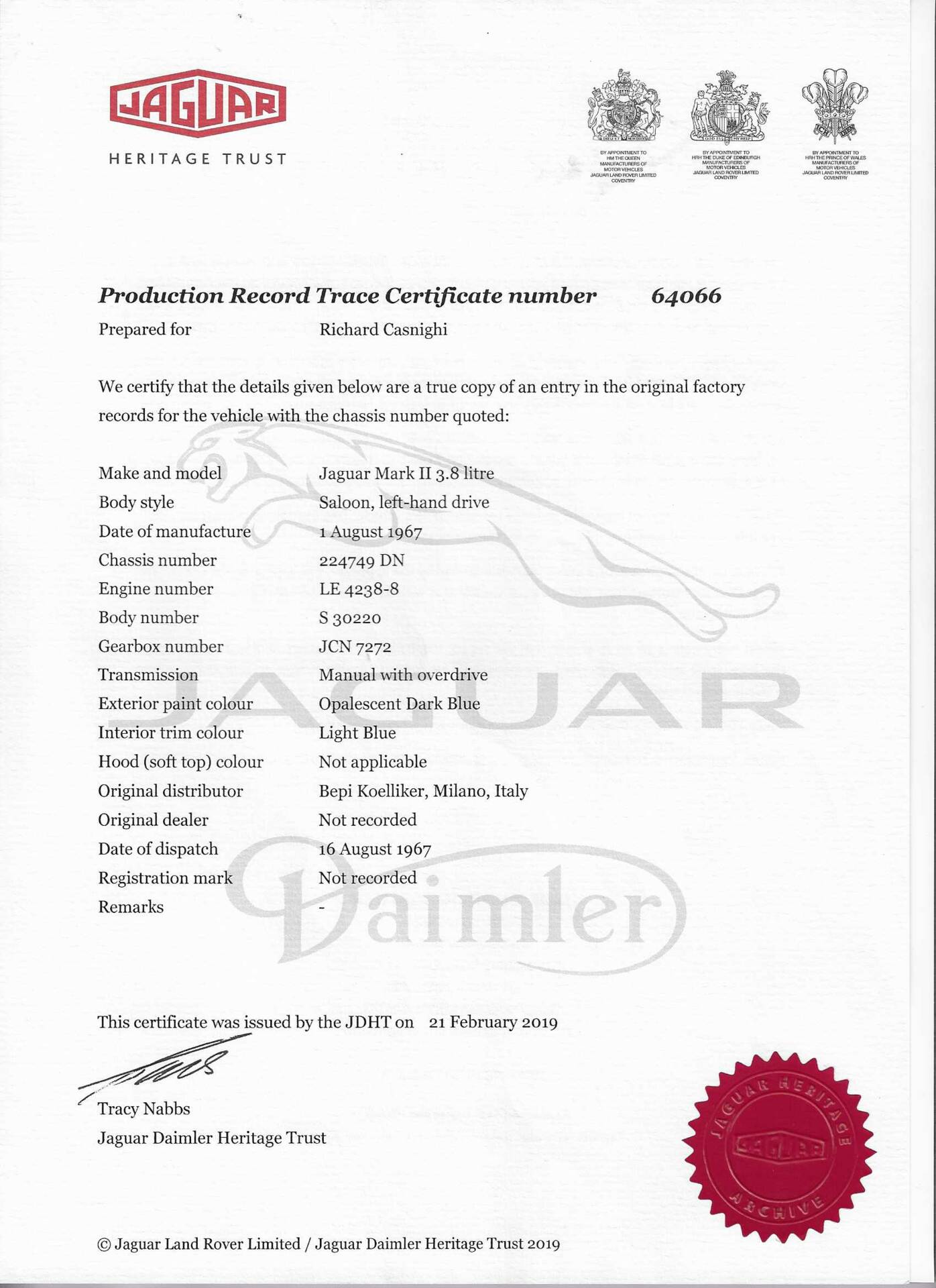 - Jaguar Heritage Trust Certificate