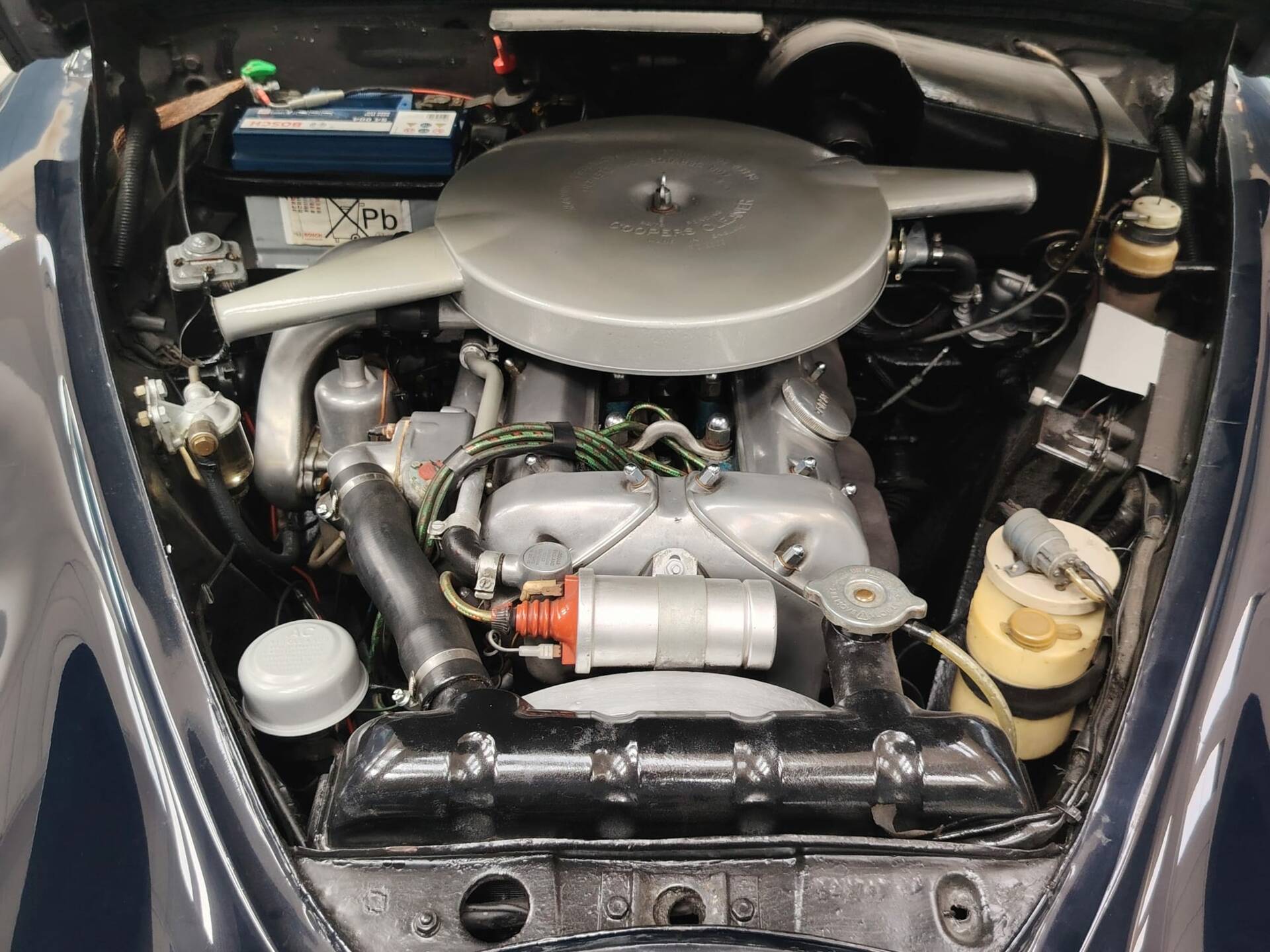 No invasive restoration has ever been carried out: only conservative preservation work was performed to retain authenticity. The oil has always been changed annually using Castrol classic oils, and the coolant system has been upgraded with Evans waterless coolant, which improves temperature control and requires no periodic replacement.