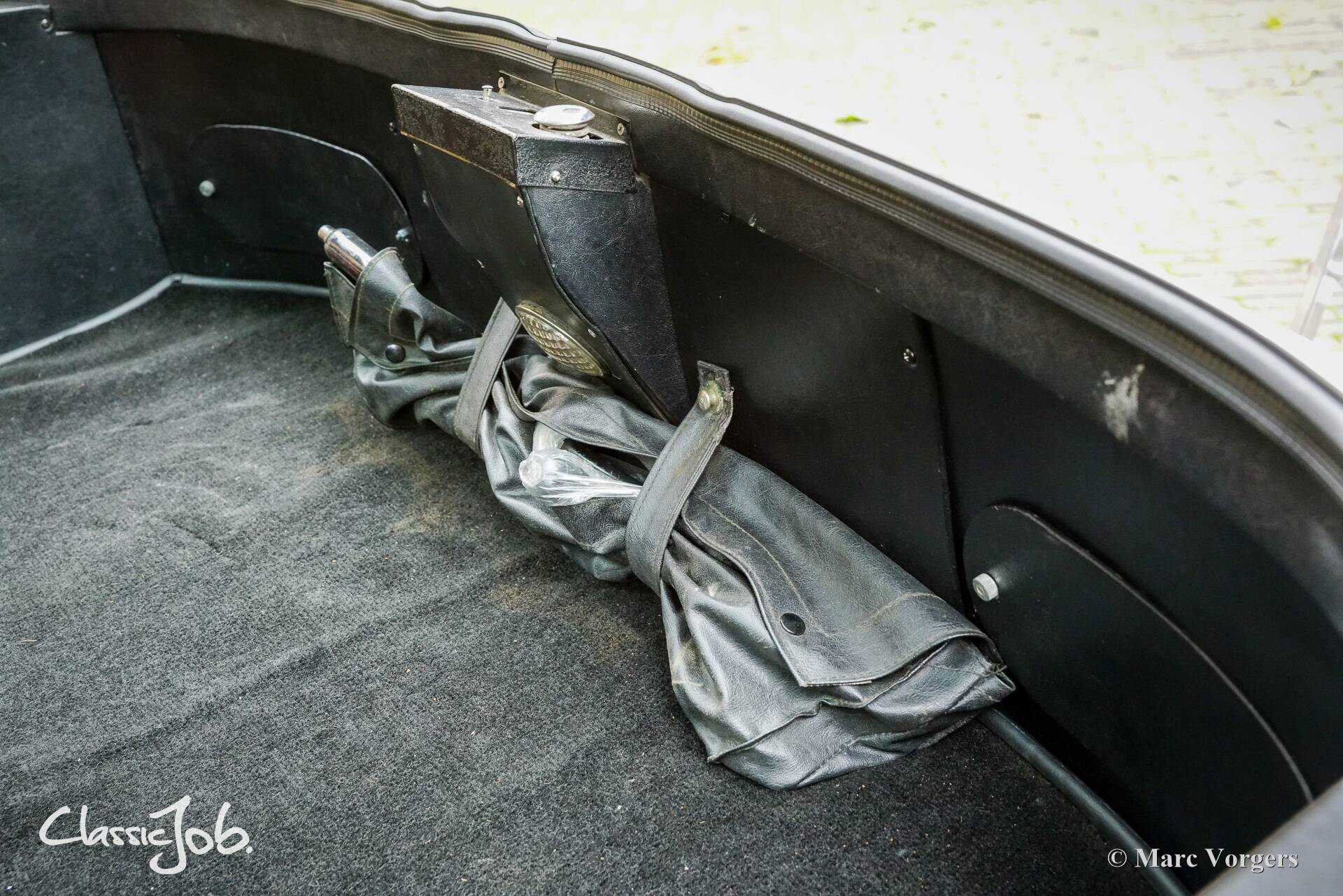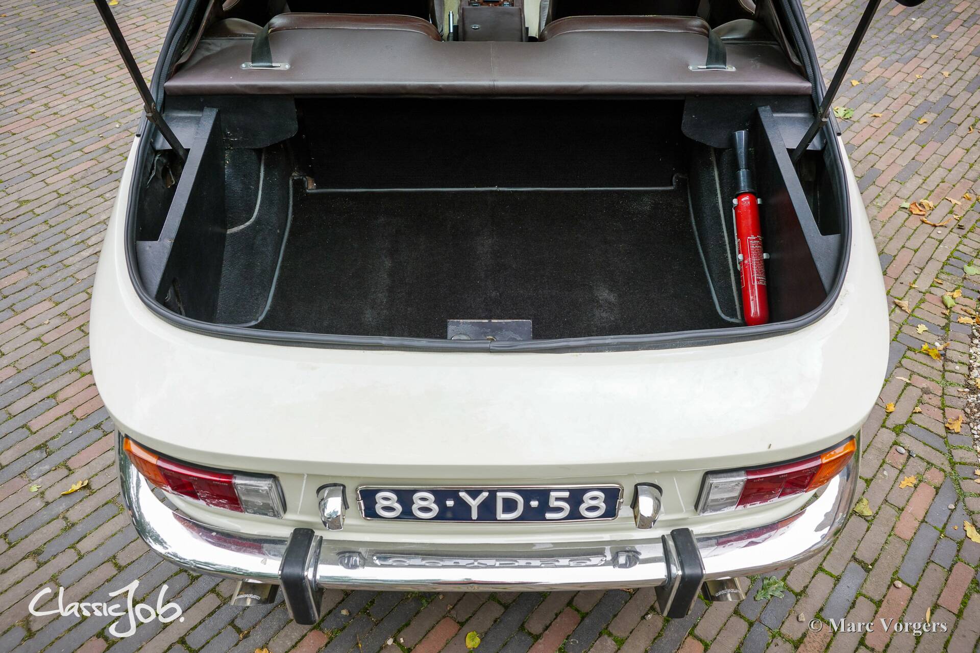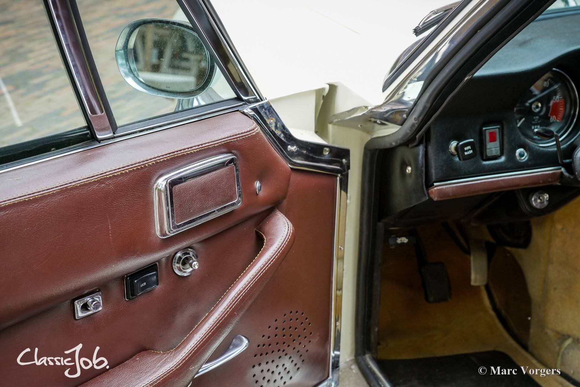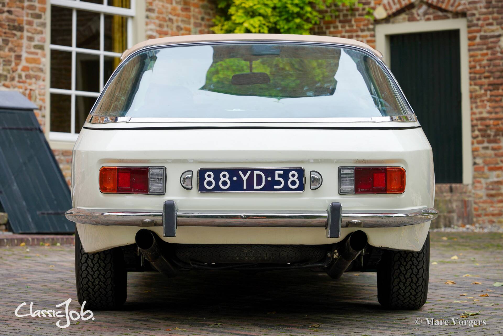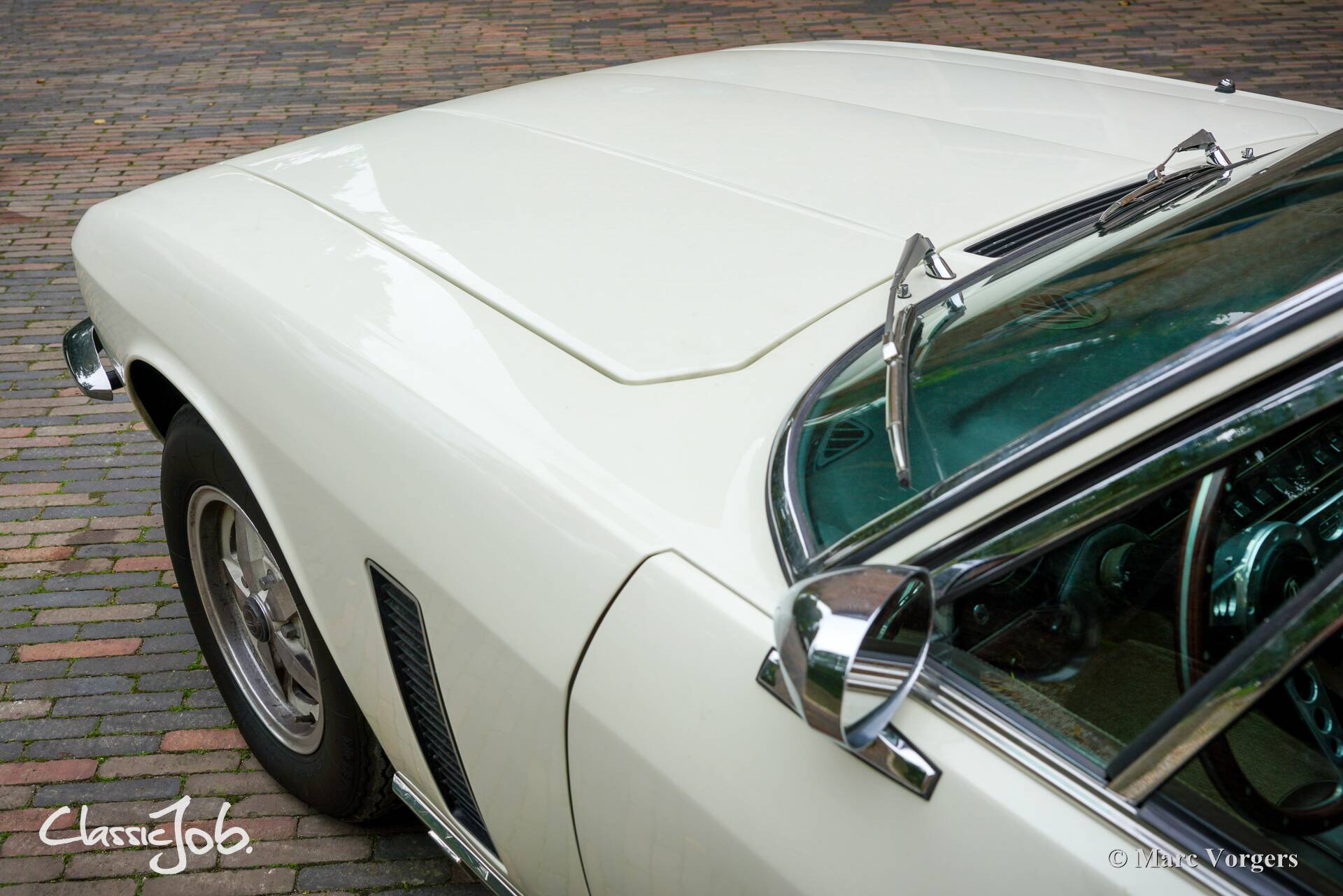 Jensen Interceptor III coupé, bouwjaar 1972. Autonummer 8557. Eerste registratie 1 januari 1973. Exterieurkleur wit gecombineerd met een bruin lederen interieur afgewerkt met lichtbeige tapijt. Deze indrukwekkende Jensen Interceptor is in oktober 2021 door de huidige eigenaar naar Nederland geïmporteerd. De kilometerstand was toen 63122 mijl. De auto, die toen in een redelijke originele staat verkeerde, werd naar klassieker- en Jensen-specialist Schackman in Nederland gebracht, waar de auto grotendeels werd gedemonteerd voor restauratie. In 2022 is de auto naar Classic Job gebracht voor een volledige carrosserierestauratie, waarbij het slechte plaatwerk werd gerepareerd en de auto werd voorzien van een perfect nieuw laksysteem in de originele kleur. Ook de originele lichtmetalen velgen zijn door Classic Job gerestaureerd. Nadat de carrosserie klaar was, is de auto teruggebracht naar Schackman om opnieuw te worden opgebouwd. De voorruit en ramen zijn teruggeplaatst, de kabelboom is gedeeltelijk vernieuwd, het dashboard is gerestaureerd en diverse onderdelen zijn opnieuw verchroomd. Mechanisch en technisch is alles gecontroleerd, afgesteld en up-to-date gebracht. Het originele lederen interieur, dat in goede staat verkeert, is behouden en de kofferbak is opnieuw bekleed. In totaal is er € 40.000 geïnvesteerd om de auto in de huidige zeer goede en prachtige staat te brengen! De grote 7,2 liter Chrysler-motor (288 pk/ 515 Nm!) loopt en klinkt perfect, de automatische versnellingsbak met 3 versnellingen schakelt zeer goed en de auto rijdt en klinkt indrukwekkend! De auto is toegevoegd aan de collectie en heeft niet veel gereden; de kilometerteller staat momenteel op slechts 63.803 mijl. De Jensen Interceptor III is een Britse grand tourer die ingetogen stijl combineert met betrouwbare prestaties. Ontworpen door Touring in Milaan en gebouwd in West Bromwich, beschikt hij over een ruime 2+2 coupé-indeling en een opvallende, omlopende achterruit die een vleugje karakter toevoegt. Het is een auto die Brits vakmanschap en charme uit die tijd uitstraalt zonder de aandacht te trekken. In totaal werden er tussen augustus 1971 en december 1976 slechts 4255 exemplaren gebouwd. Dit is een fantastische rijdersauto en een geweldige aanvulling op een klassieke sportwagencollectie. Deze auto is alleen op afspraak beschikbaar voor bezichtiging en een testrit.