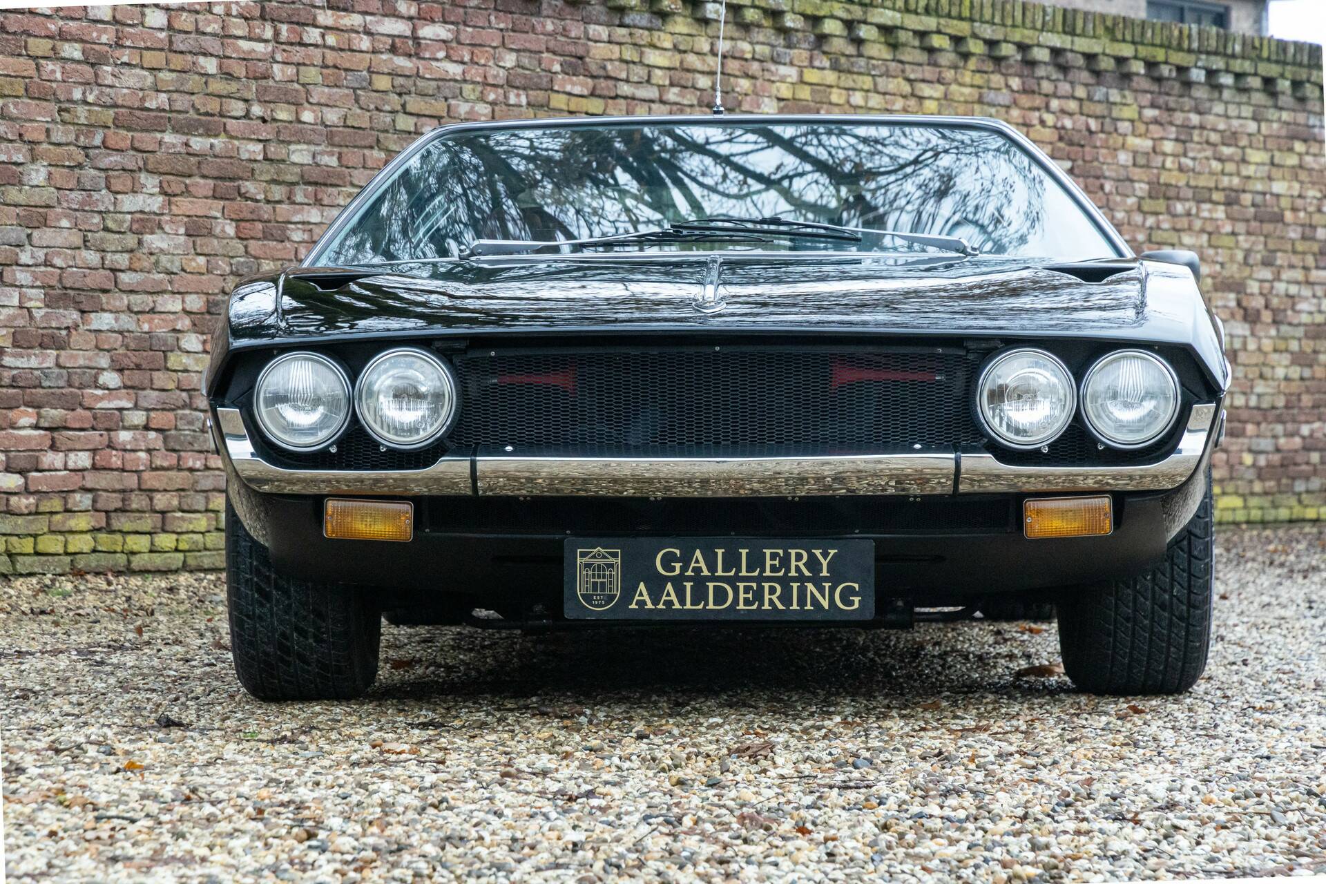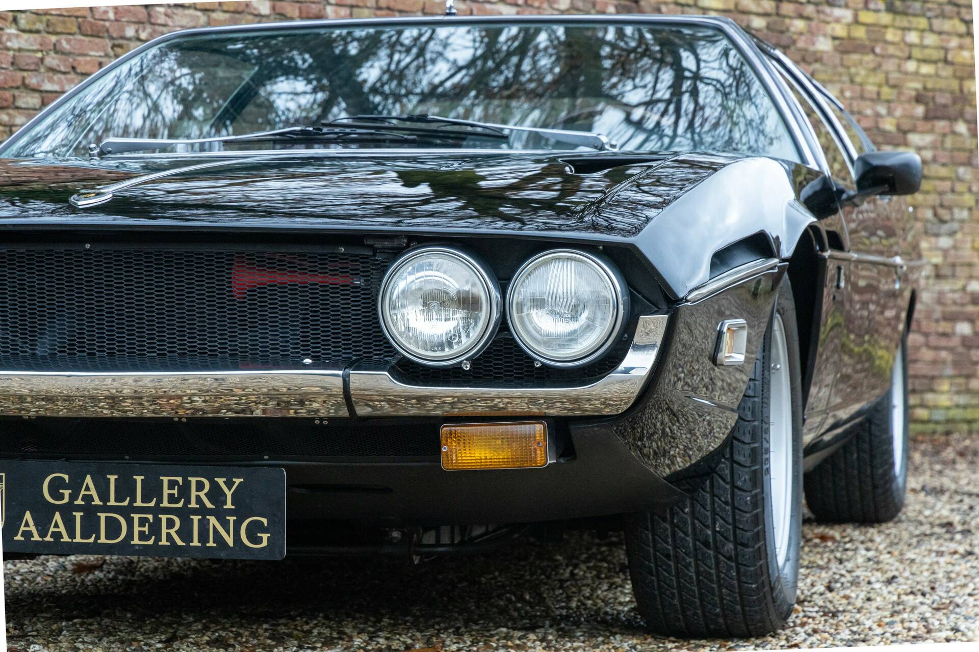 Lamborghini Espada series 2 "Matching Numbers" Presented in "Nero Cangiante over Bordeaux Senape leather interior", A 'matching numbers' Espada, Offered with an Olivier Nameche Report “Lamborghini historian”, Delivered new to M.S.C.S New York, 578 examples made from December 1969 to November 1972, In factory-correct colour combination,