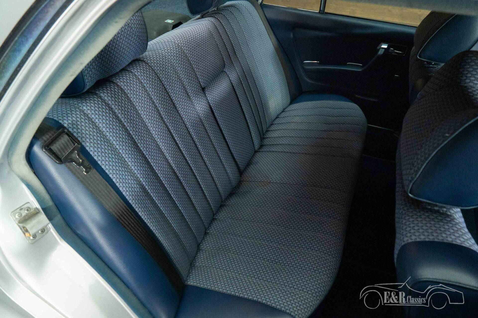 Het exterieur is uitgevoerd in stijlvol zilvergrijs metallic lakwerk, dat prachtig combineert met de elegante lijnen en subtiele chroomdetails van de W123. De originele stalen velgen met wieldoppen versterken het authentieke karakter van de auto. Binnenin treft u een verzorgd donkerblauw interieur aan, dat een fraai contrast vormt met de lichte carrosseriekleur. Het interieur ademt degelijke Duitse kwaliteit, met comfortabele stoelen, elektrisch verstelbare ramen en een klassieke Becker Monza radio die perfect past bij de sfeer van deze Mercedes. Alles samen zorgt voor een harmonieus geheel waarin luxe, comfort en tijdloos design samenkomen.