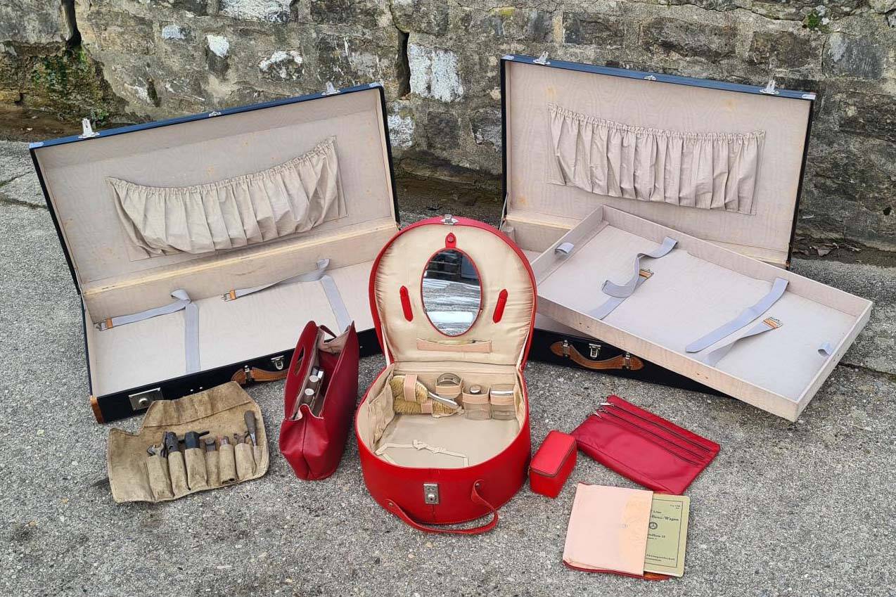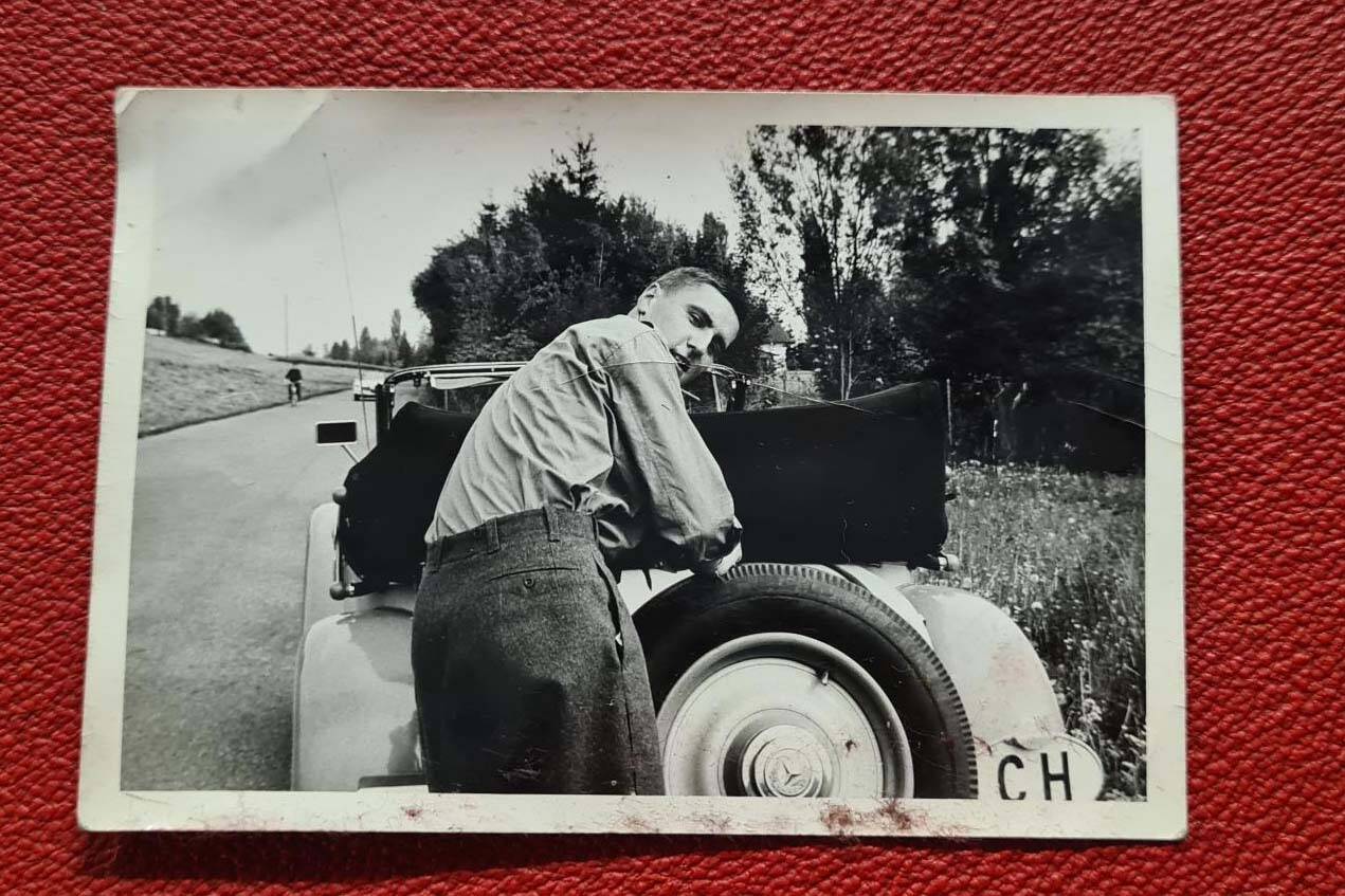 Charming and rare little car sold new to Switzerland. Two owners from new, the last one since 1964. The first owner was a lady who used the car only during Summer, there are still her beauty case and handbags with the car as well as fitted luggage, tool roll, jack, handle, two set of keys, and many documents, genuine 110000 Km. Runing with all original interior.