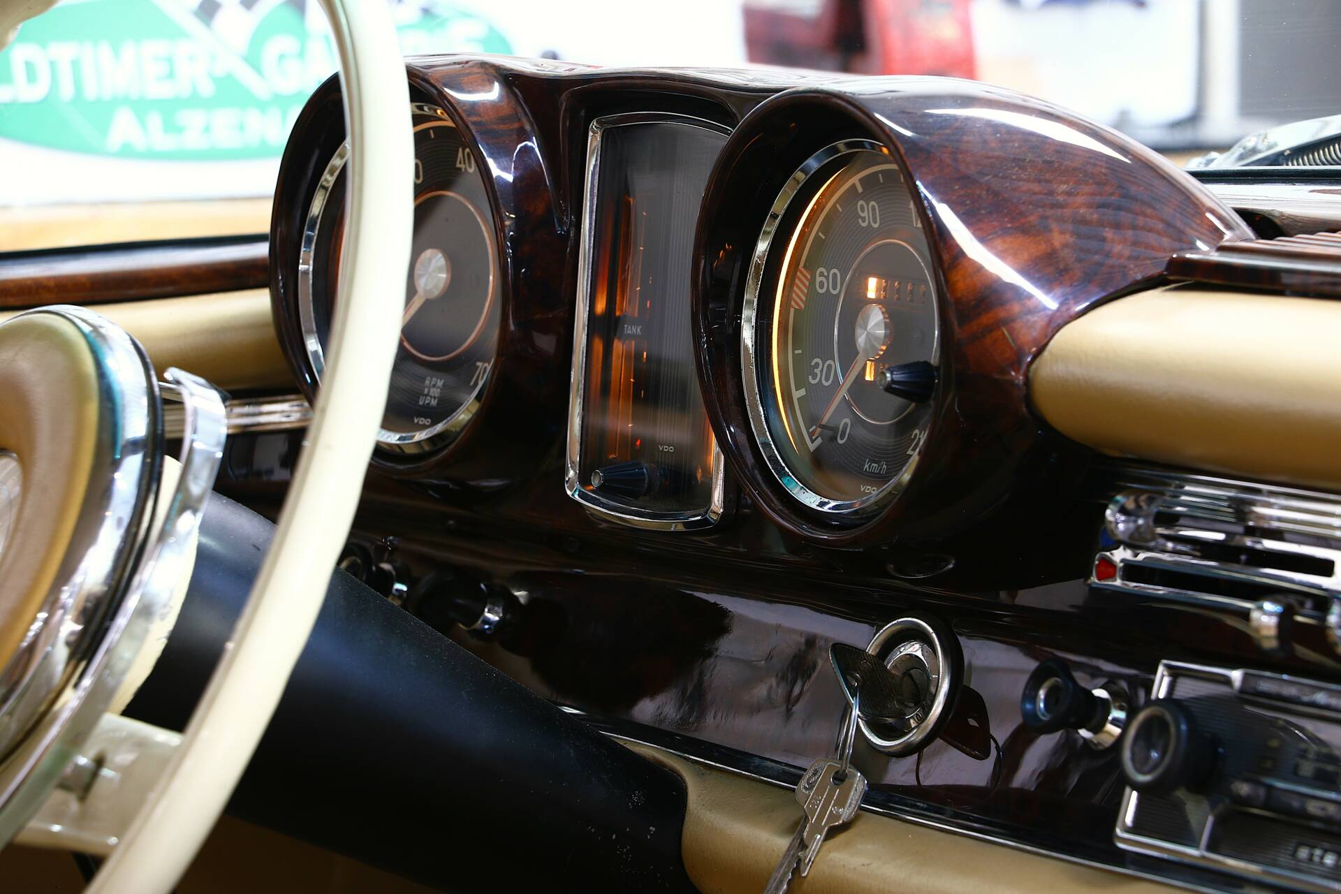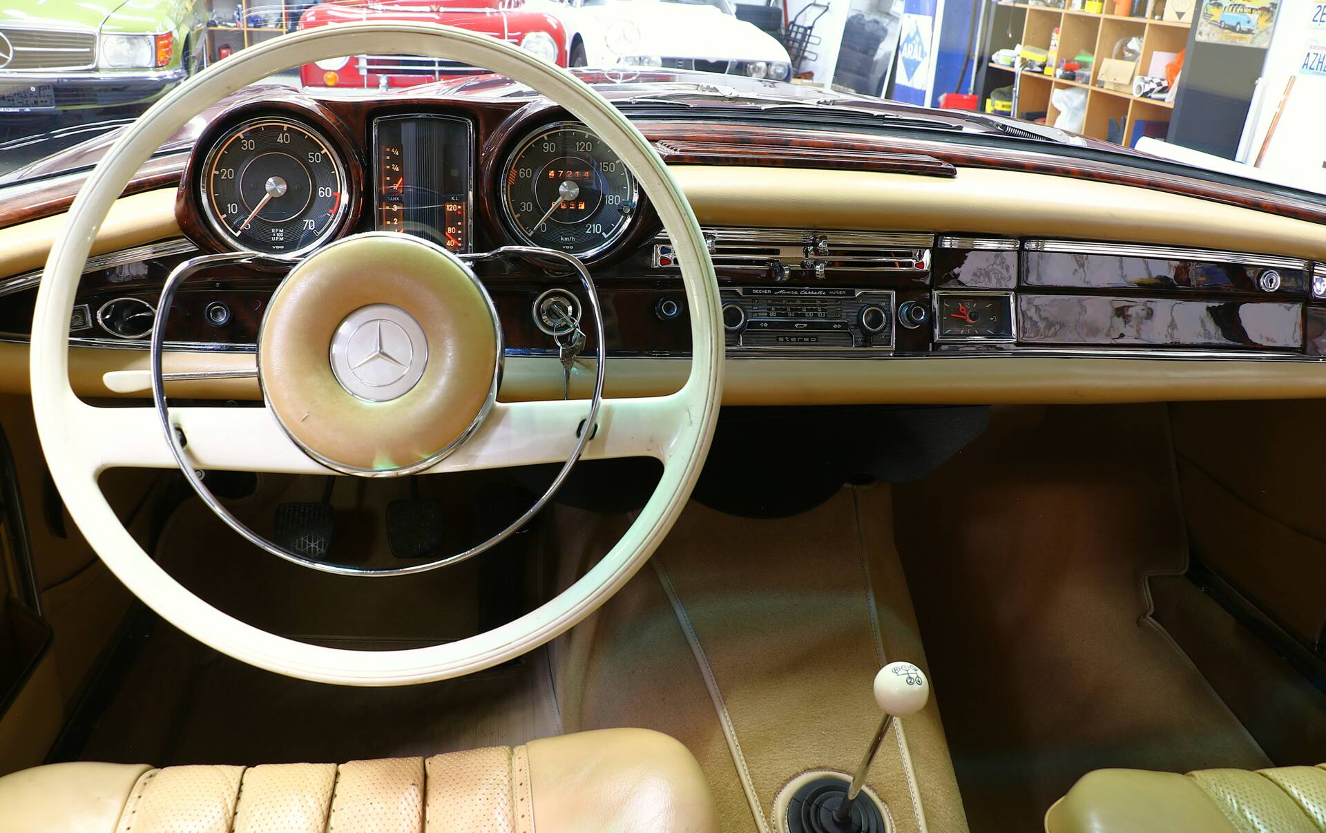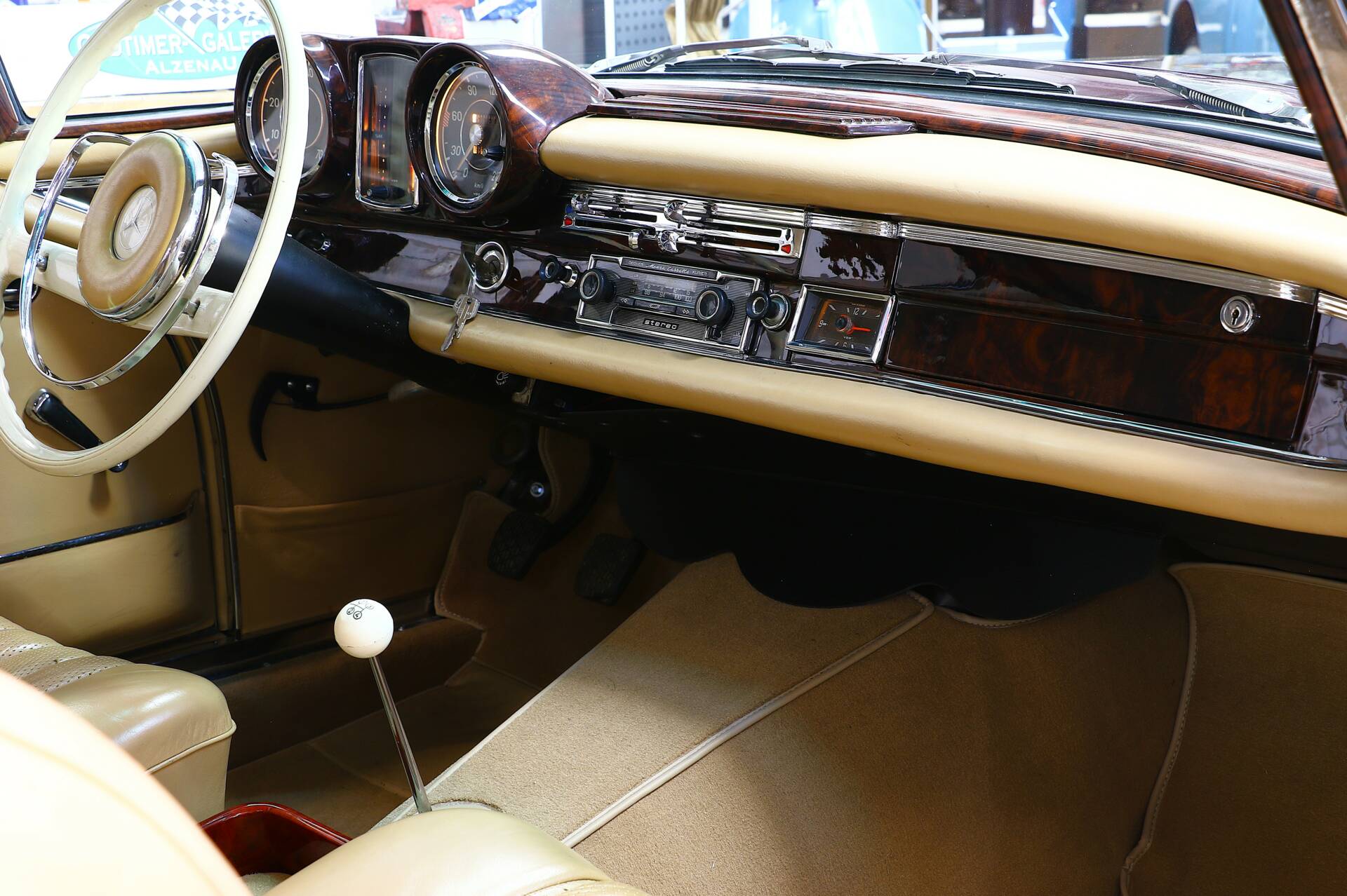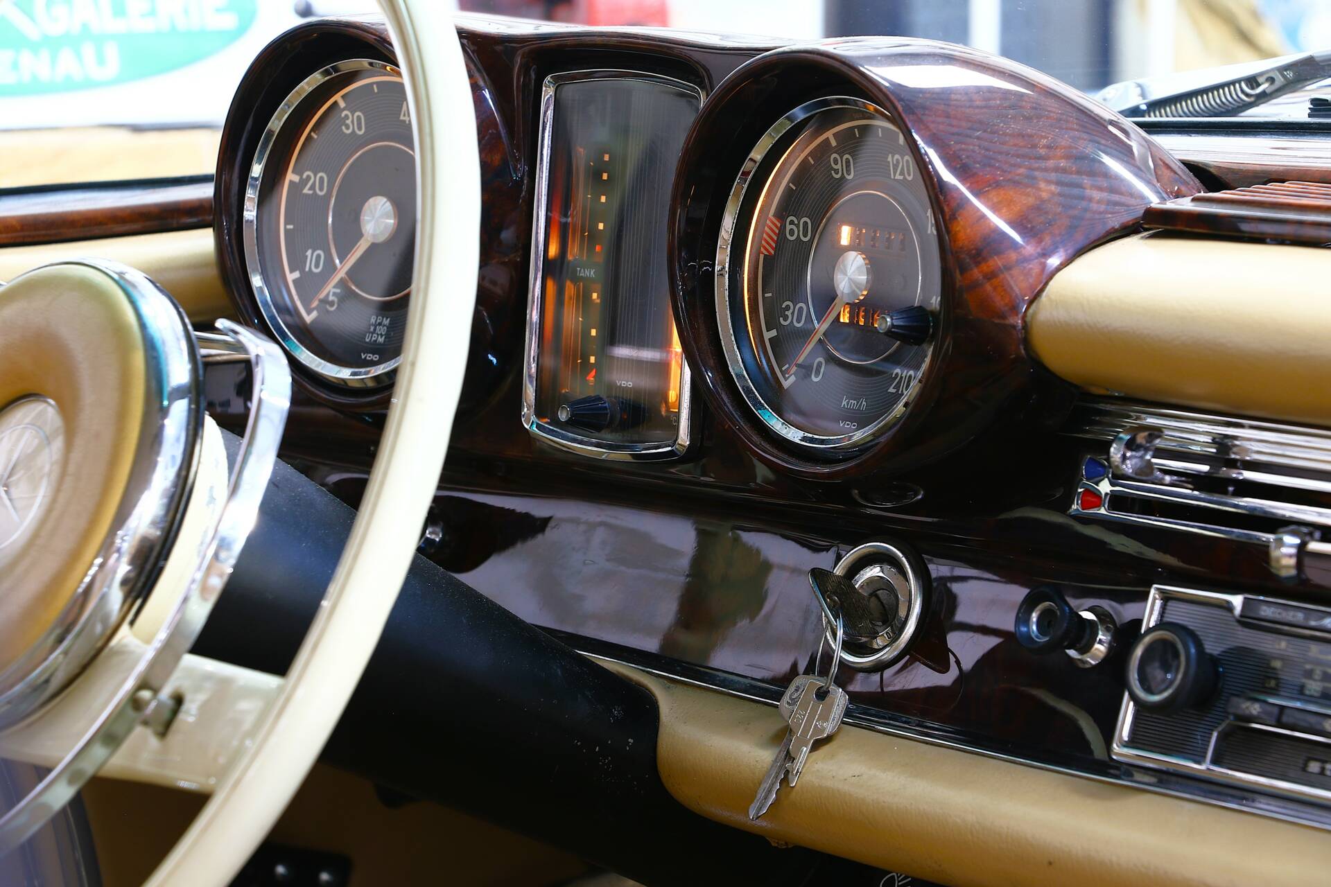 Auf der Ausstattungsliste finden sich neben der Servolenkung, zwei Nackenrollen und der Leder-Ausstattung auch ein Becker Radio. Das 220 SE Coupé ist H-zugelassen und bekommt vor Übergabe TÜV neu. Wir übergeben den Wagen mit einer aktueller Classic-Data-Kurzbewertung für Ihre Versicherung.