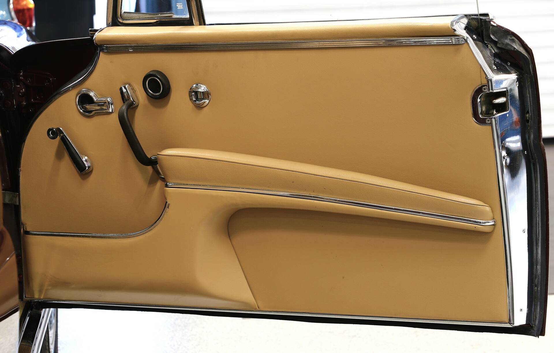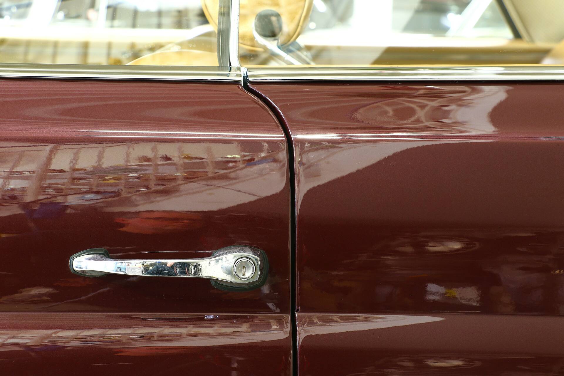 Die Karosserie ist absolut gerade, alle Flächenübergänge sind perfekt und die Spaltmaße wie bei einem Neuwagen. Mit seinen zahlreichen Chrom-Applikationen, den makellosen, schweren Stoßstangen und der hochwertigen Lackierung umgibt dem Wagen eine sanfte, warme -- ja geradezu einladende Ausstrahlung. Dies wird vom Innenraum dankbar aufgenommen und fortgeführt. Die originalen Ledersitze und Türverkleidungen sind restauriert. Das gesamte Interieur wirkt sauber, frisch und behutsam benutzt.