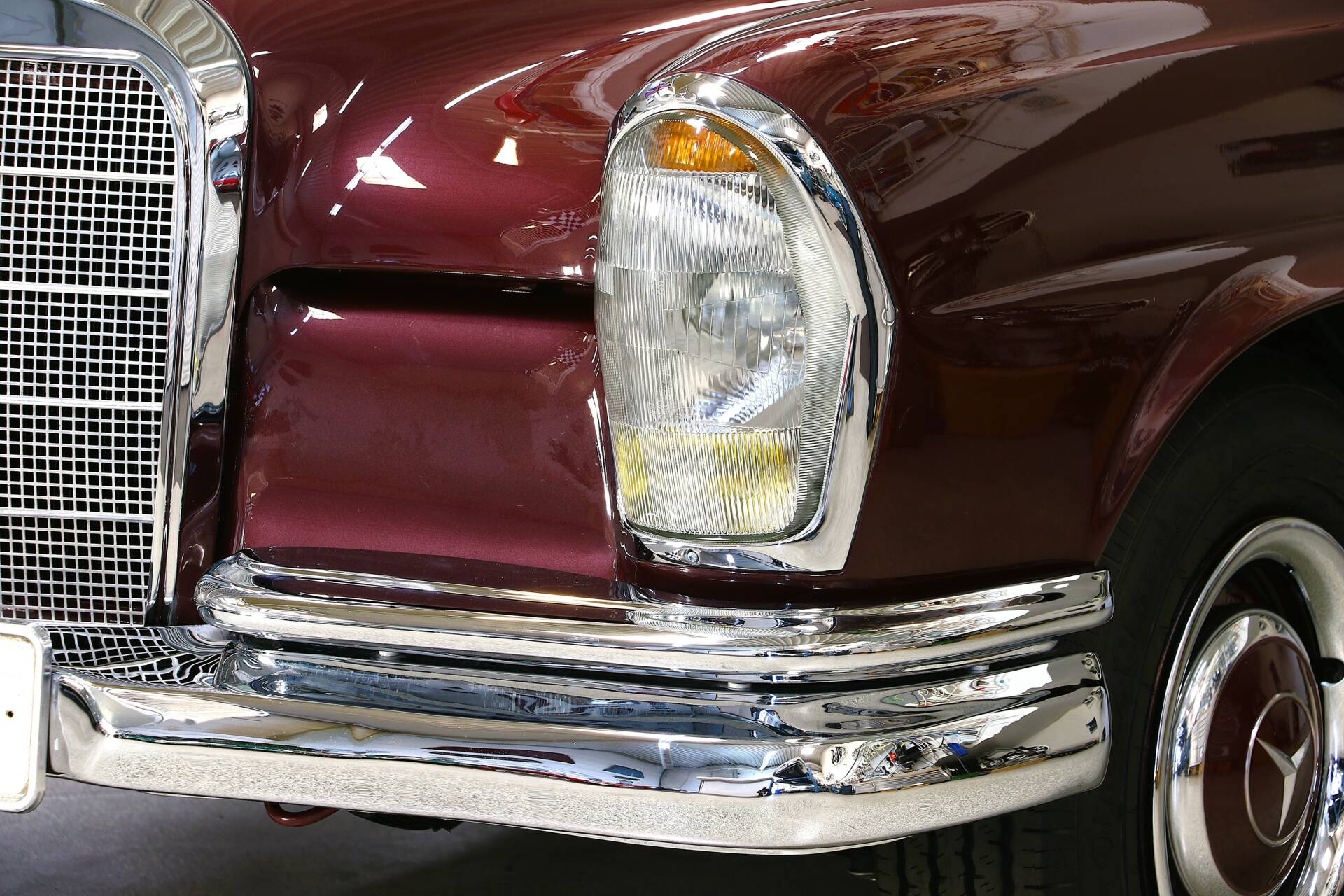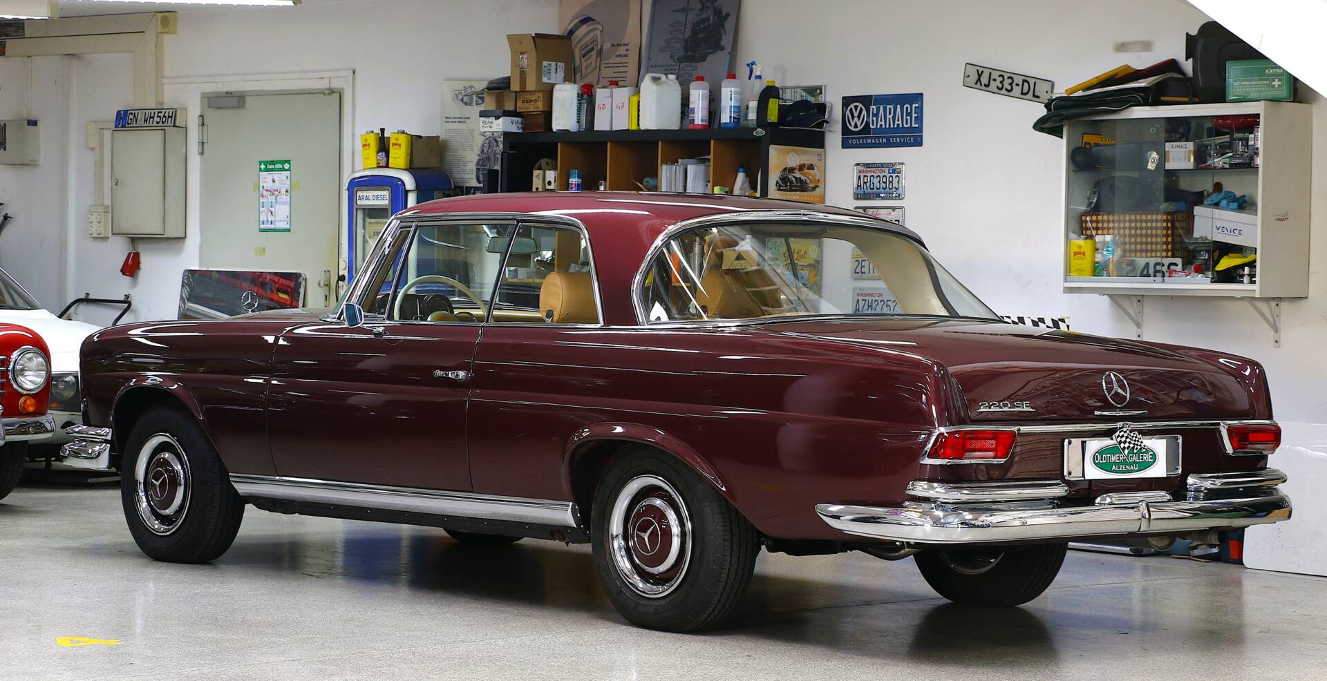 Es freut uns, daß ein ganz außergewöhnlich gut erhaltenes 220 SE Coupé zu uns gefunden hat. Unser 220 SE Coupé kommt aus privater Mercedes-Liebhaber- und Sammlerhand und lief vor dem Import nach Deutschland in seiner aktiven Zeit in Südfrankreich. Schlechtes Wetter oder gar Salz auf den Straßen hat unser Coupé daher offensichtlich nicht erleben müssen. Karosserie, Motorraum, Kofferraum und Unterboden sind völlig rostfrei. Überall sind die originalen Schweißpunkte und Blechsicken zu erkennen -- Anzeichen für Reparatur-Schweißungen konnten wir nicht finden. Der Unterboden trägt tatsächlich noch die originale Versiegelung vom Werk.