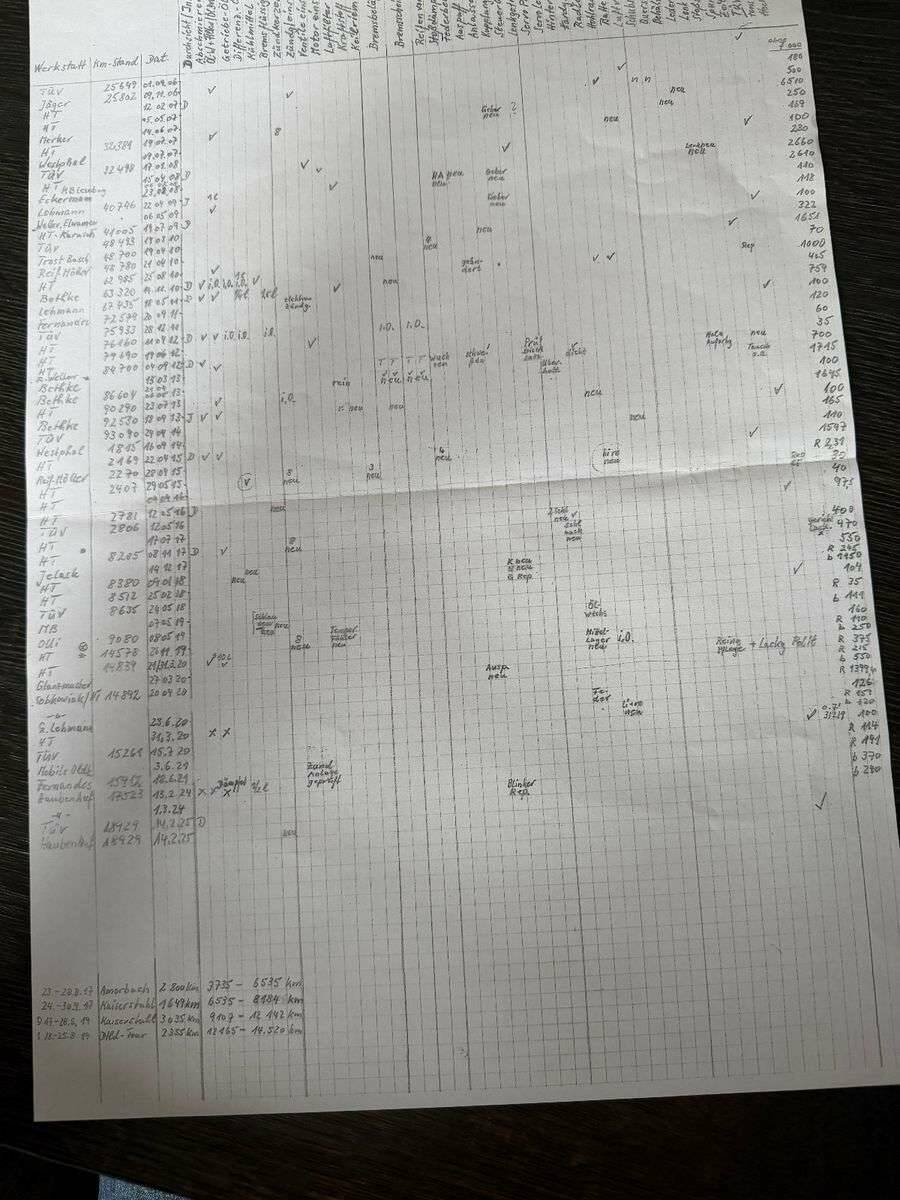 Umfangreiche Historie, alle Besitzer bekannt und seit 9.2006 penibel geführtes Fahrtenbuch mit allen durchgeführten Arbeiten !